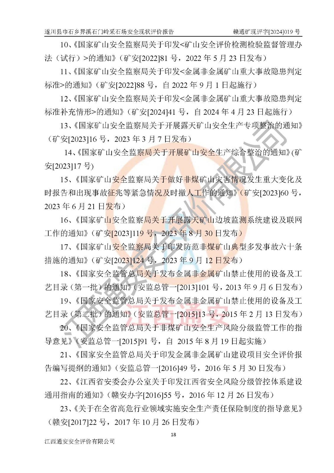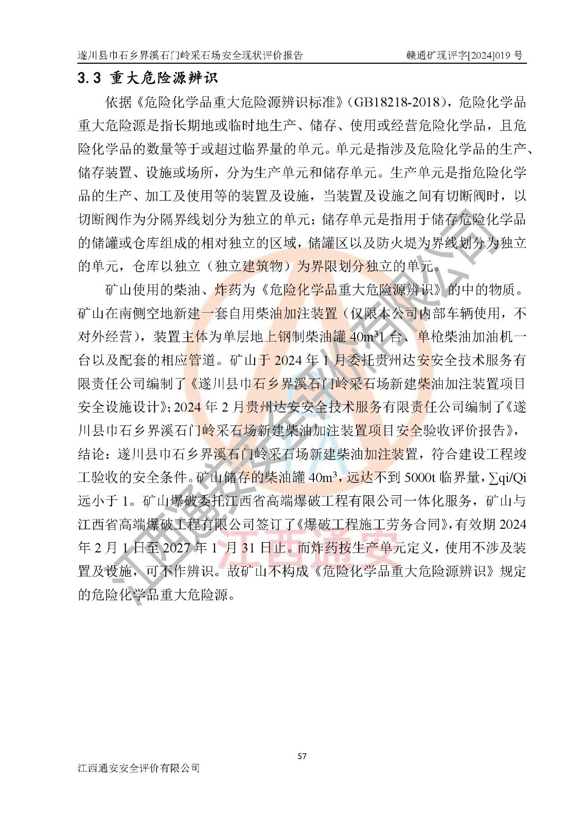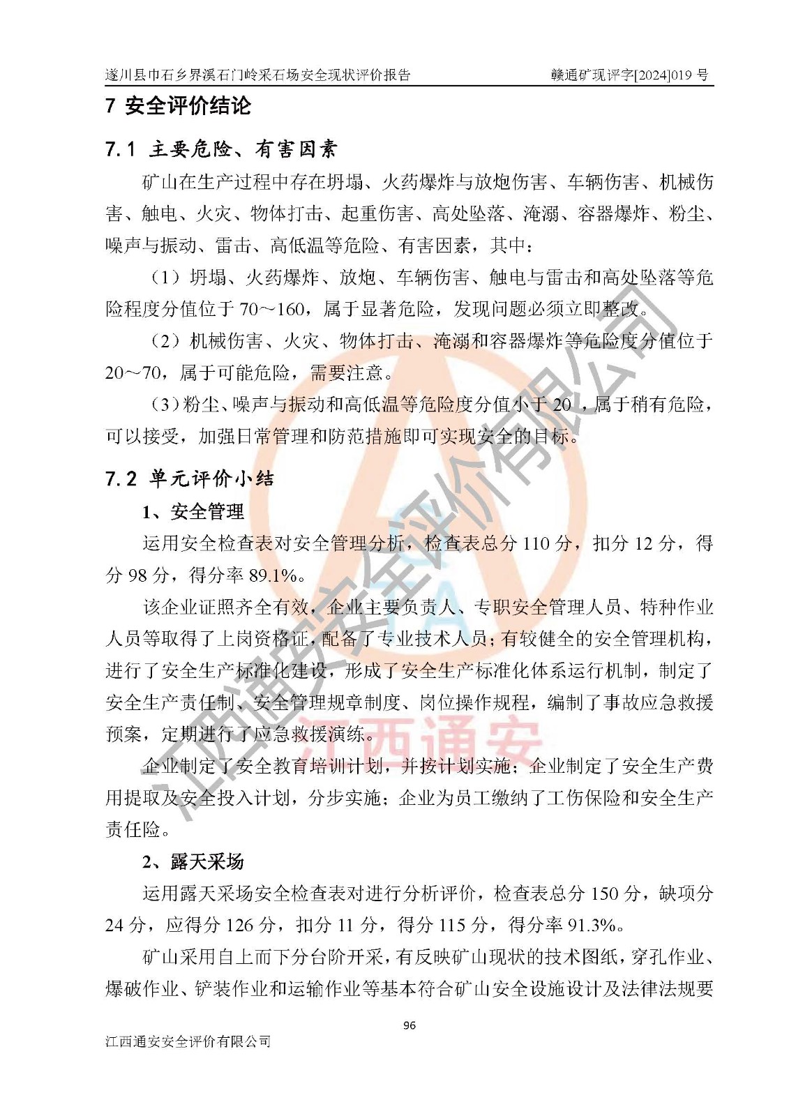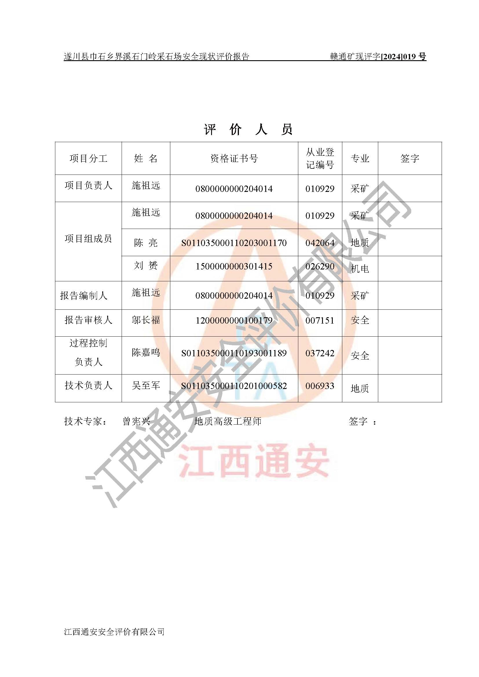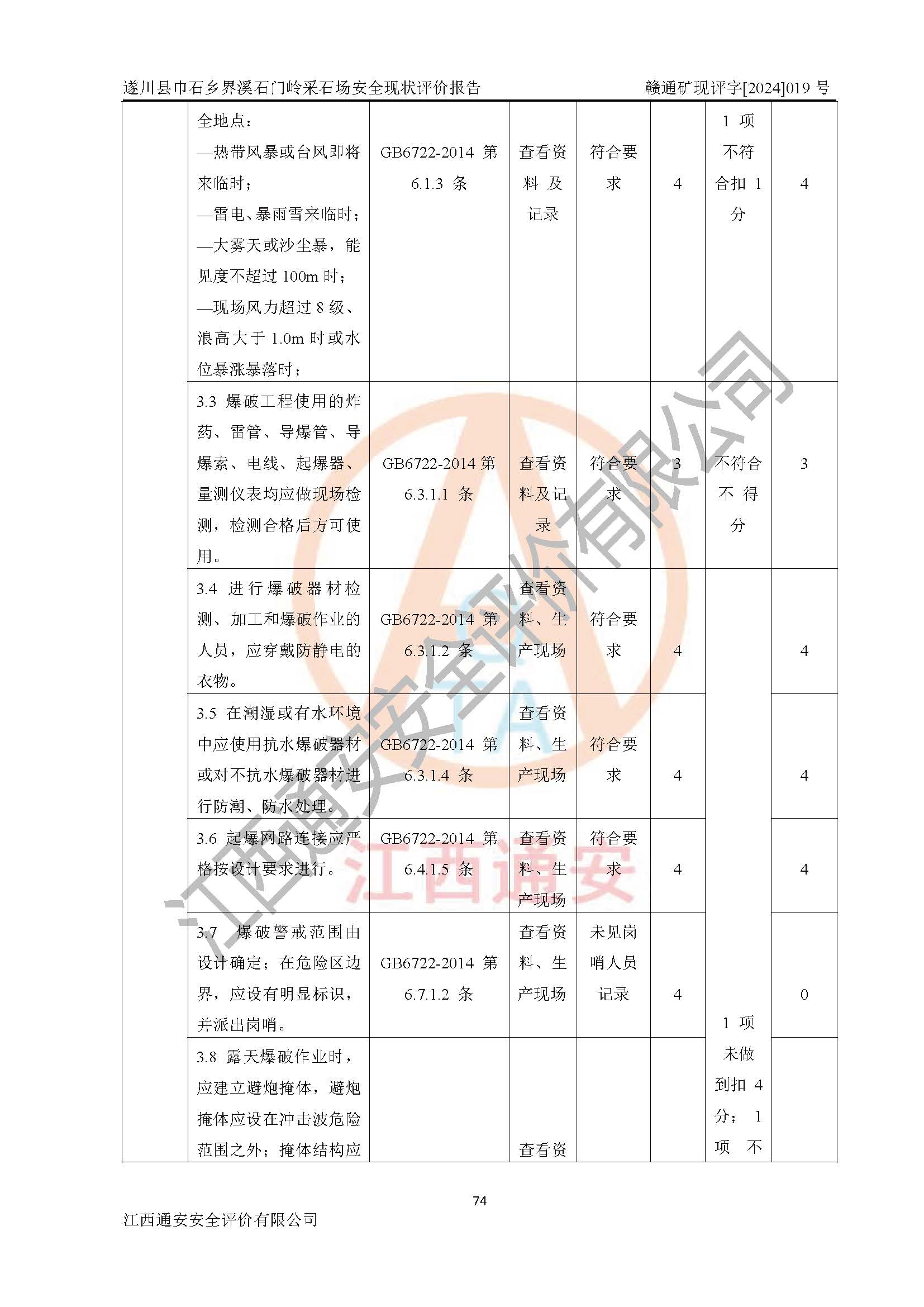 项目名称 | 遂川县巾石乡界溪石门岭采石场安全现状评价报告 | ||||