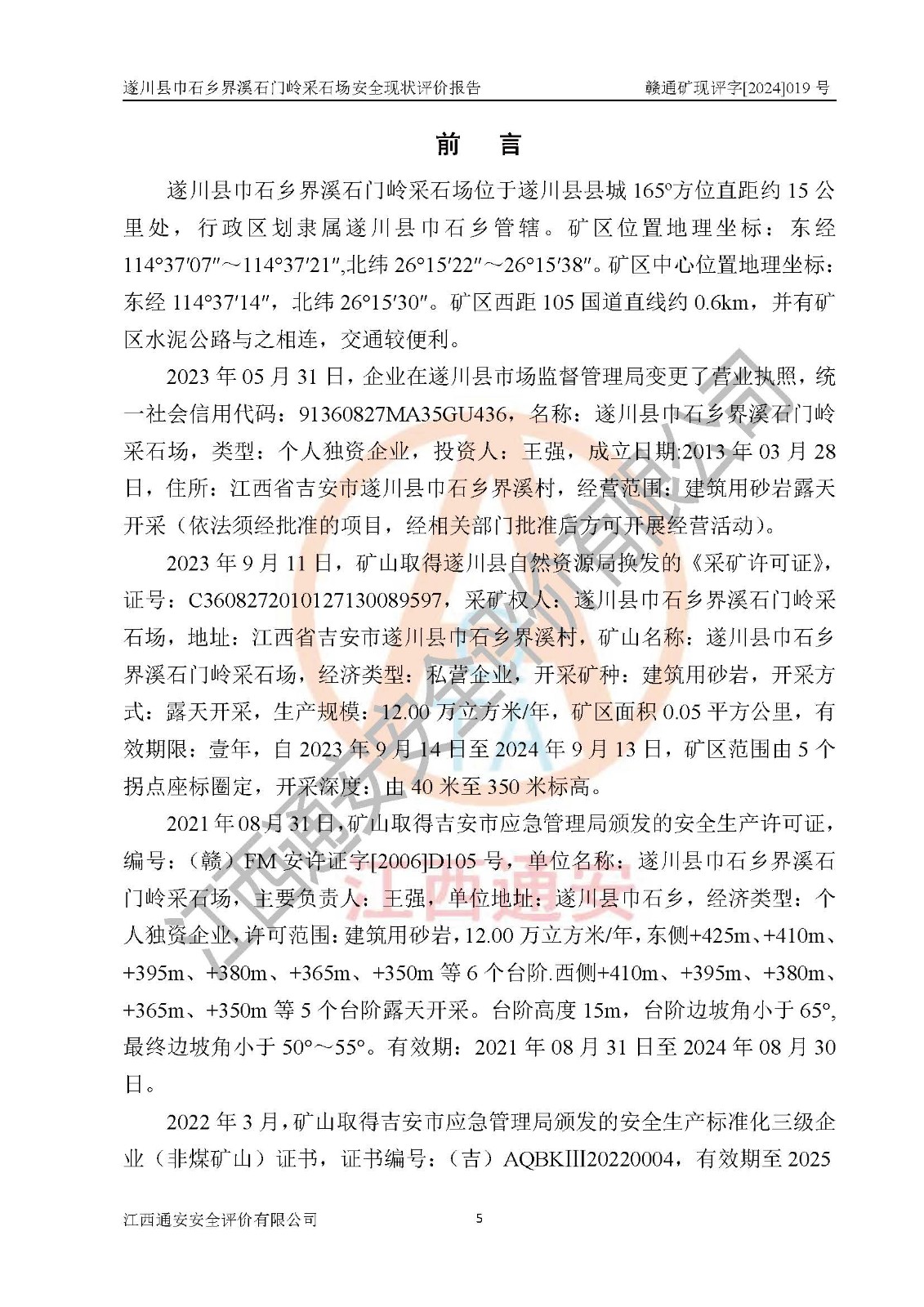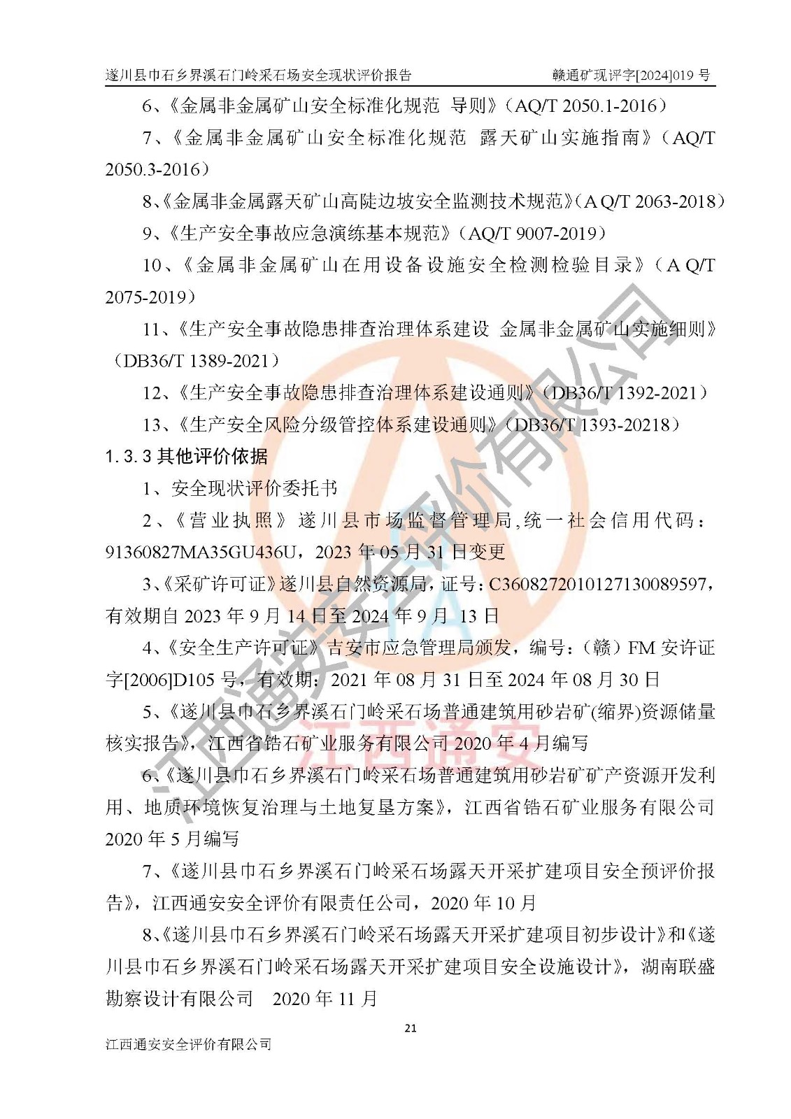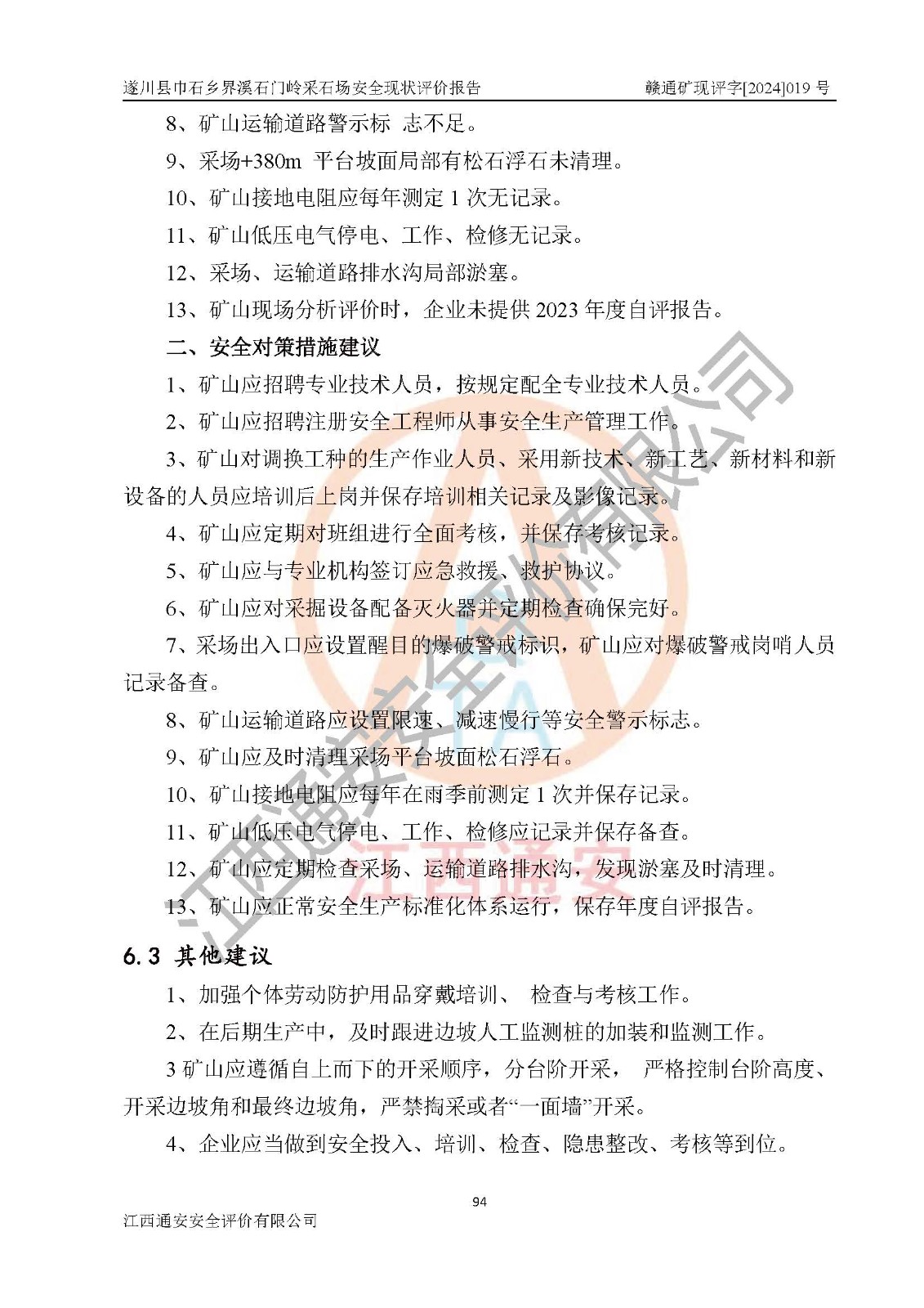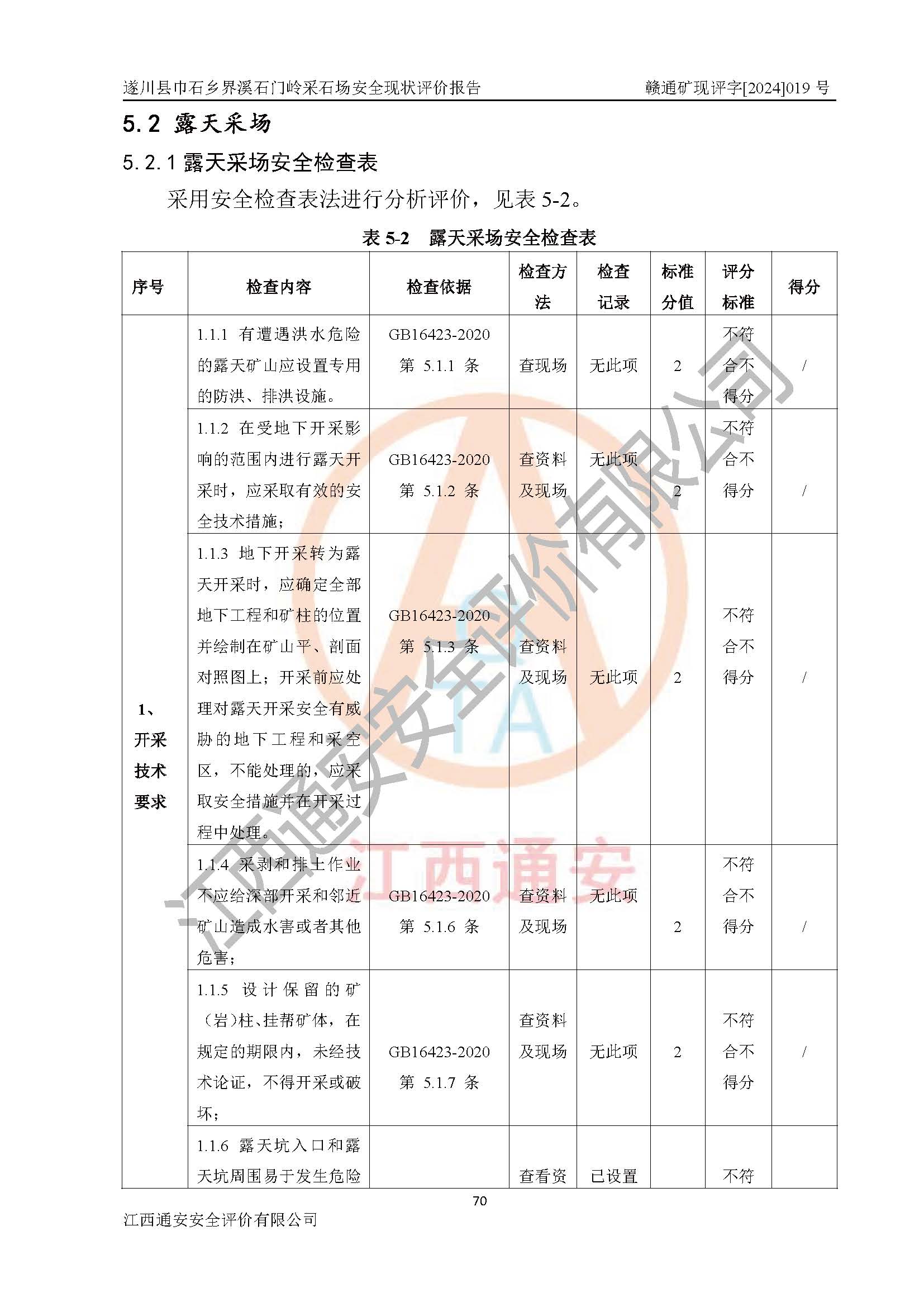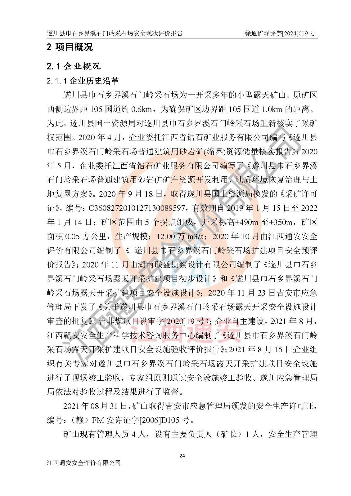 项目名称 | 遂川县巾石乡界溪石门岭采石场安全现状评价报告 | ||||
