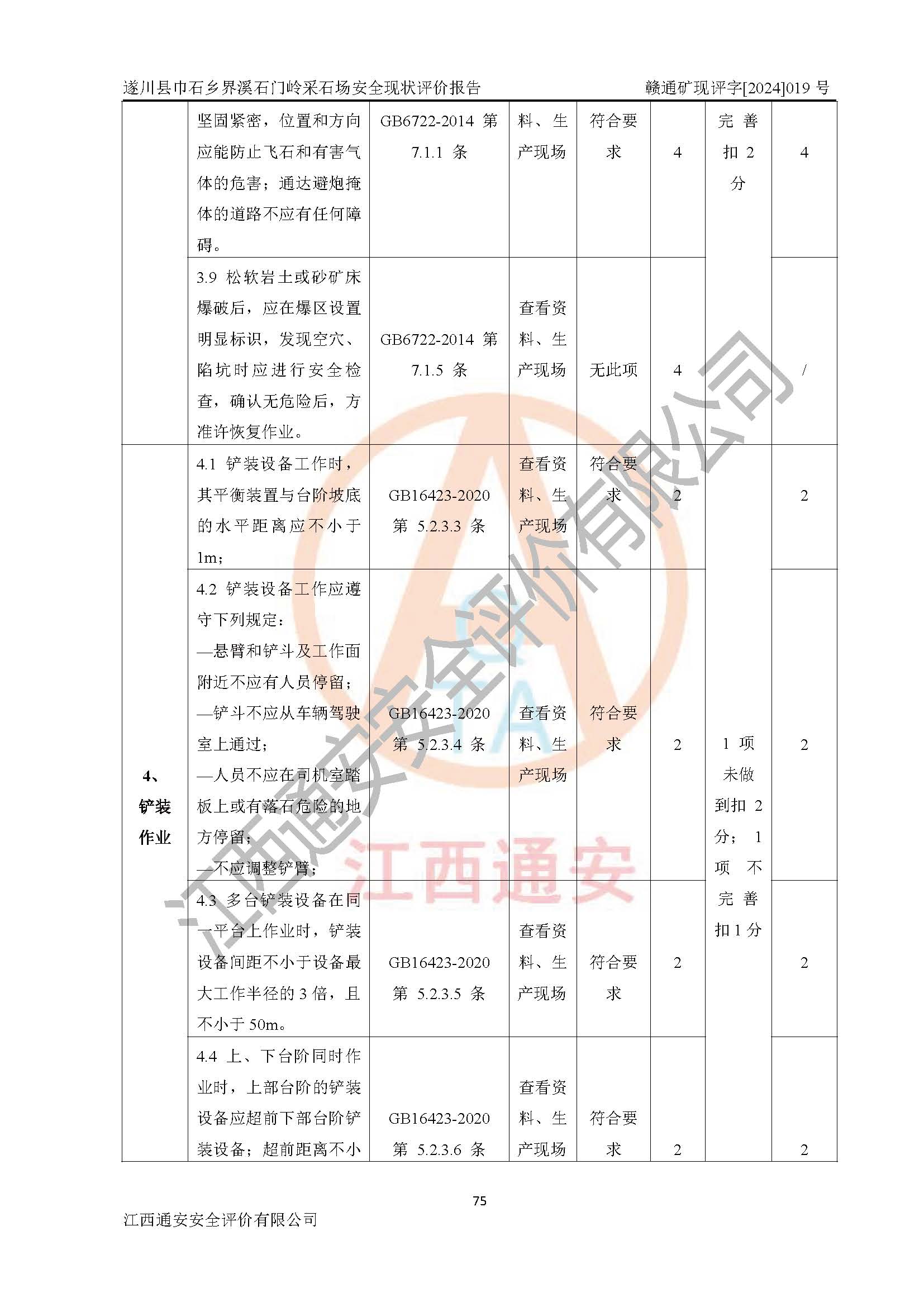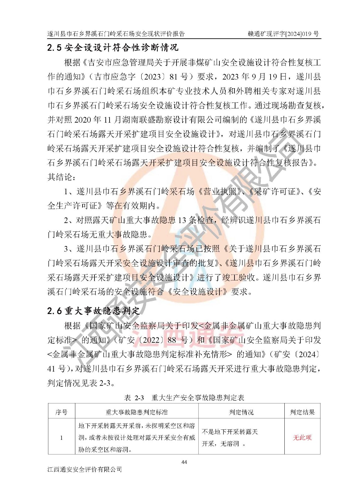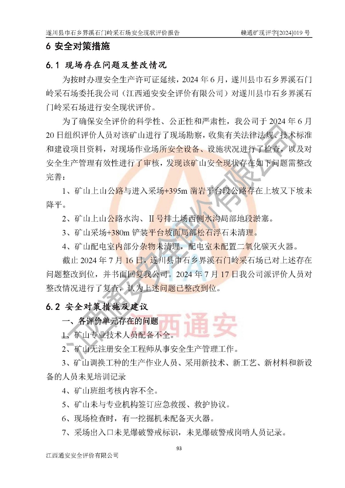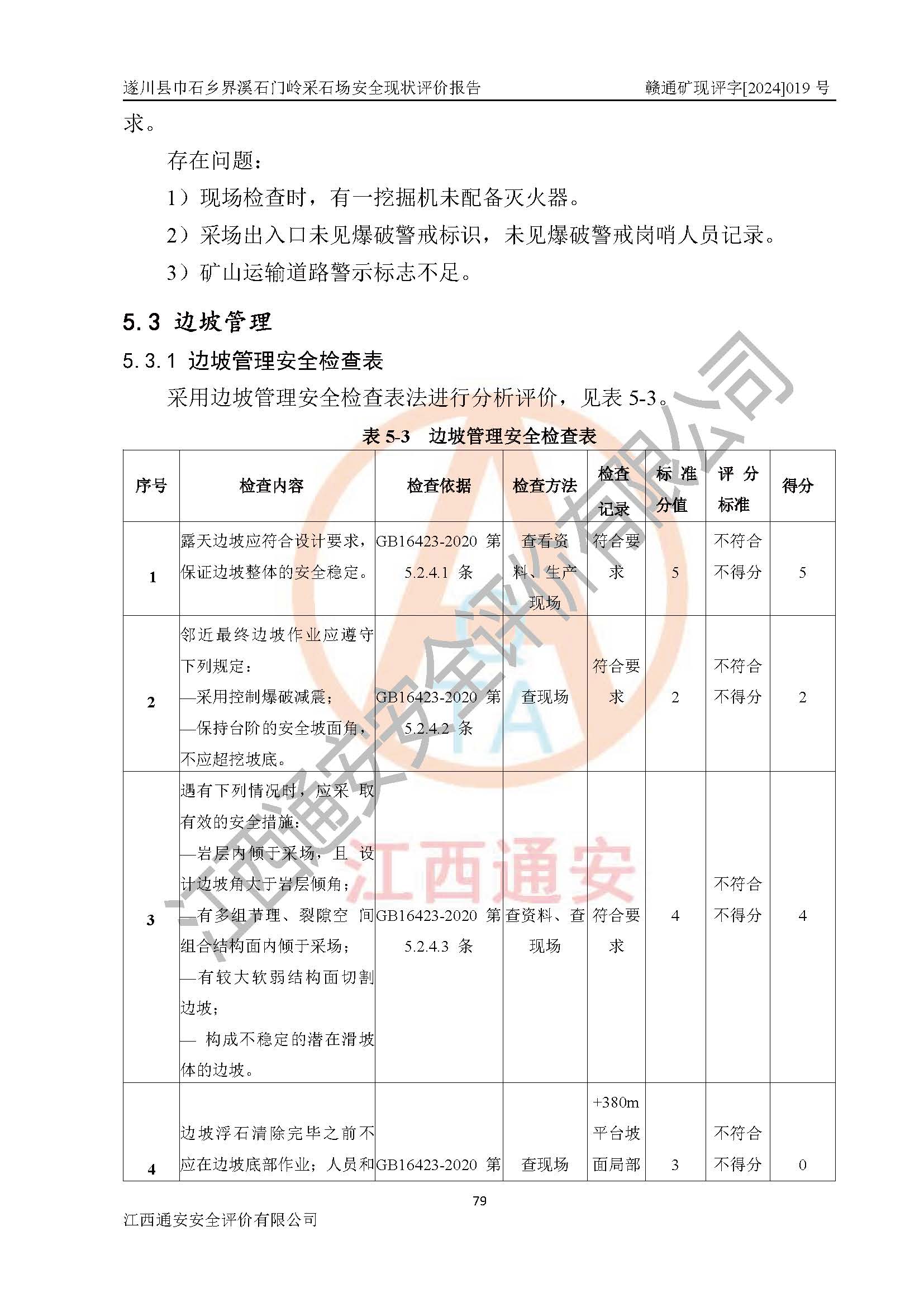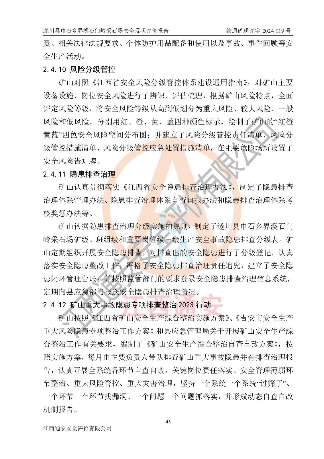 项目名称 | 遂川县巾石乡界溪石门岭采石场安全现状评价报告 | ||||