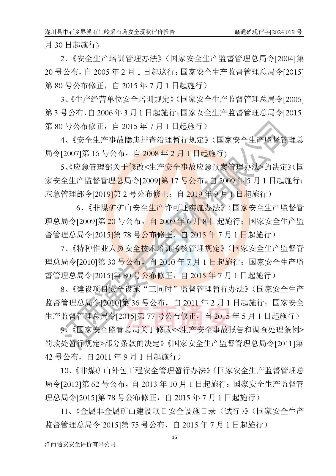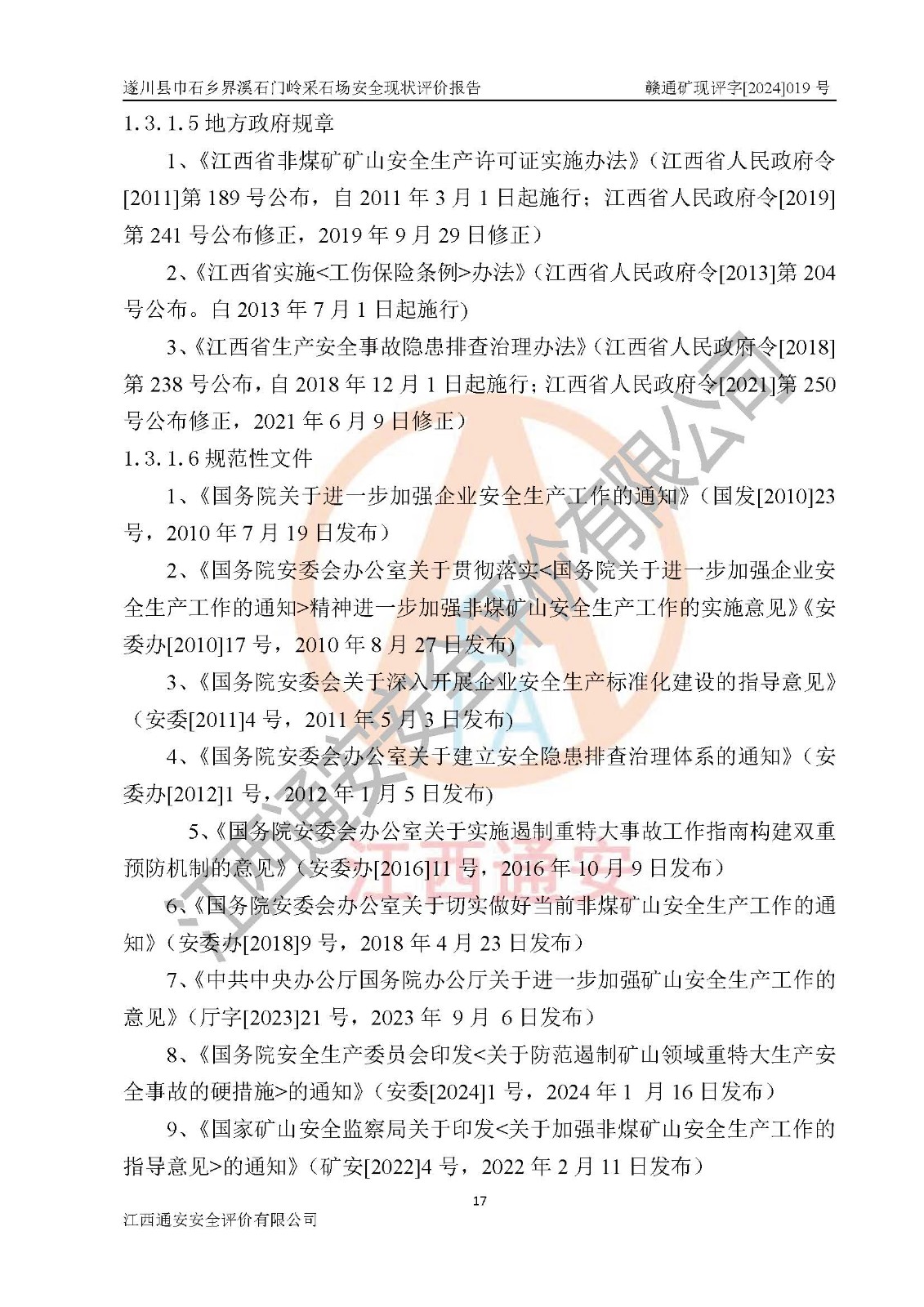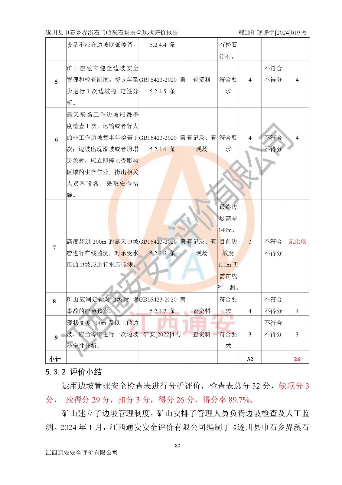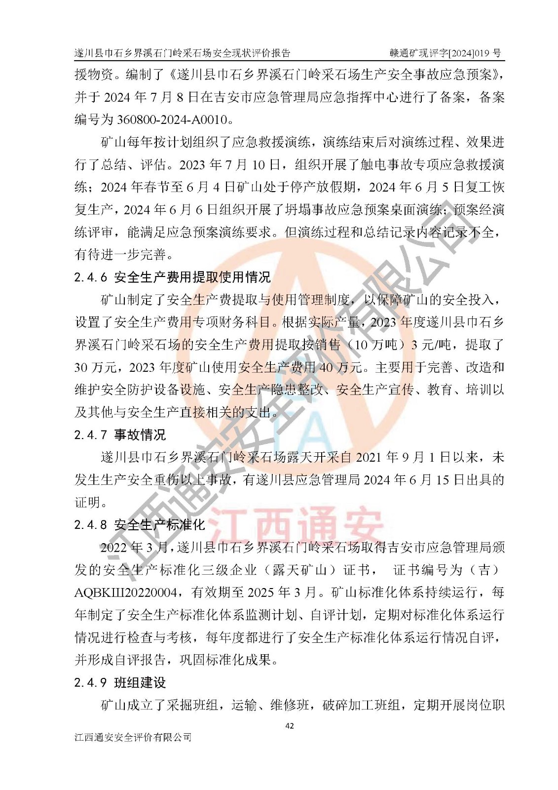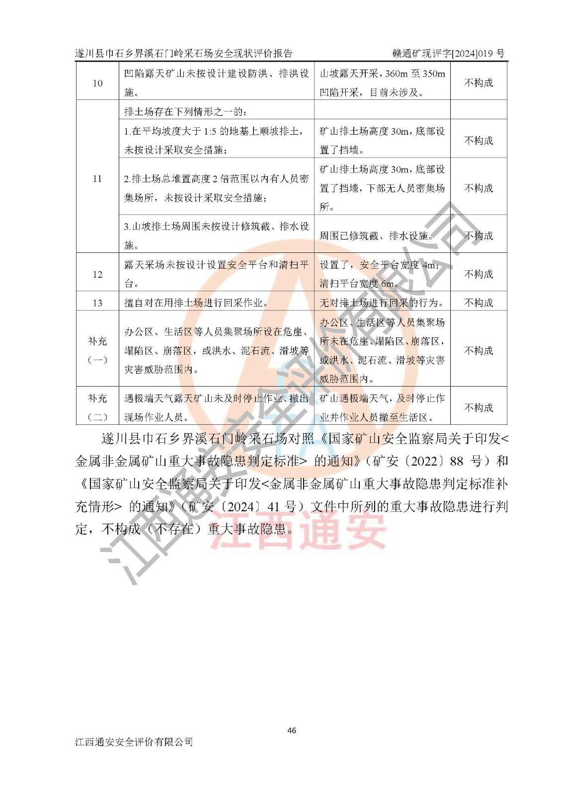 项目名称 | 遂川县巾石乡界溪石门岭采石场安全现状评价报告 | ||||