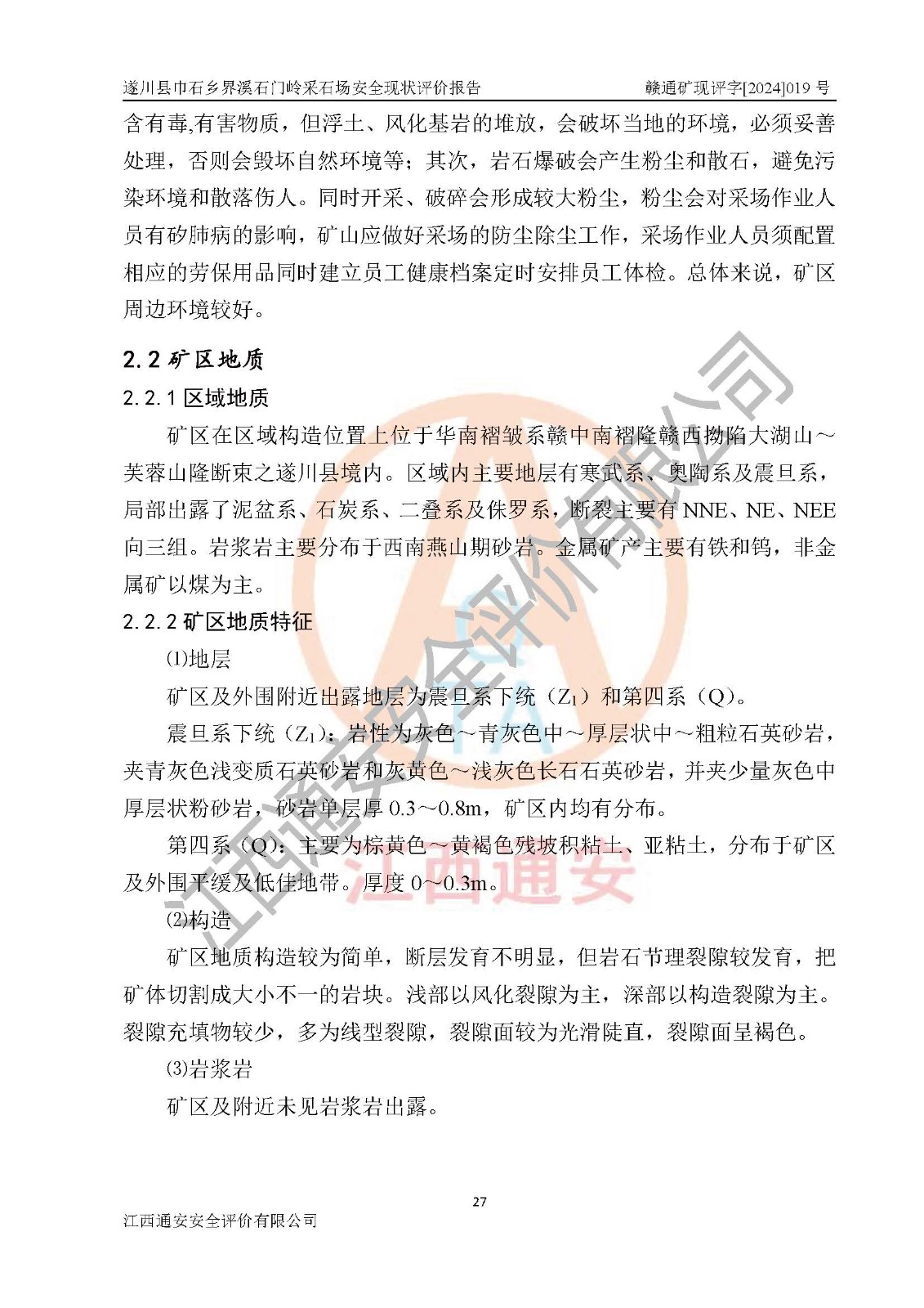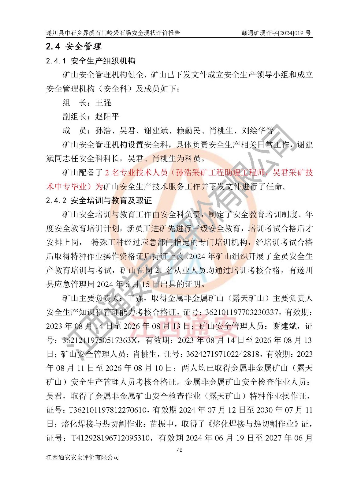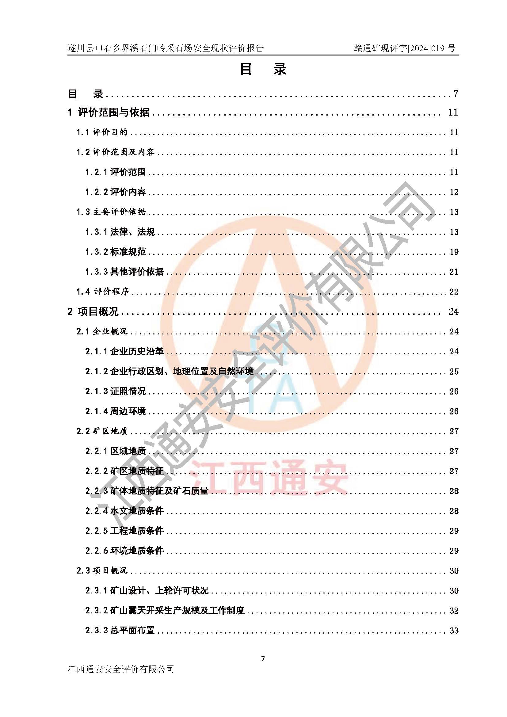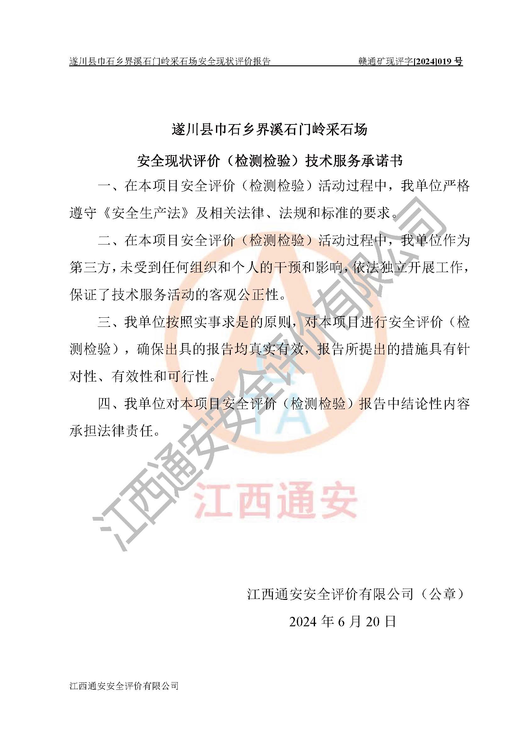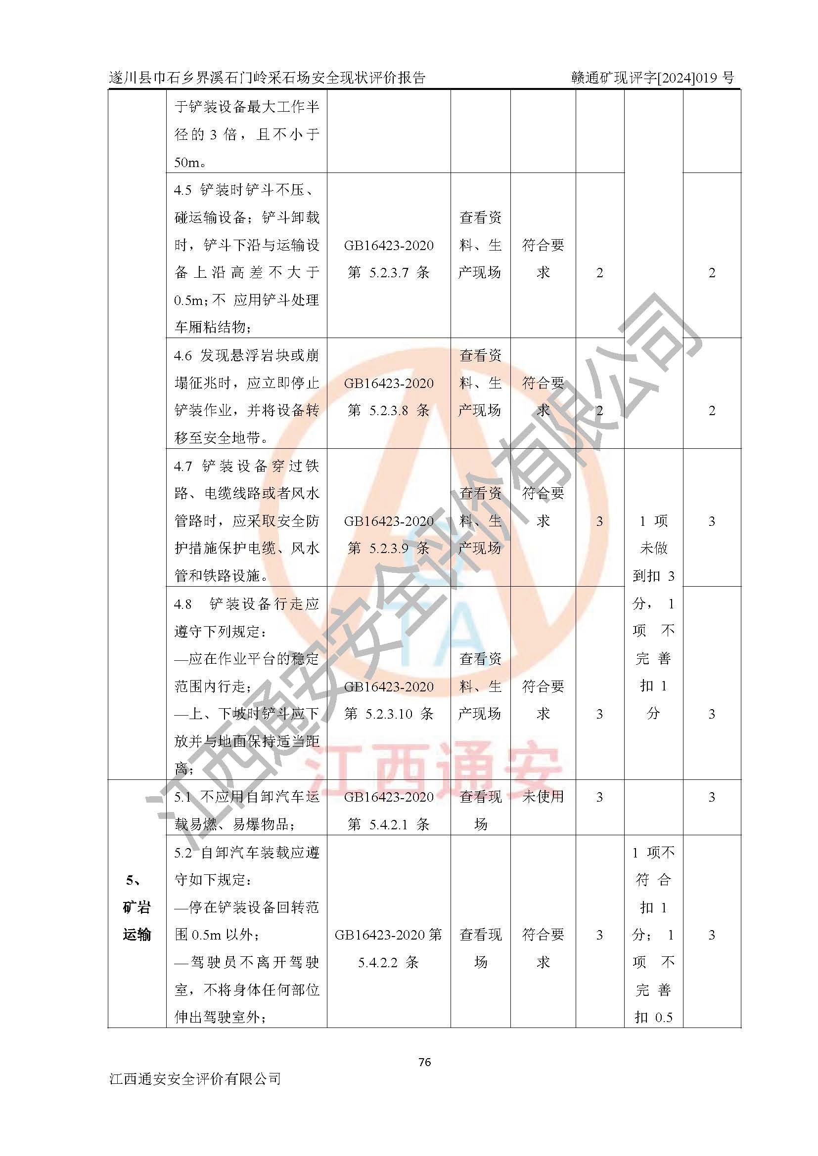 项目名称 | 遂川县巾石乡界溪石门岭采石场安全现状评价报告 | ||||