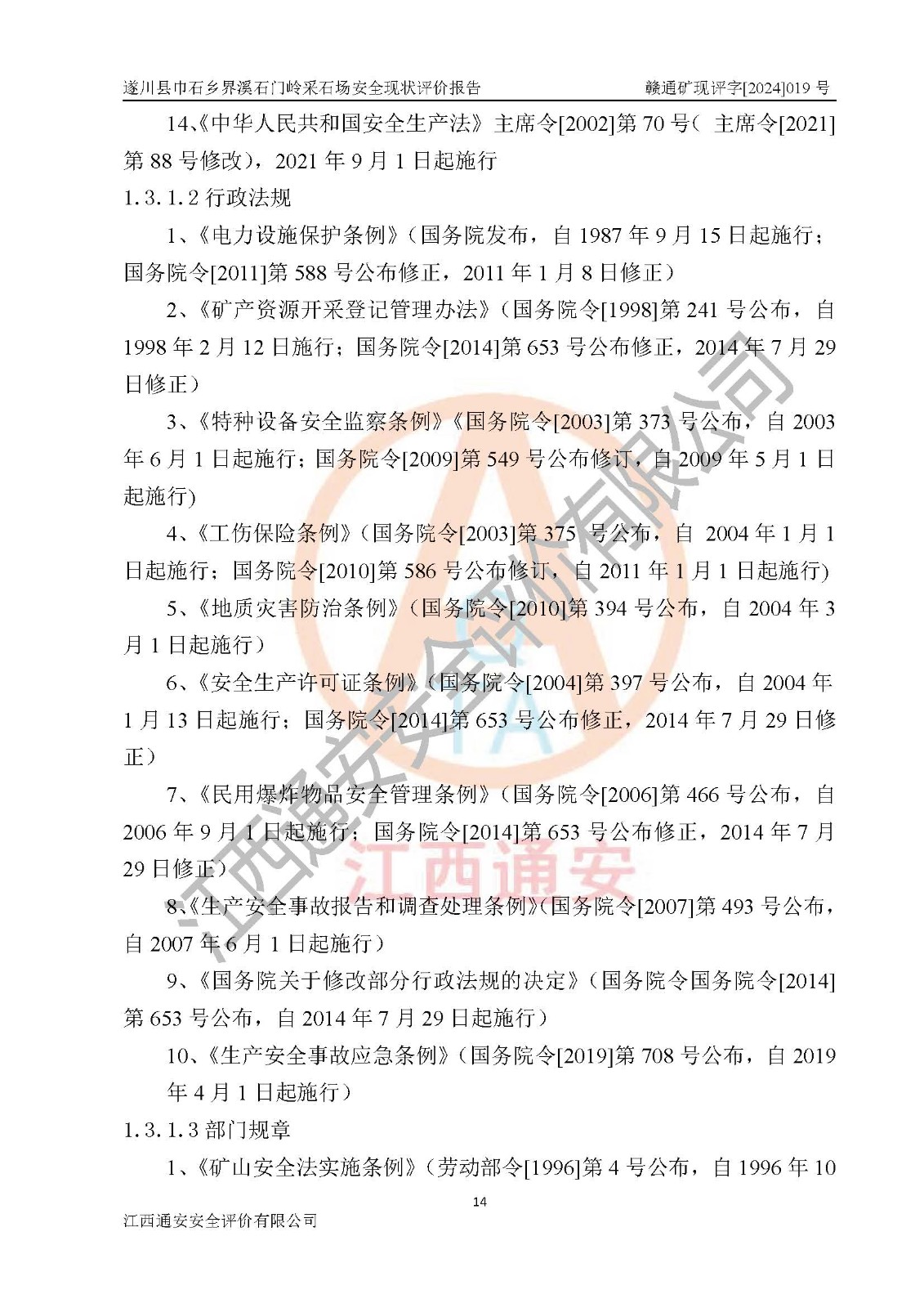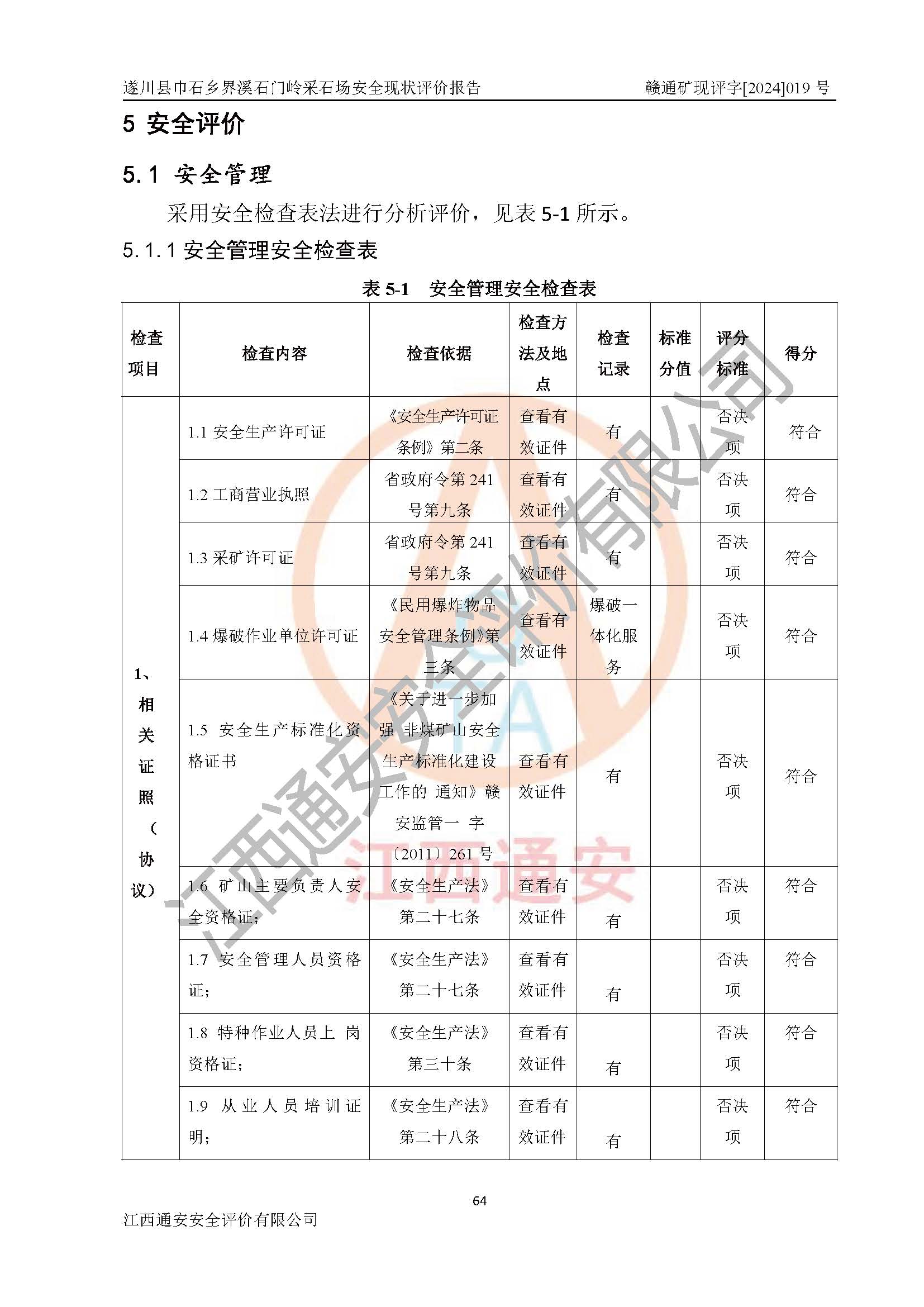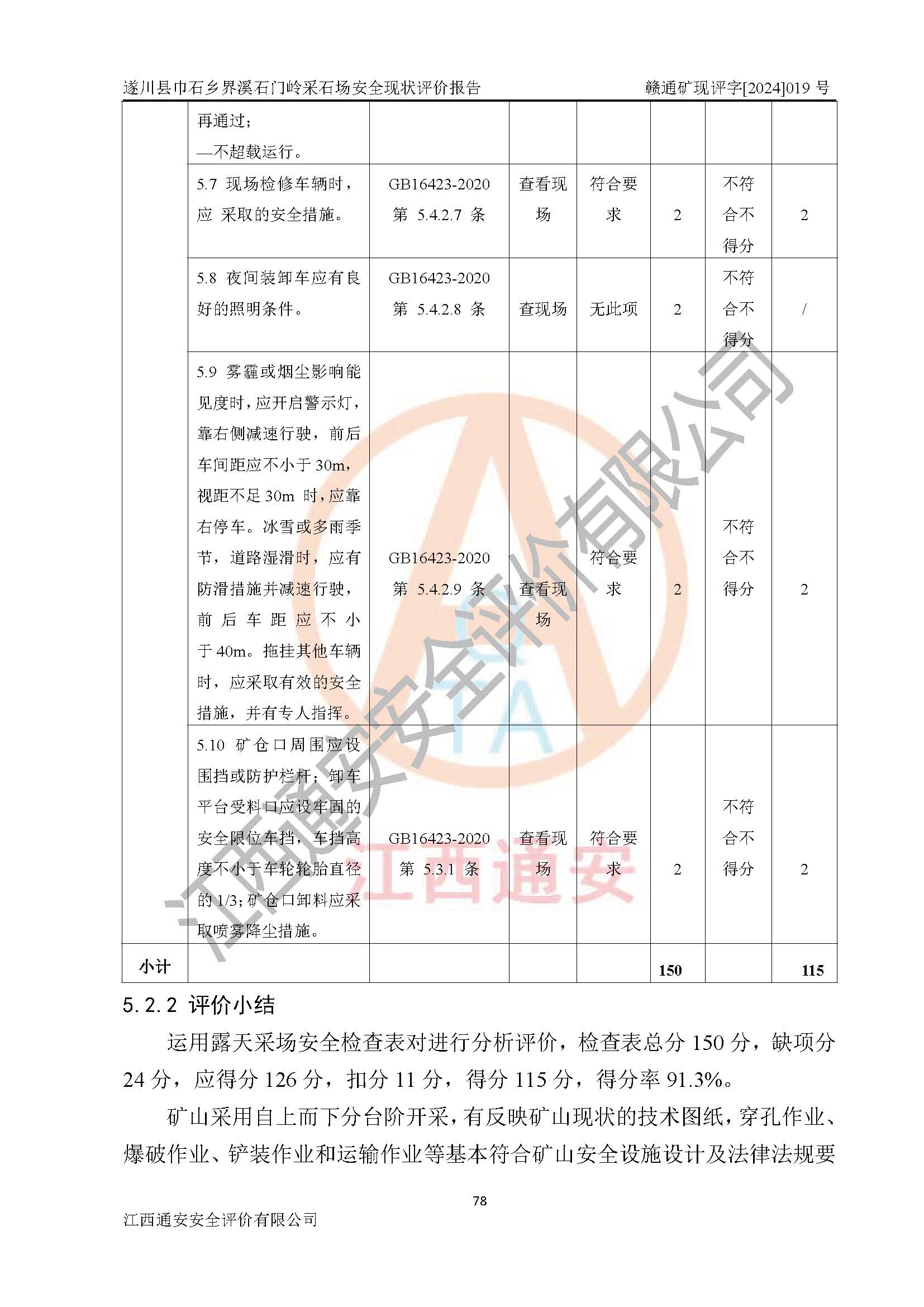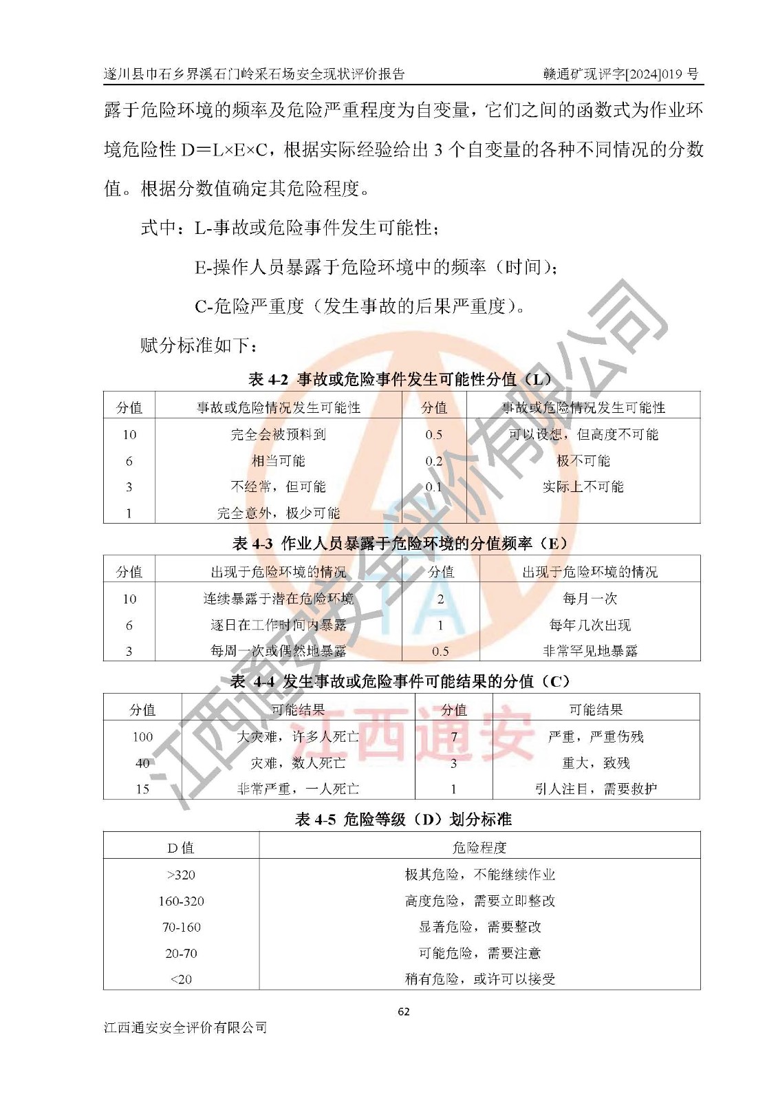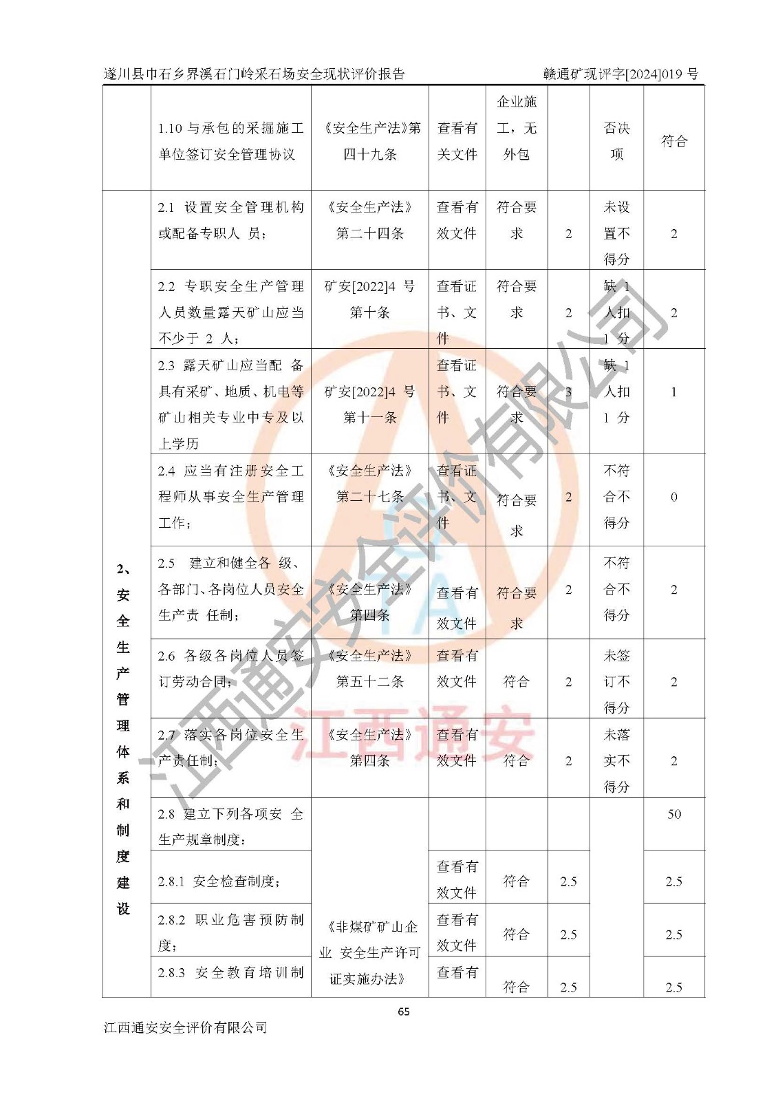 项目名称 | 遂川县巾石乡界溪石门岭采石场安全现状评价报告 | ||||