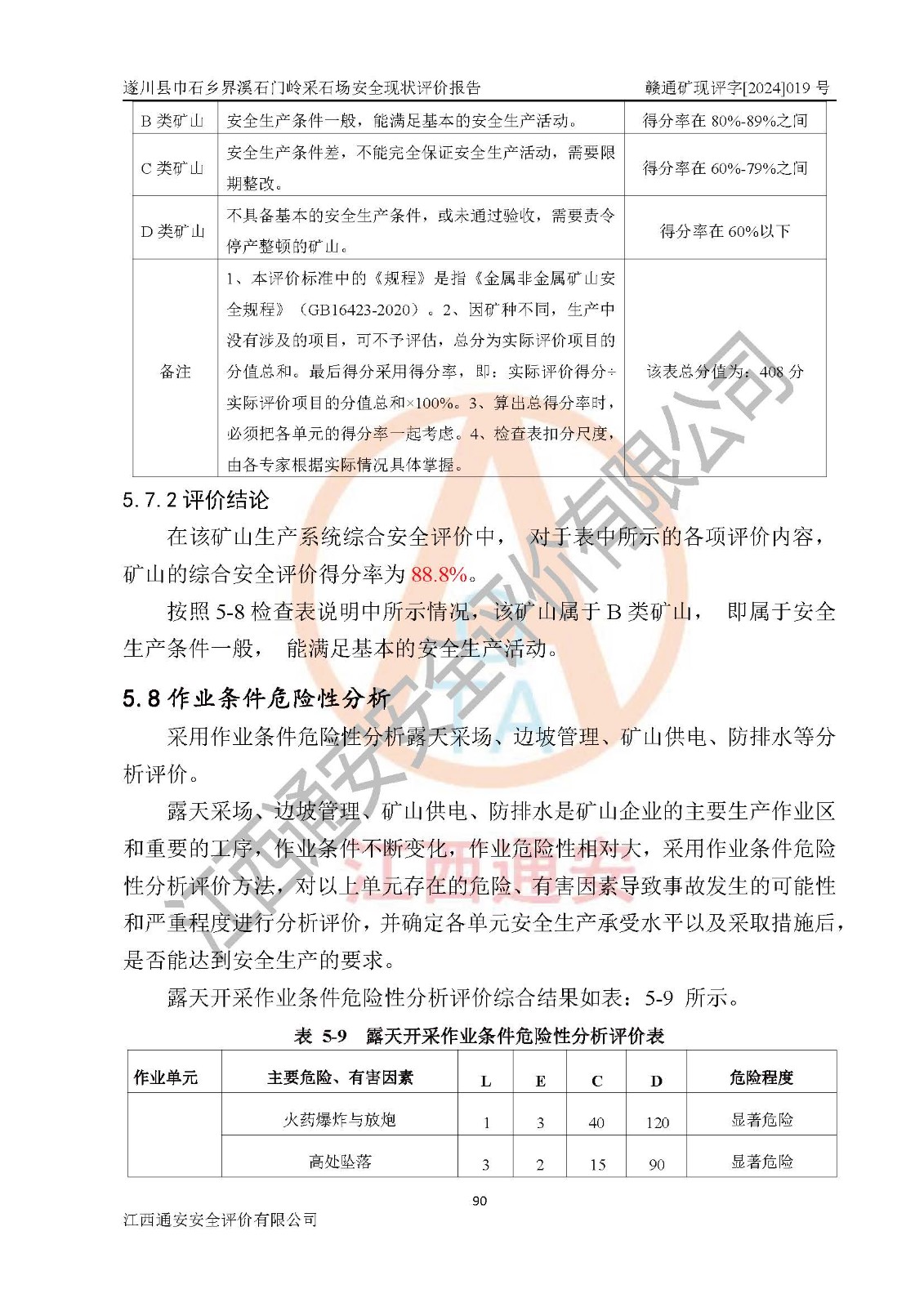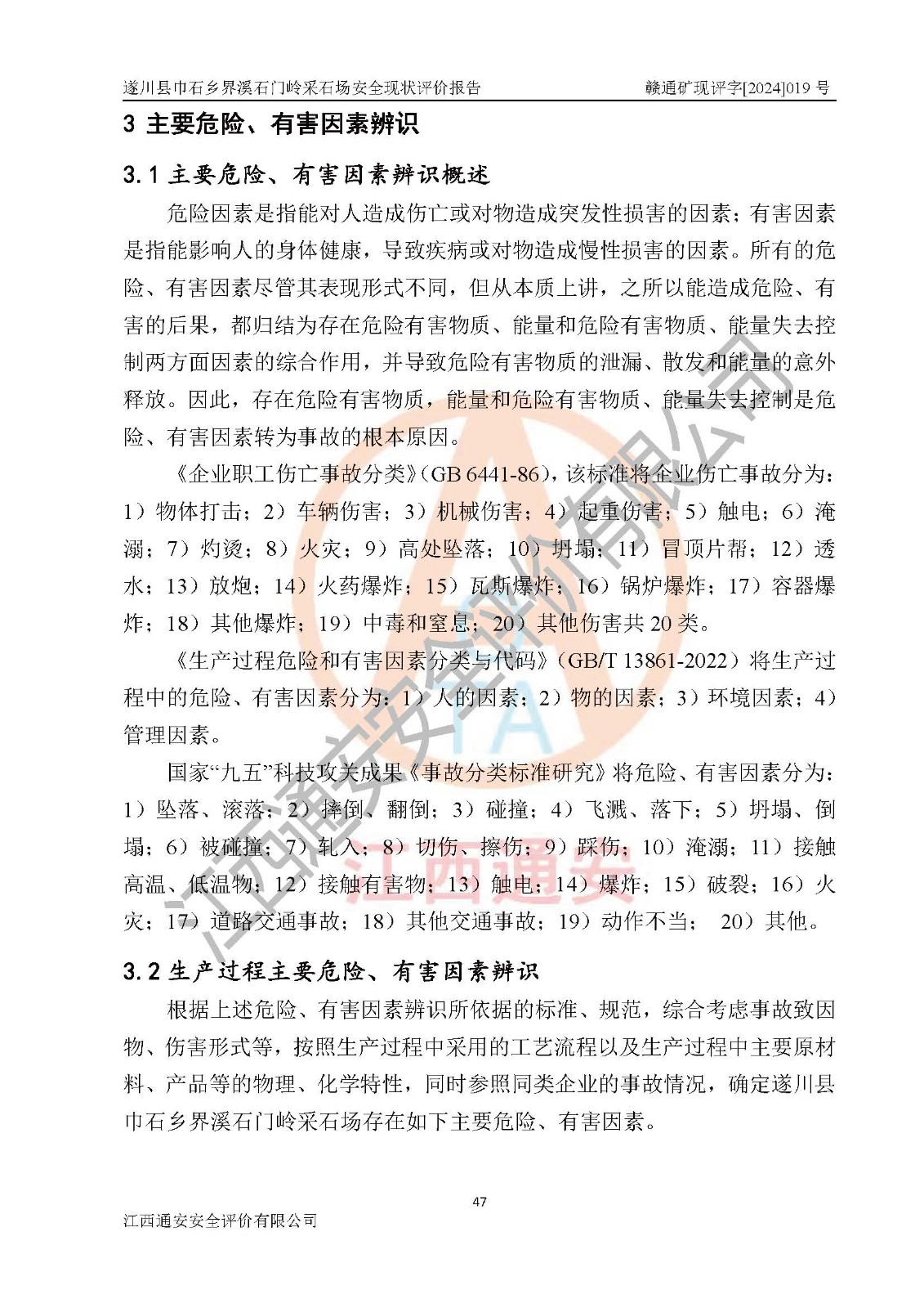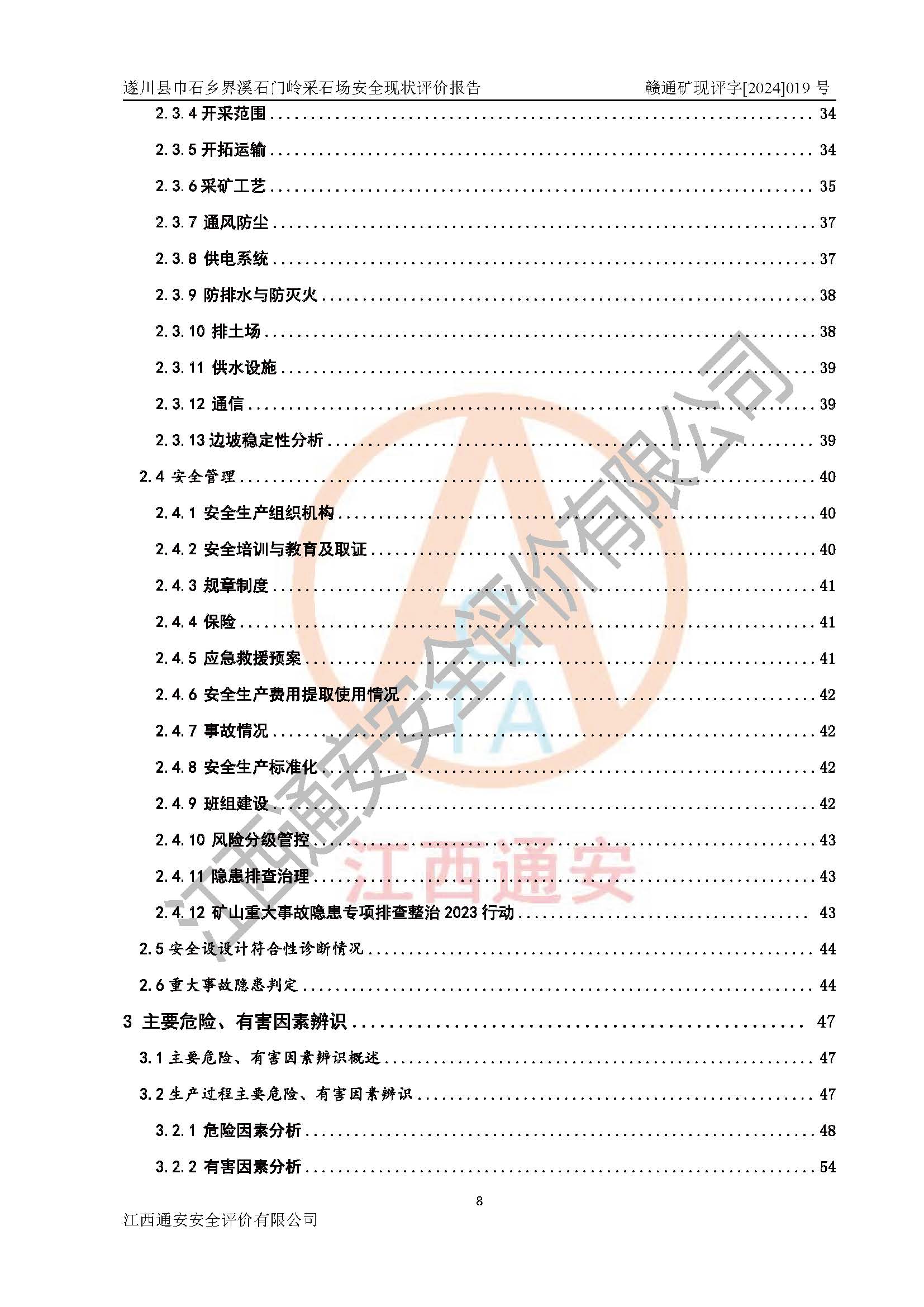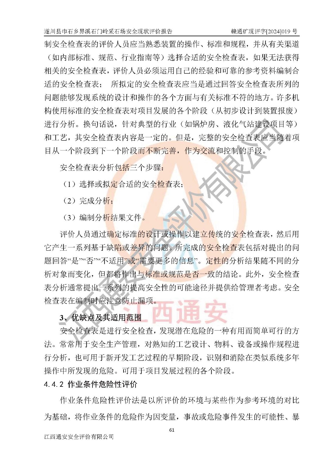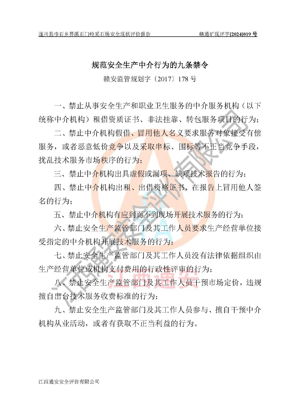 项目名称 | 遂川县巾石乡界溪石门岭采石场安全现状评价报告 | ||||