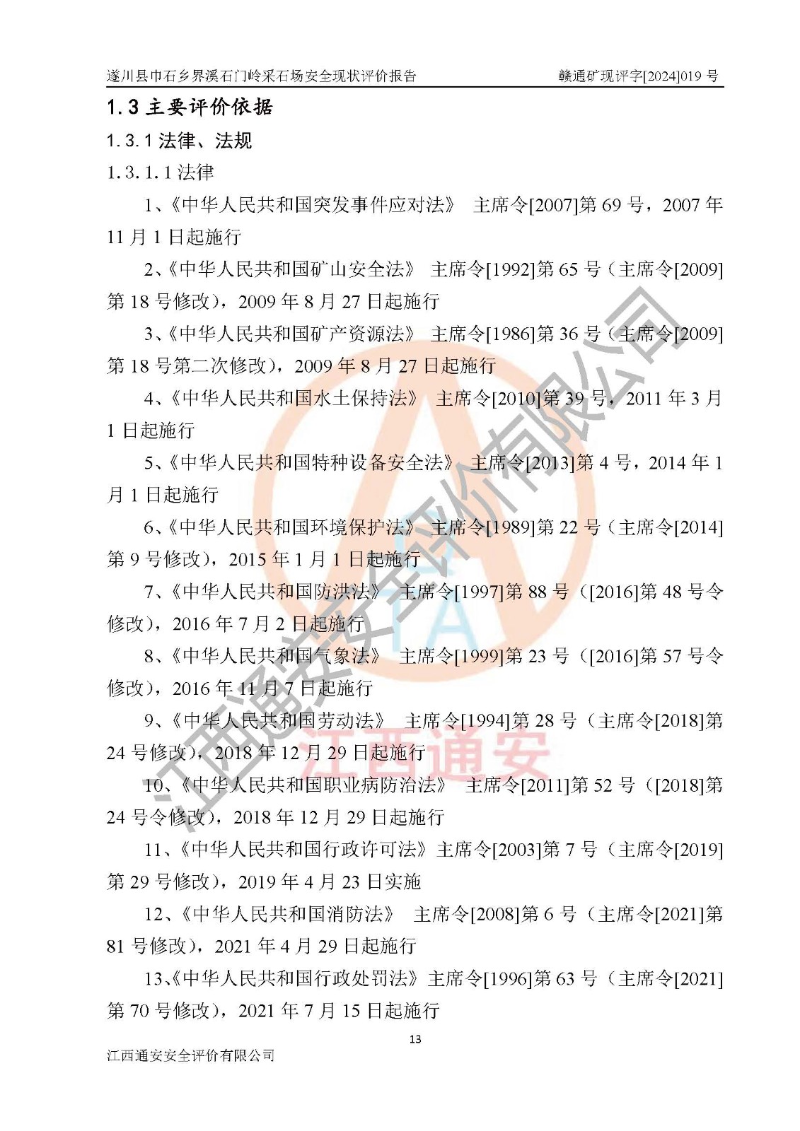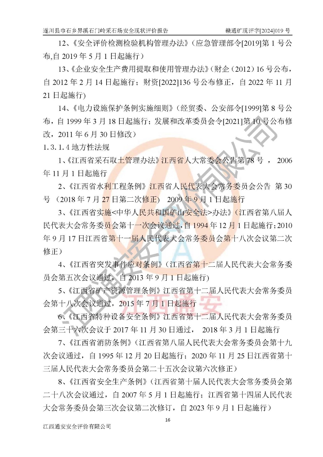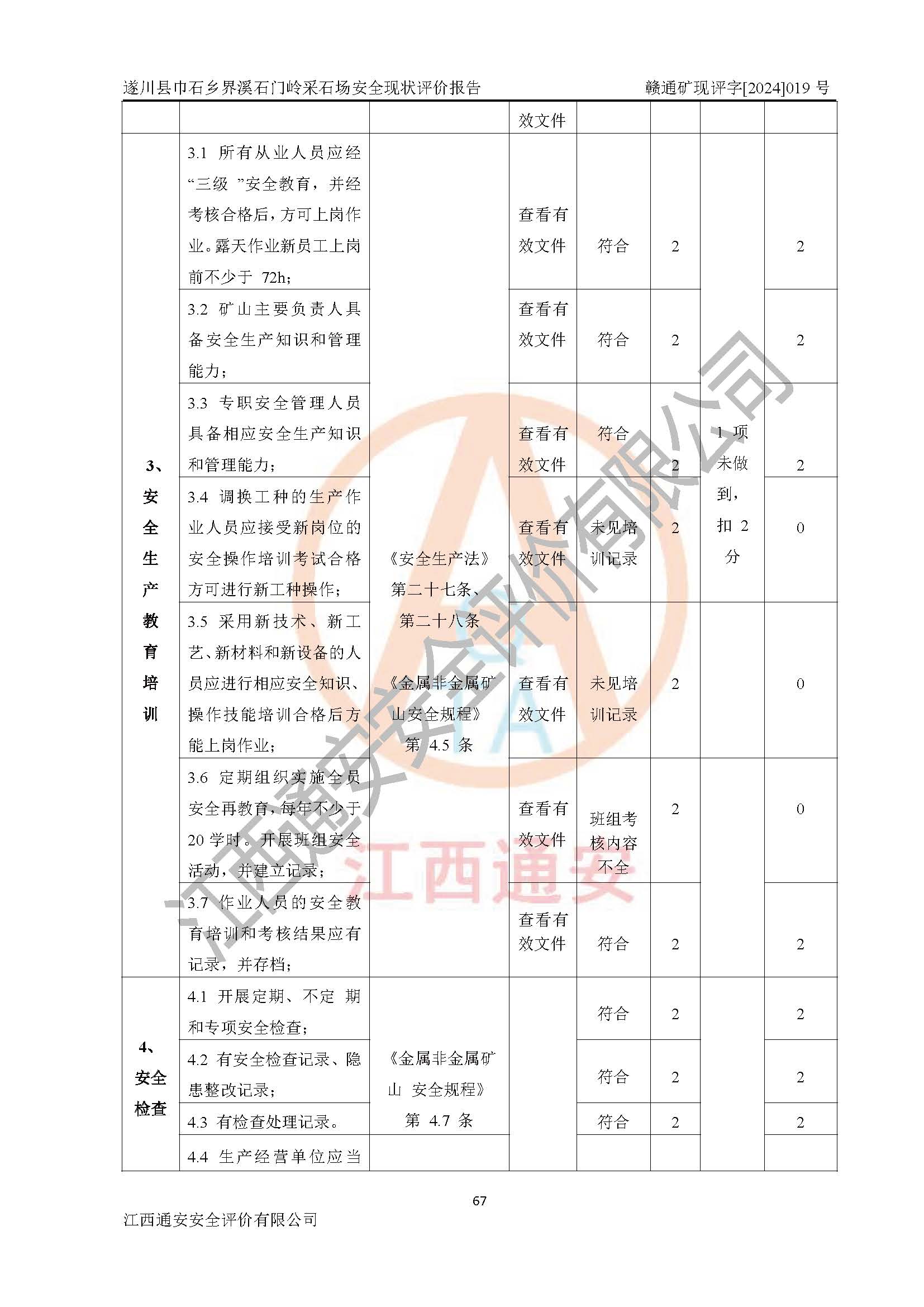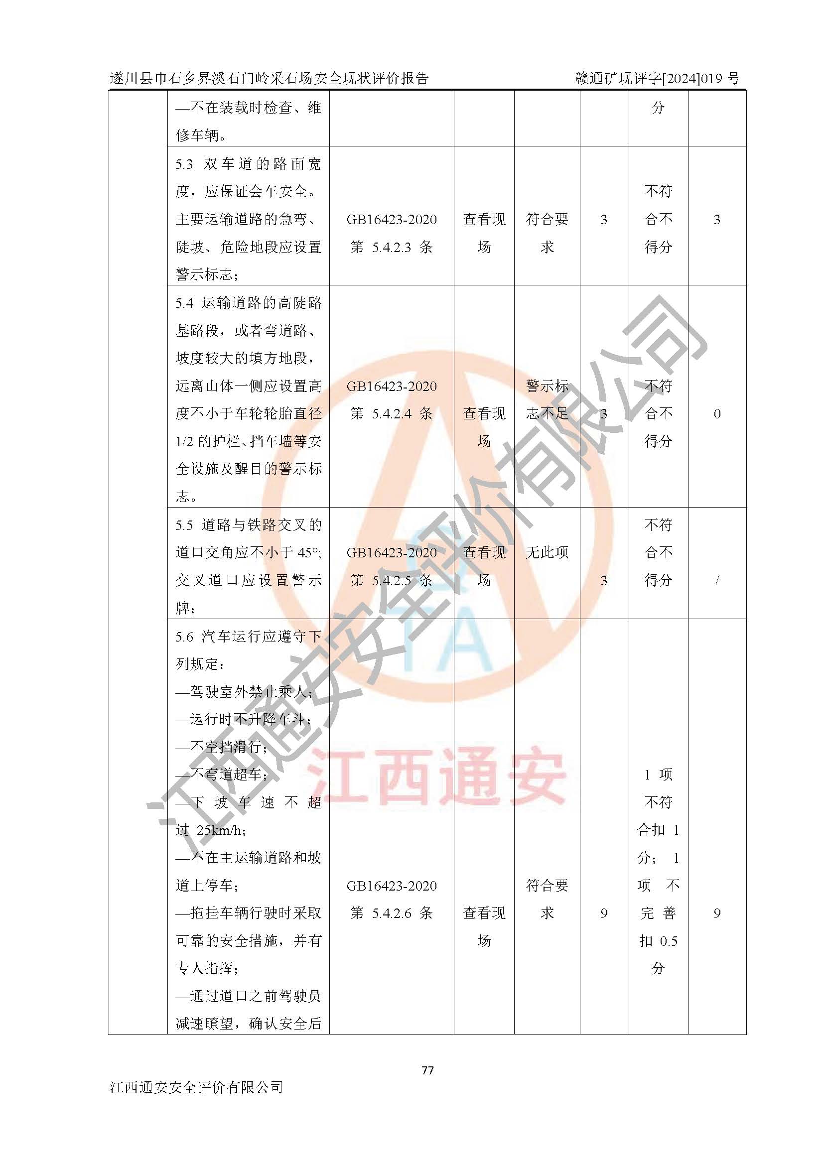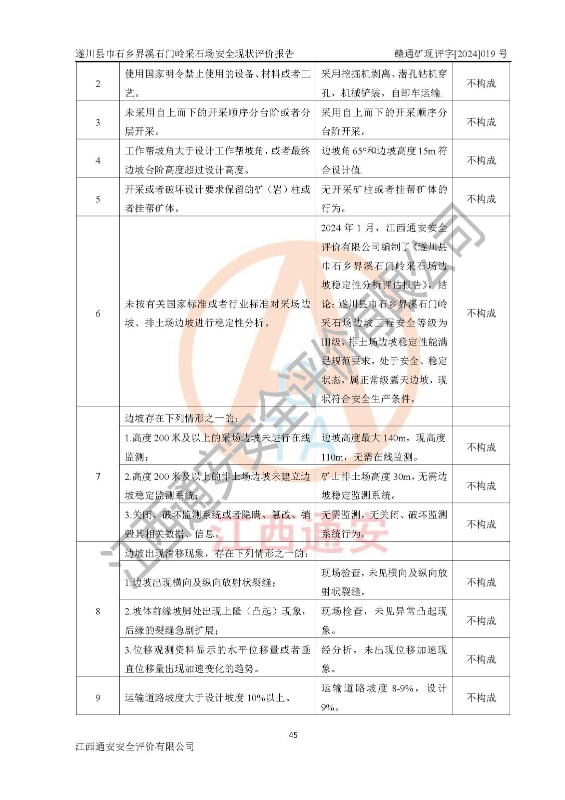 项目名称 | 遂川县巾石乡界溪石门岭采石场安全现状评价报告 | ||||