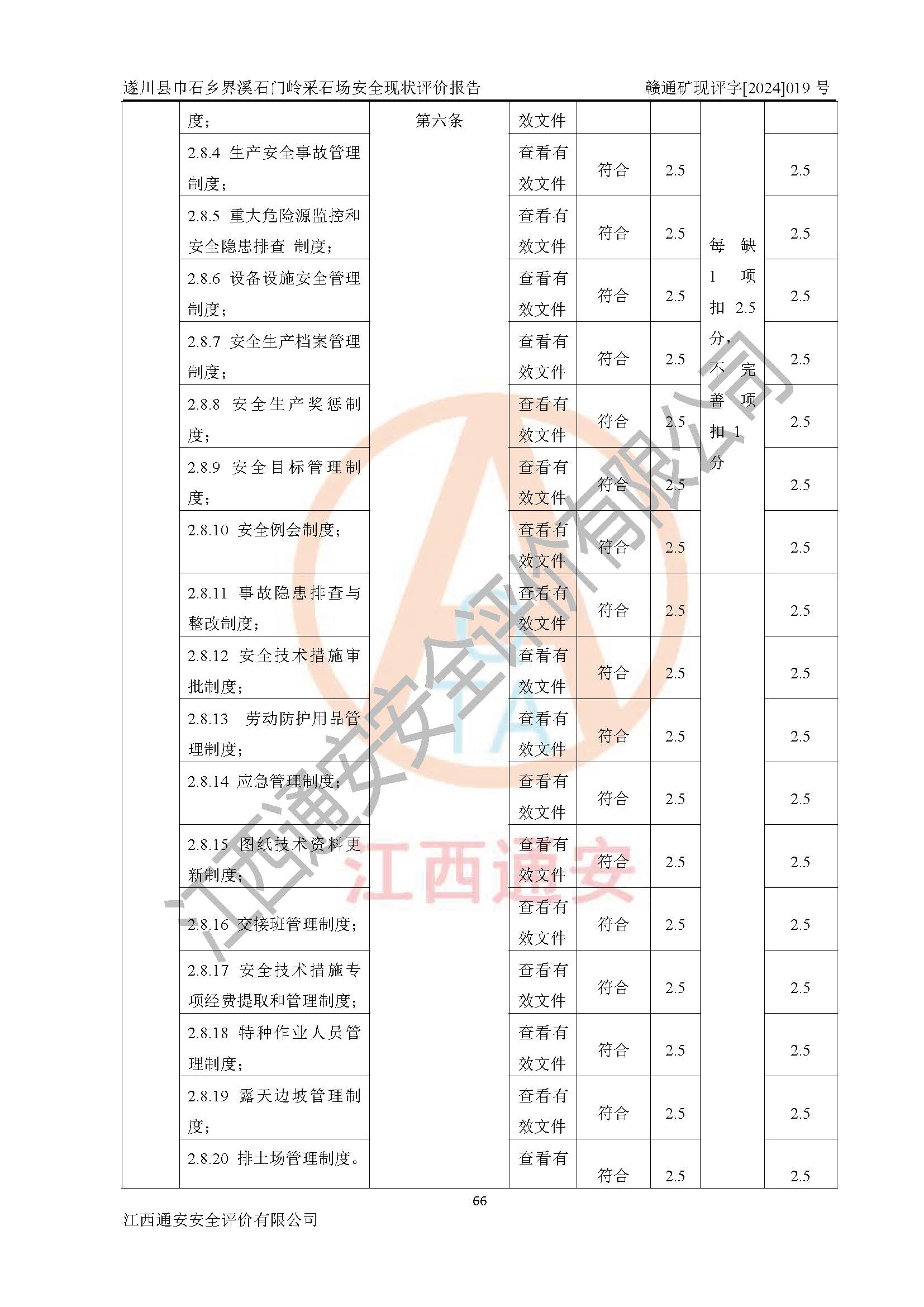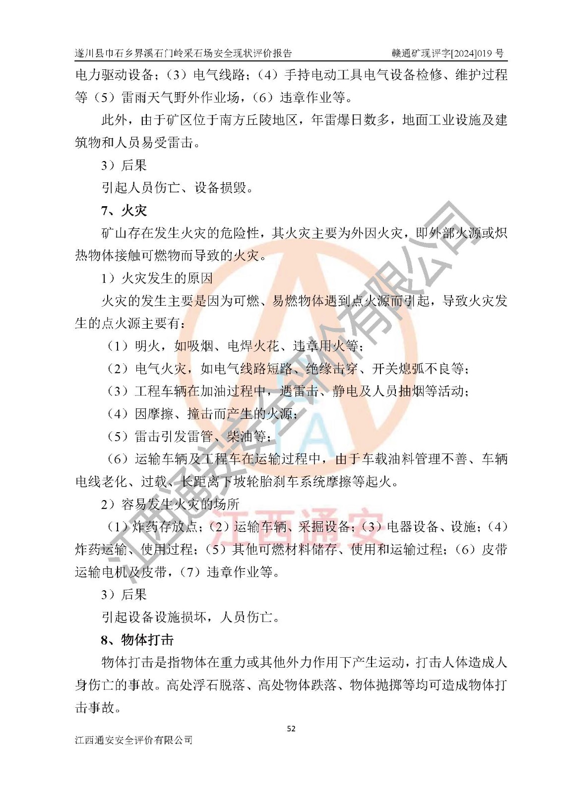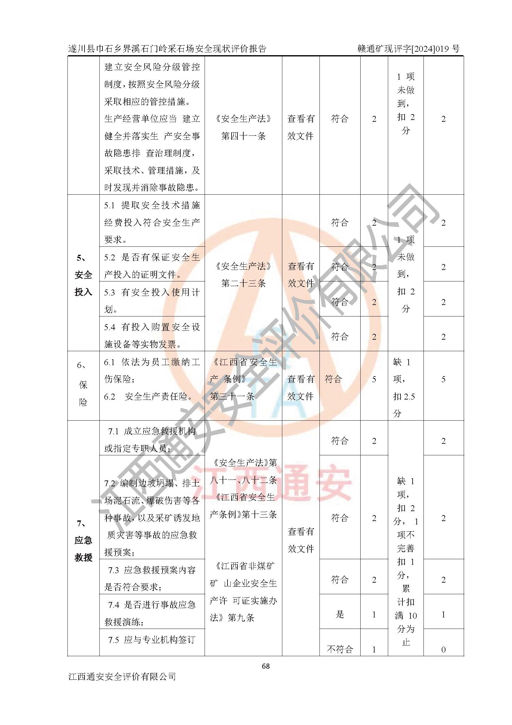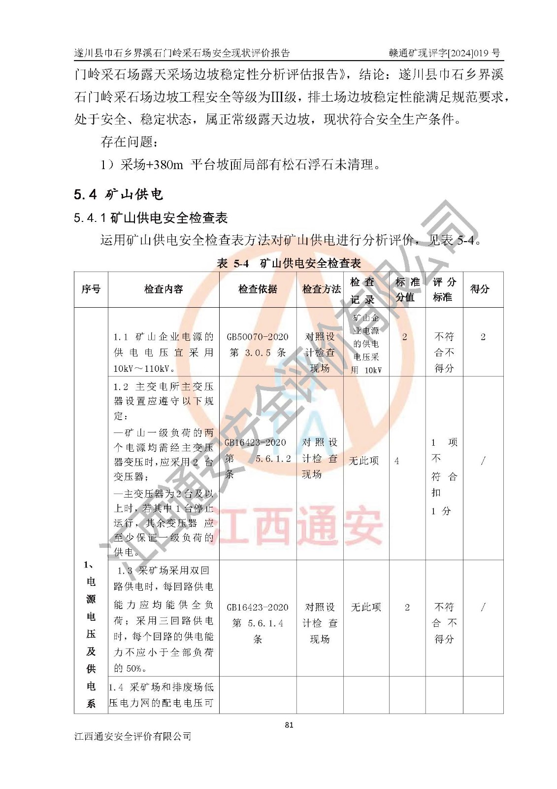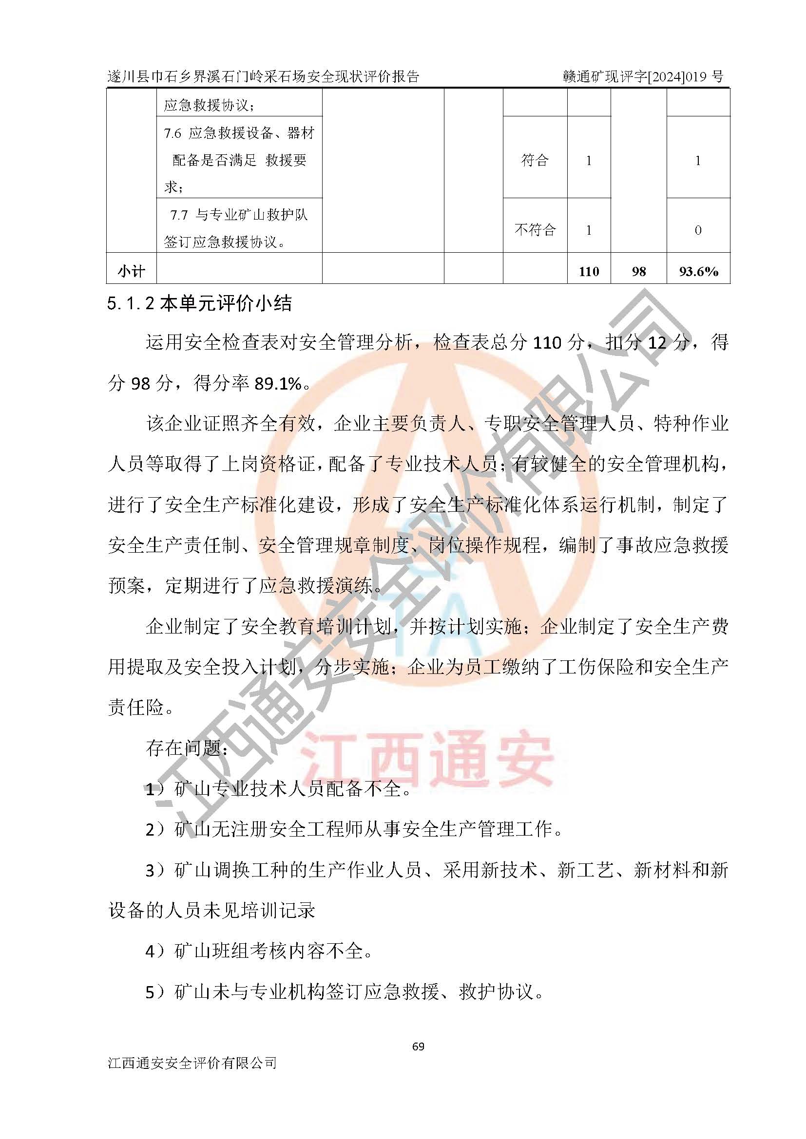 项目名称 | 遂川县巾石乡界溪石门岭采石场安全现状评价报告 | ||||