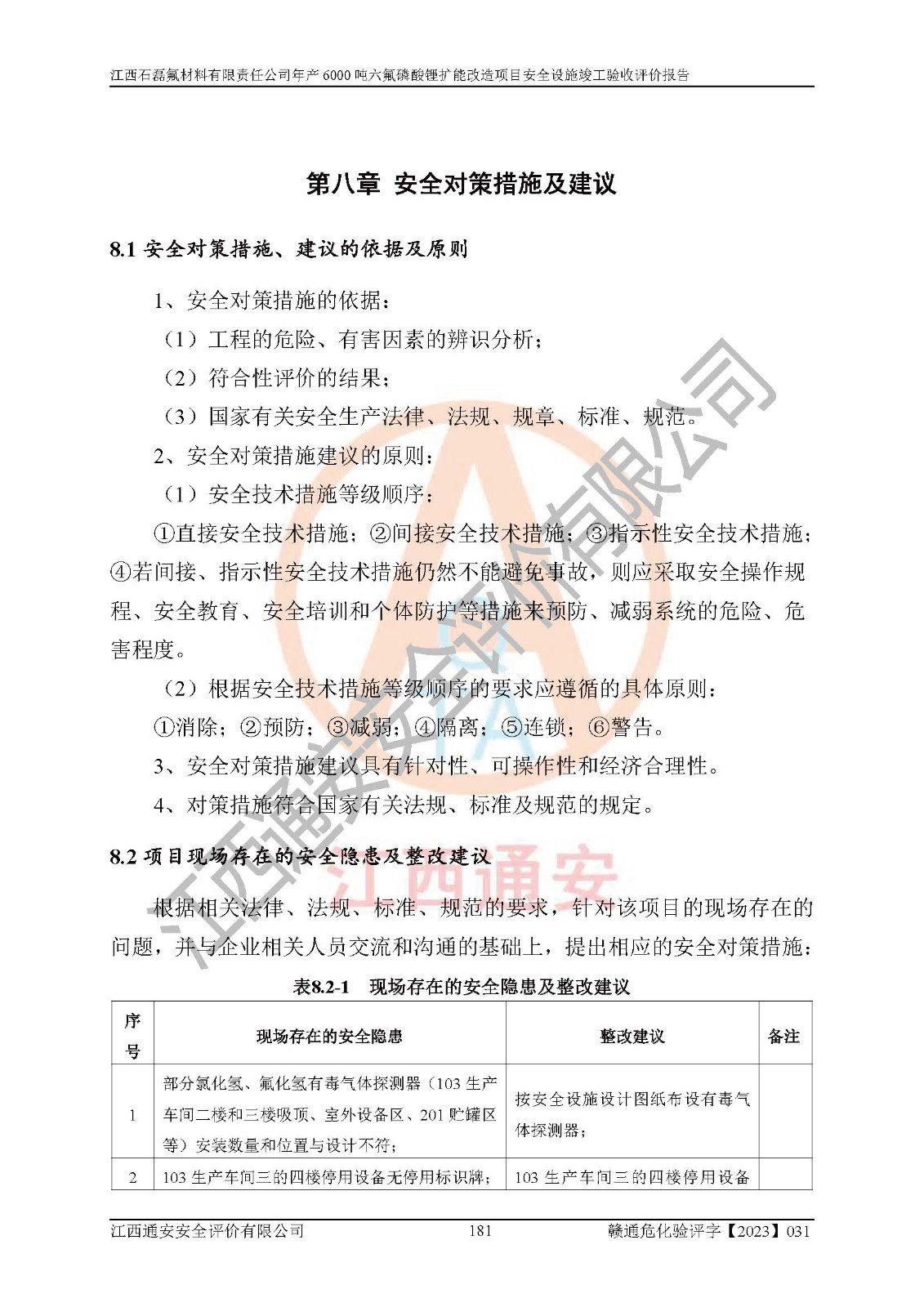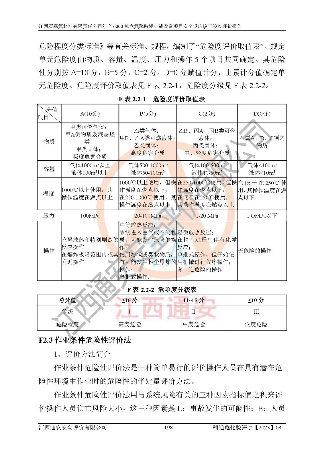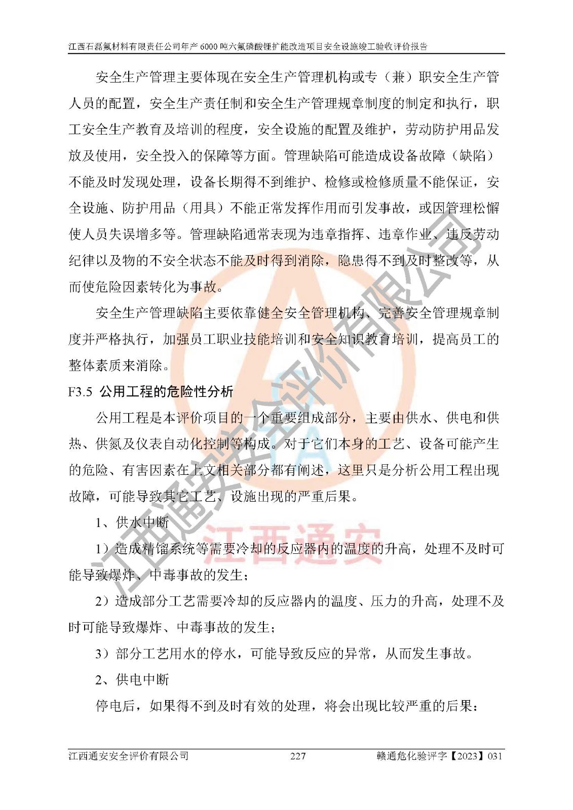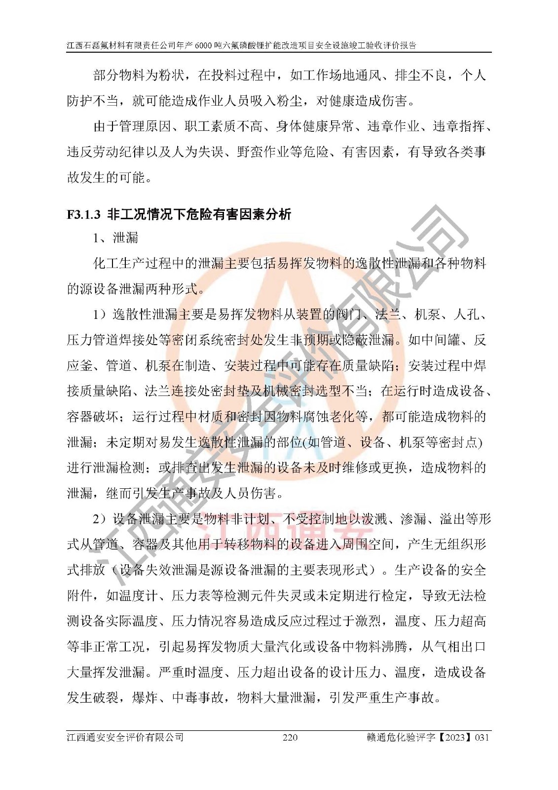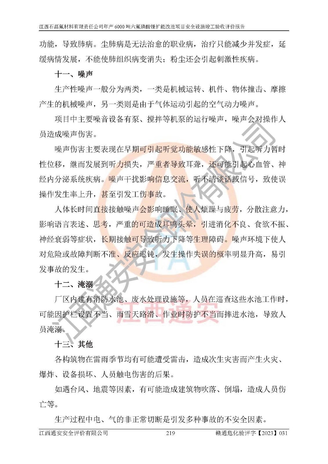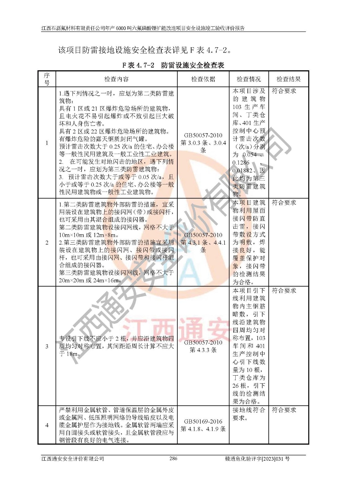 一、建设项目所在地的安全条件和与周边的安全防护距离 (1)该项目位于江西省赣州市会昌县氟盐化工产业基地,属于认定的化工园区,厂址选择合理,该项目与周边环境的防火间距符合规范的要求。 (2)重大危险源与“八类敏感场所及区域”的距离符合相关法律、法规的规定。 (3)该项目103生产车间三和201罐区一均构成**重大危险源。根据《危险化学品生产装置和储存设施外部安全防护距离确定方法》(GB/T 37243-2019)和《危险化学品生产装置和储存设施风险基准》(GB 36894-2018),该项目高敏感防护目标、重要防护目标、一般防护目标中的一类防护目标(<3×10-7)的外部安全防护距离包络线距离厂界*大值为76.36m,个人风险等值线范围内未出现该类防护目标;一般防护目标中的二类防护目标(<3×10-6)的外部安全防护距离包络线距离厂界*大值为51.62m,个人风险等值线范围内未涉及相应的防护目标;一般防护目标中的三类防护目标(<1×10-5)外部安全防护距离的包络线未出厂界。项目外部安全防护距离内无相应的防护目标,该项目不存在社会风险。 (4)该项目投产后在正常生产情况下,对其周边单位的生产、经营活动和居民的生活影响很小。在发生事故的情况下对周边单位的生产、经营活动和居民的生活存在影响。该项目周边单位的生产、经营活动和居民的生活对该项目投产后的正常生产影响很小。该项目所在地自然条件(不包括地震等破坏力**的自然灾害)的变化对该项目投产后的正常生产没有影响。 二、建设项目安全设施设计的采纳情况和已采用(取)的安全设施水平 该项目采用的主要安全设施包括了以下方面:检测、报警设施,设备安全防护设施,作业场所防护设施,安全警示标志,泄压和止逆设施,紧急处理设施,防止火灾蔓延设施,灭火设施,紧急个人处置设施,应急救援设施,劳动防护用品和装备等。 该项目在建设过程中采纳了《安全设施设计专篇》中的有关安全措施建议及要求,针对性的采取了相应的预防和控制措施,建设中未落实的安全措施,在试生产中已进行了整改。试生产表明该项目所采取的安全控制措施安全**,主要生产装置、设备运行平稳,安全可靠,安全水平较高,能够满足安全生产条件。 三、建设项目试生产(使用)后具备**现行有关安全生产法律、法规和部门规章及标准规定和要求的安全生产条件 1)法律法规等方面的符合性:该项目按照建设项目“三同时”要求,项目进行了备案、通过了安全条件审查、安全设施设计审查、试生产方案审查,立项审批手续齐全,安全设施设计、建设施工、施工监理均由有资质的单位承担,项目建设符合法律、法规规定的审批、施工、监理手续。项目建设期间,公司结合生产需要,增设了部分辅助设施和工艺管线,属于一般变更,试生产期间公司已委托河北英科石化工程有限公司进行了设计变更,作为已经审查通过的安全设施设计专篇的补充文件。 2)该项目与周边建构筑物的防火距离符合《精细化工企业工程设计防火标准》《建筑设计防火规范》的要求。根据《危险化学品生产装置和储存设施风险基准》GB36894-2018确定危险化学品单位周边重要目标和敏感场所承受的可容许个人风险和社会风险的定量风险评价。项目的个人风险计算结果表明,项目外部安全防护距离的包络线内无相应的防护目标。该软件未计算出社会风险。因此项目可容许个人风险和社会风险均在可接受范围内。 3)平面布置及常规防护设施措施的合理性:该项目生产场所、办公场所之间的间距满足安全要求,建筑结构、防火分区、防雷设施、安全出口的设置等满足安全生产的要求。消防道路的净宽度、净**、转弯半径均满足运输**及消防**通行。设置的常规防护设施、防止机械伤害、防急性中毒窒息的设施和措施符合要求。 4)设施、设备、装置及工艺方面的安全性:无**明令淘汰的工艺和 设备,该项目不涉及爆炸性危险区域划分。生产工艺操作和设置的安全设施满足安全需要,生产设施的布置能**人员疏散安全及操作方便。设施、设备、装置及工艺方面安全可靠。 5)特种设备、强制检测设备设施监督检验情况:该项目特种设备均进行了检验检测,并取得了检验报告;安全阀、压力表、有毒气体探头也进行了校验,校验结论合格,特种设备及安全附件符合《特种设备安全监察条例》 等相关法律法规、条例的规定。 6)公用工程、辅助设施的配套性:为该项目生产配套的供水、供电、 供气、供热等满足需要。 7)人员管理及安全培训方面充分性:公司现已建立了安全管理机构, 配备了专职安全管理人员。主要负责人王成具备化学工程与工艺专业本科学历,分管生产负责人曾中山具备化学工程与工艺专业本科学历,分管设备和技术负责人刘辉涛具备应用化学专业本科学历。专职安全管理人员共4人,配有一名注册安全工程师,专职安全管理人员均具有大专以上化工及安全专业相关学历。重点监管化工工艺的生产装置、储存设施操作人员具备高中及以上学历或化工类中等及以上职业教育水平。该公司制定了较完善的安全管理制度、岗位责任制、安全操作规程,制度执行情况较好。该公司已为从业职工交纳了工伤**。该公司对操作员工进行相关的培训和教育,经培训合格后上岗。 8)应急救援**性:企业根据自身实际情况,将该项目按照《生产经 营单位生产安全事故