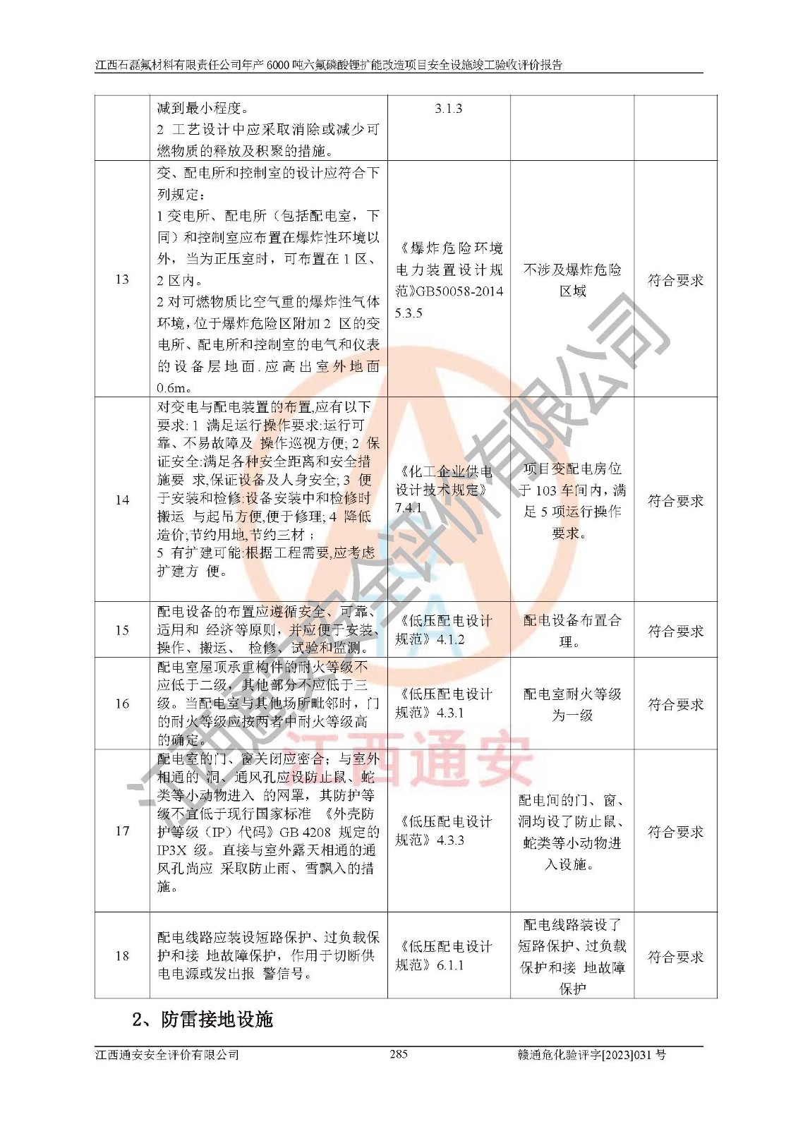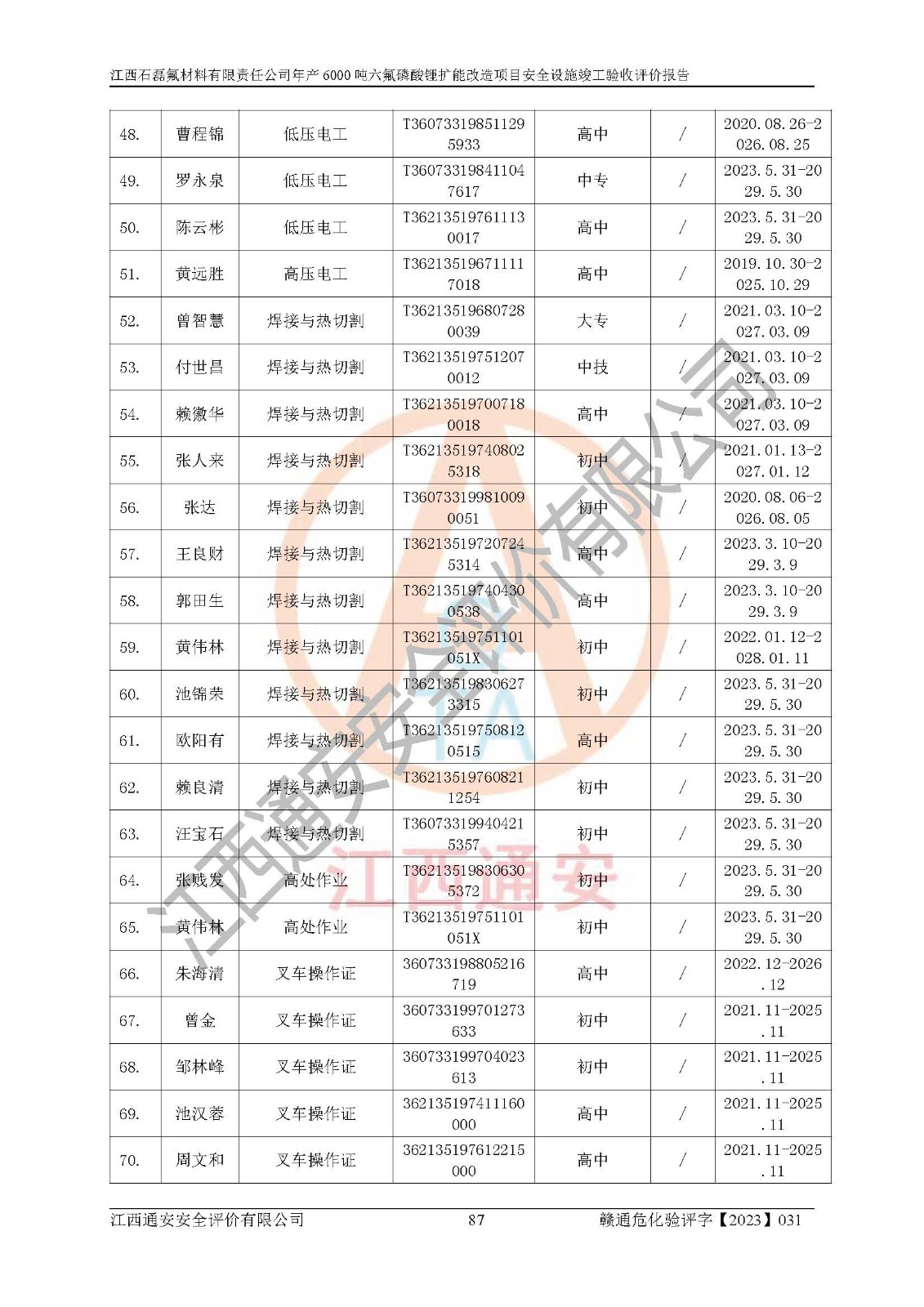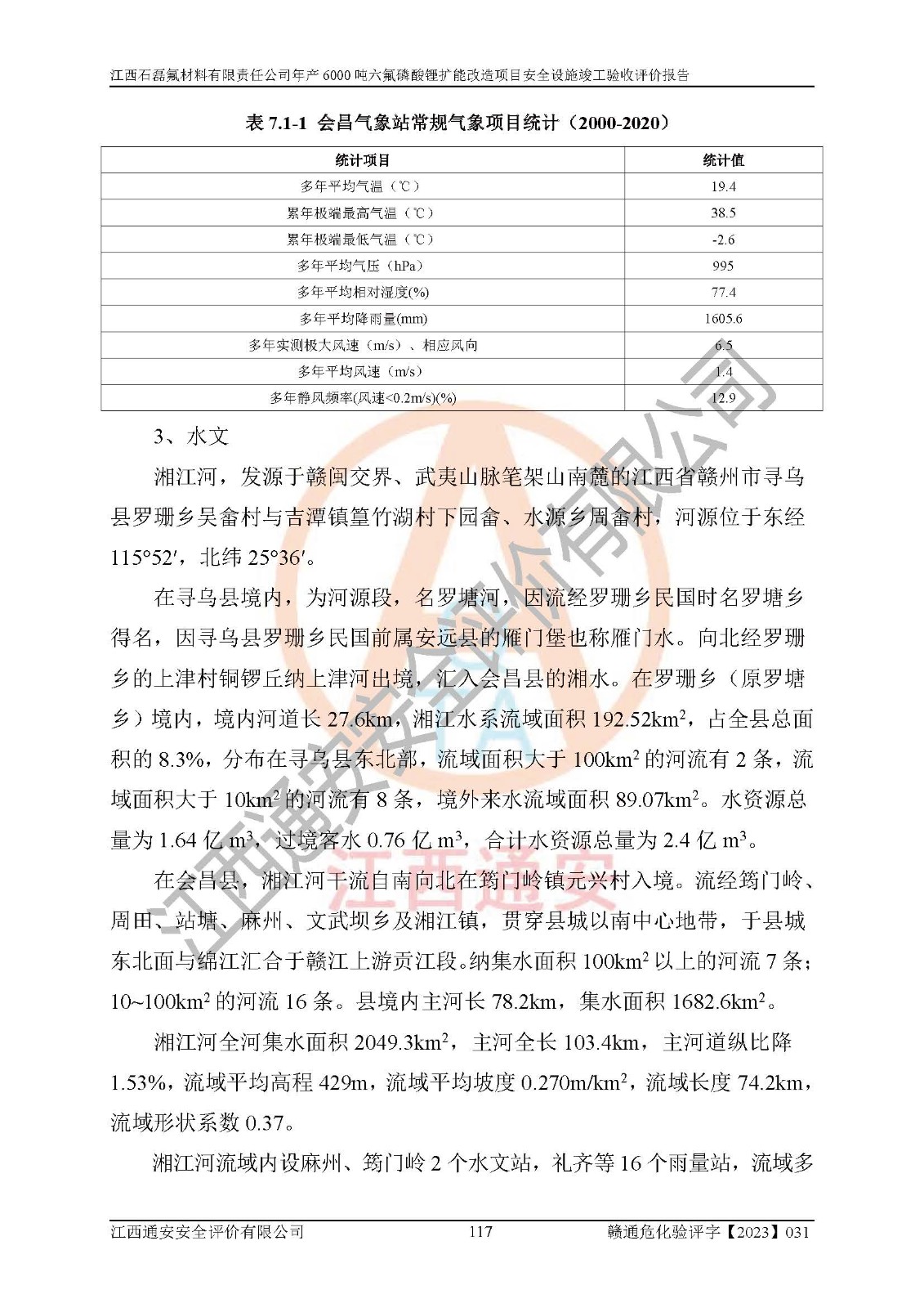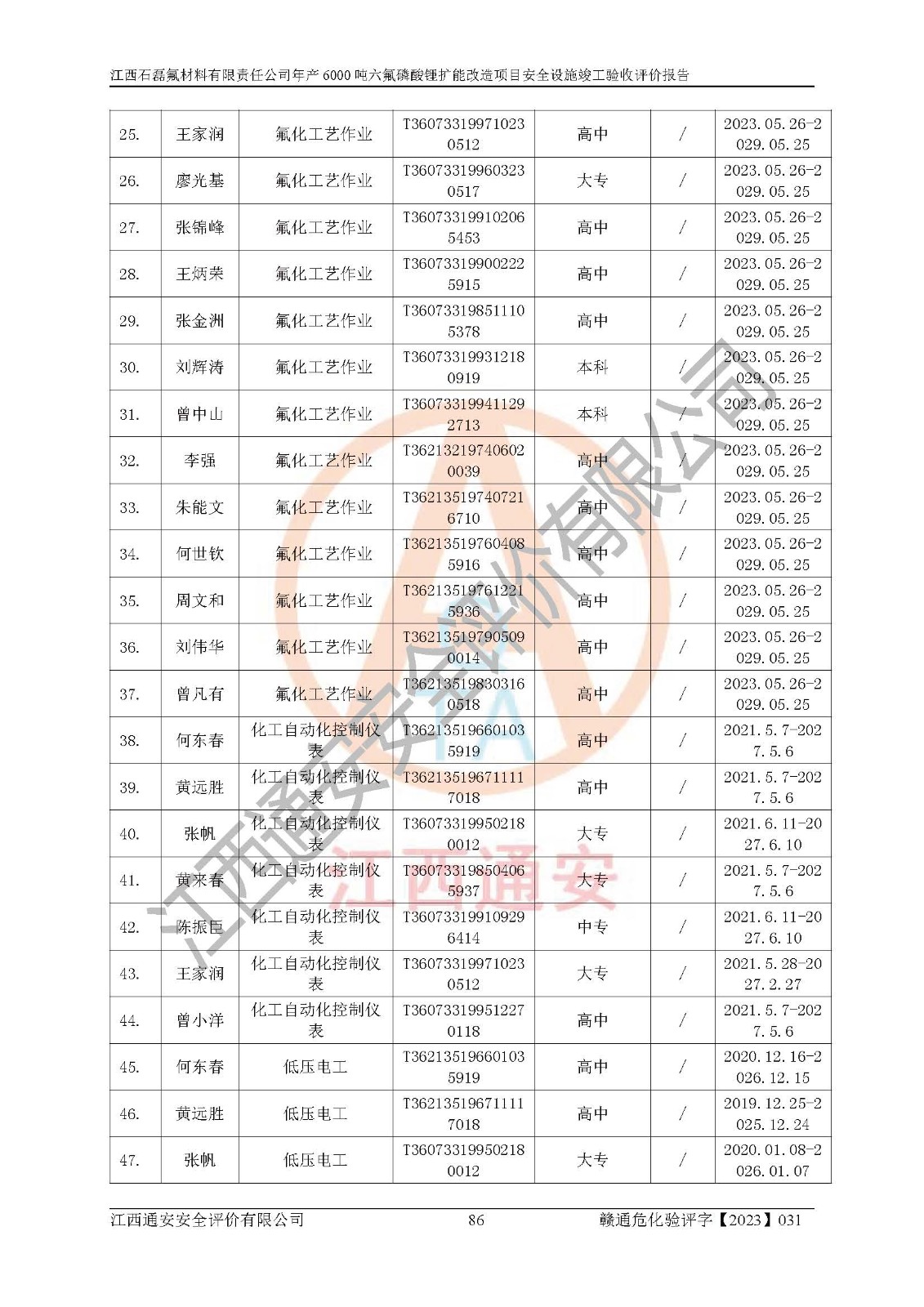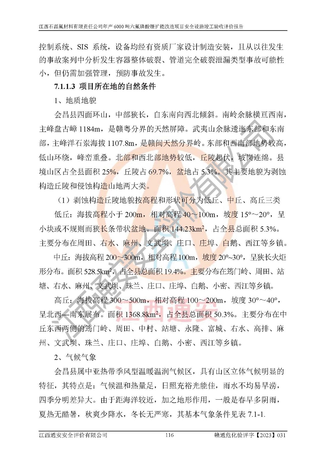 一、建设项目所在地的安全条件和与周边的安全防护距离 (1)该项目位于江西省赣州市会昌县氟盐化工产业基地,属于认定的化工园区,厂址选择合理,该项目与周边环境的防火间距符合规范的要求。 (2)重大危险源与“八类敏感场所及区域”的距离符合相关法律、法规的规定。 (3)该项目103生产车间三和201罐区一均构成**重大危险源。根据《危险化学品生产装置和储存设施外部安全防护距离确定方法》(GB/T 37243-2019)和《危险化学品生产装置和储存设施风险基准》(GB 36894-2018),该项目高敏感防护目标、重要防护目标、一般防护目标中的一类防护目标(<3×10-7)的外部安全防护距离包络线距离厂界*大值为76.36m,个人风险等值线范围内未出现该类防护目标;一般防护目标中的二类防护目标(<3×10-6)的外部安全防护距离包络线距离厂界*大值为51.62m,个人风险等值线范围内未涉及相应的防护目标;一般防护目标中的三类防护目标(<1×10-5)外部安全防护距离的包络线未出厂界。项目外部安全防护距离内无相应的防护目标,该项目不存在社会风险。 (4)该项目投产后在正常生产情况下,对其周边单位的生产、经营活动和居民的生活影响很小。在发生事故的情况下对周边单位的生产、经营活动和居民的生活存在影响。该项目周边单位的生产、经营活动和居民的生活对该项目投产后的正常生产影响很小。该项目所在地自然条件(不包括地震等破坏力**的自然灾害)的变化对该项目投产后的正常生产没有影响。 二、建设项目安全设施设计的采纳情况和已采用(取)的安全设施水平 该项目采用的主要安全设施包括了以下方面:检测、报警设施,设备安全防护设施,作业场所防护设施,安全警示标志,泄压和止逆设施,紧急处理设施,防止火灾蔓延设施,灭火设施,紧急个人处置设施,应急救援设施,劳动防护用品和装备等。 该项目在建设过程中采纳了《安全设施设计专篇》中的有关安全措施建议及要求,针对性的采取了相应的预防和控制措施,建设中未落实的安全措施,在试生产中已进行了整改。试生产表明该项目所采取的安全控制措施安全**,主要生产装置、设备运行平稳,安全可靠,安全水平较高,能够满足安全生产条件。 三、建设项目试生产(使用)后具备**现行有关安全生产法律、法规和部门规章及标准规定和要求的安全生产条件 1)法律法规等方面的符合性:该项目按照建设项目“三同时”要求,项目进行了备案、通过了安全条件审查、安全设施设计审查、试生产方案审查,立项审批手续齐全,安全设施设计、建设施工、施工监理均由有资质的单位承担,项目建设符合法律、法规规定的审批、施工、监理手续。项目建设期间,公司结合生产需要,增设了部分辅助设施和工艺管线,属于一般变更,试生产期间公司已委托河北英科石化工程有限公司进行了设计变更,作为已经审查通过的安全设施设计专篇的补充文件。 2)该项目与周边建构筑物的防火距离符合《精细化工企业工程设计防火标准》《建筑设计防火规范》的要求。根据《危险化学品生产装置和储存设施风险基准》GB36894-2018确定危险化学品单位周边重要目标和敏感场所承受的可容许个人风险和社会风险的定量风险评价。项目的个人风险计算结果表明,项目外部安全防护距离的包络线内无相应的防护目标。该软件未计算出社会风险。因此项目可容许个人风险和社会风险均在可接受范围内。 3)平面布置及常规防护设施措施的合理性:该项目生产场所、办公场所之间的间距满足安全要求,建筑结构、防火分区、防雷设施、安全出口的设置等满足安全生产的要求。消防道路的净宽度、净**、转弯半径均满足运输**及消防**通行。设置的常规防护设施、防止机械伤害、防急性中毒窒息的设施和措施符合要求。 4)设施、设备、装置及工艺方面的安全性:无**明令淘汰的工艺和 设备,该项目不涉及爆炸性危险区域划分。生产工艺操作和设置的安全设施满足安全需要,生产设施的布置能**人员疏散安全及操作方便。设施、设备、装置及工艺方面安全可靠。 5)特种设备、强制检测设备设施监督检验情况:该项目特种设备均进行了检验检测,并取得了检验报告;安全阀、压力表、有毒气体探头也进行了校验,校验结论合格,特种设备及安全附件符合《特种设备安全监察条例》 等相关法律法规、条例的规定。 6)公用工程、辅助设施的配套性:为该项目生产配套的供水、供电、 供气、供热等满足需要。 7)人员管理及安全培训方面充分性:公司现已建立了安全管理机构, 配备了专职安全管理人员。主要负责人王成具备化学工程与工艺专业本科学历,分管生产负责人曾中山具备化学工程与工艺专业本科学历,分管设备和技术负责人刘辉涛具备应用化学专业本科学历。专职安全管理人员共4人,配有一名注册安全工程师,专职安全管理人员均具有大专以上化工及安全专业相关学历。重点监管化工工艺的生产装置、储存设施操作人员具备高中及以上学历或化工类中等及以上职业教育水平。该公司制定了较完善的安全管理制度、岗位责任制、安全操作规程,制度执行情况较好。该公司已为从业职工交纳了工伤**。该公司对操作员工进行相关的培训和教育,经培训合格后上岗。 8)应急救援**性:企业根据自身实际情况,将该项目按照《生产经 营单位生产安全事故