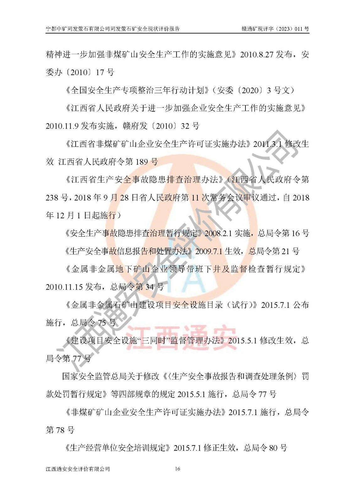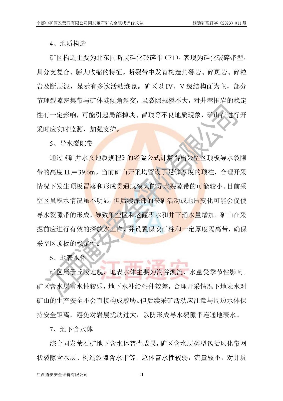 项目名称 | 宁都中矿同发萤石有限公司同发萤石矿安全现状评价报告 | ||||