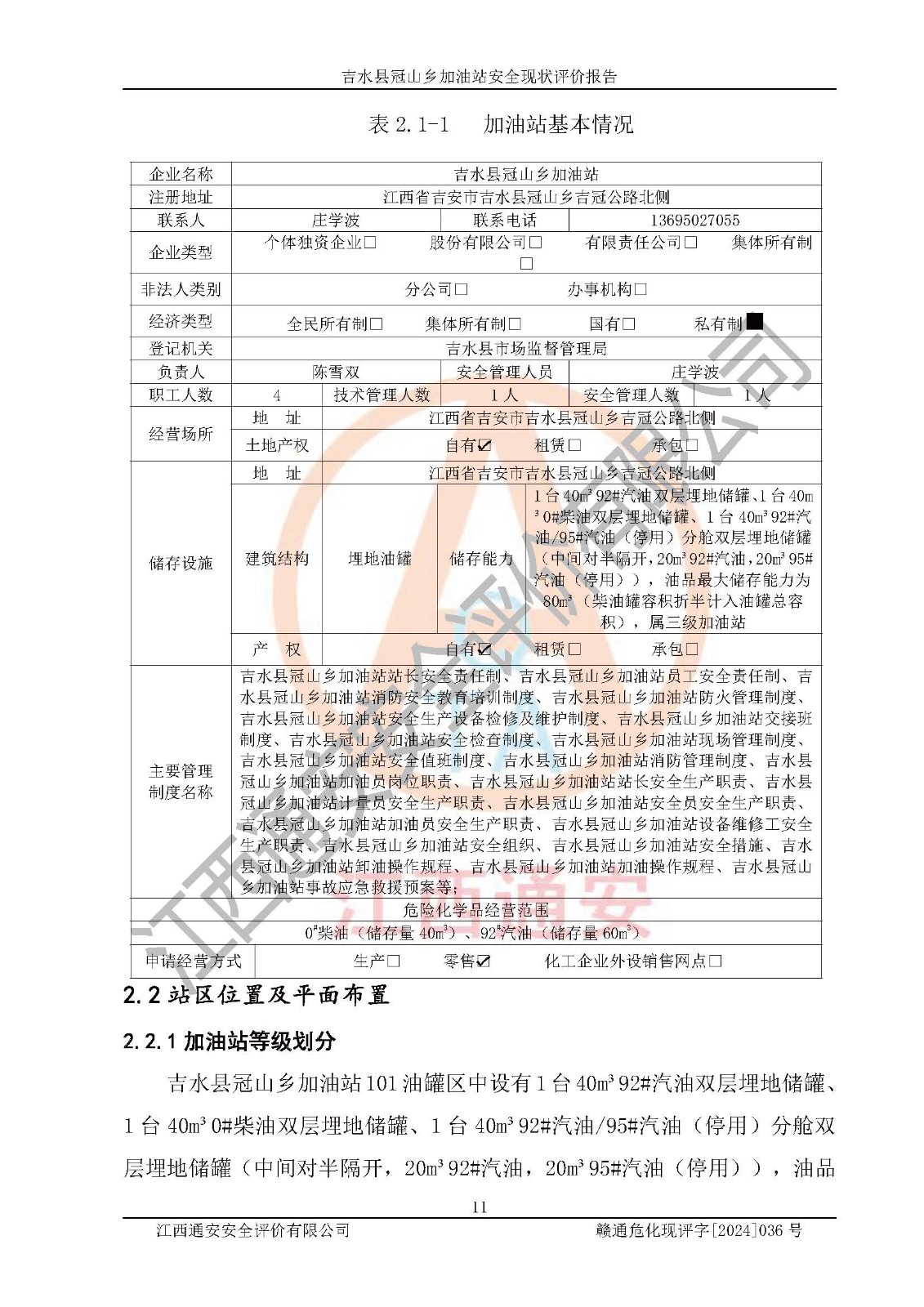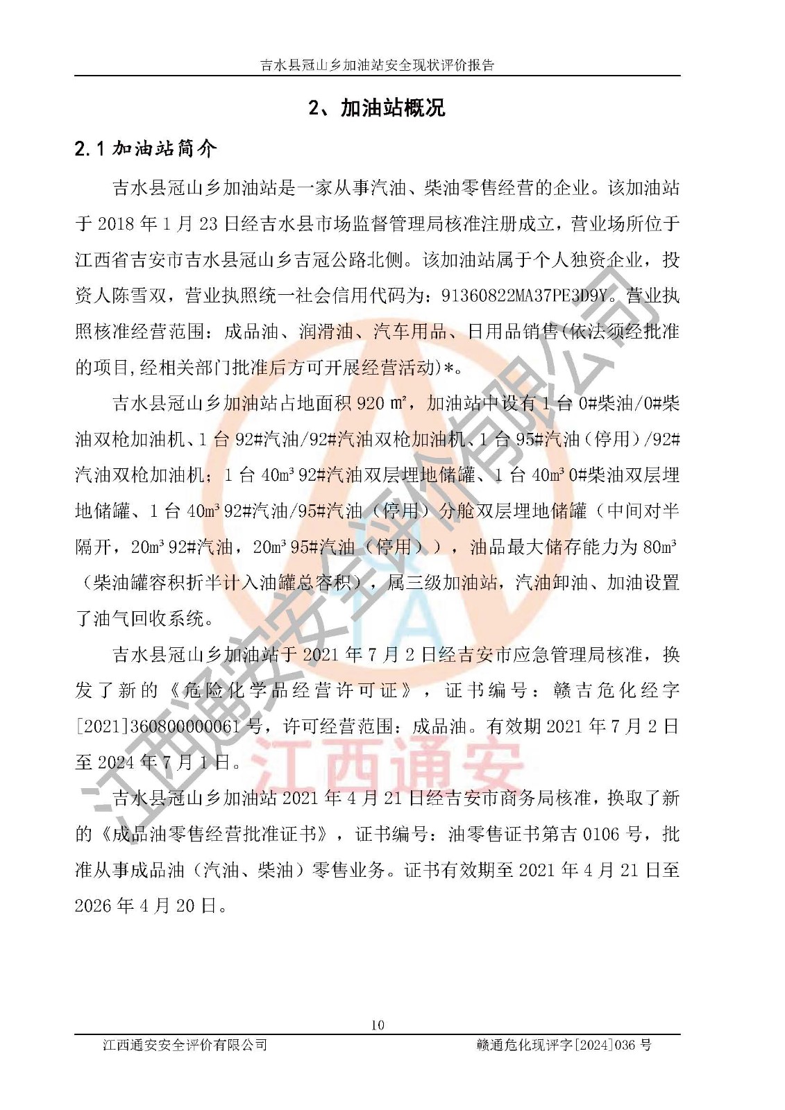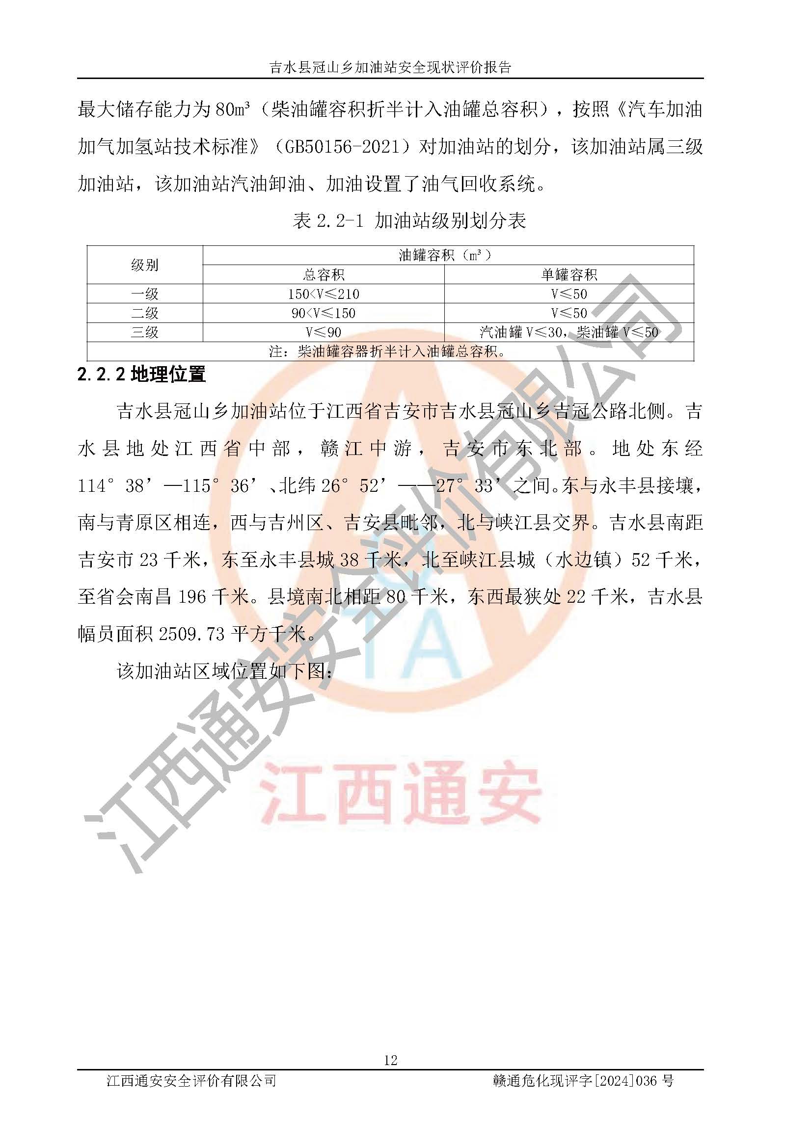 吉水县冠山乡加油站安全现状评价报告