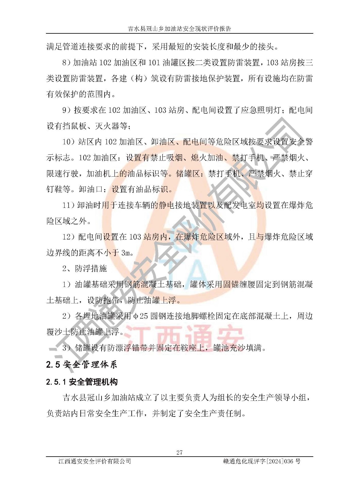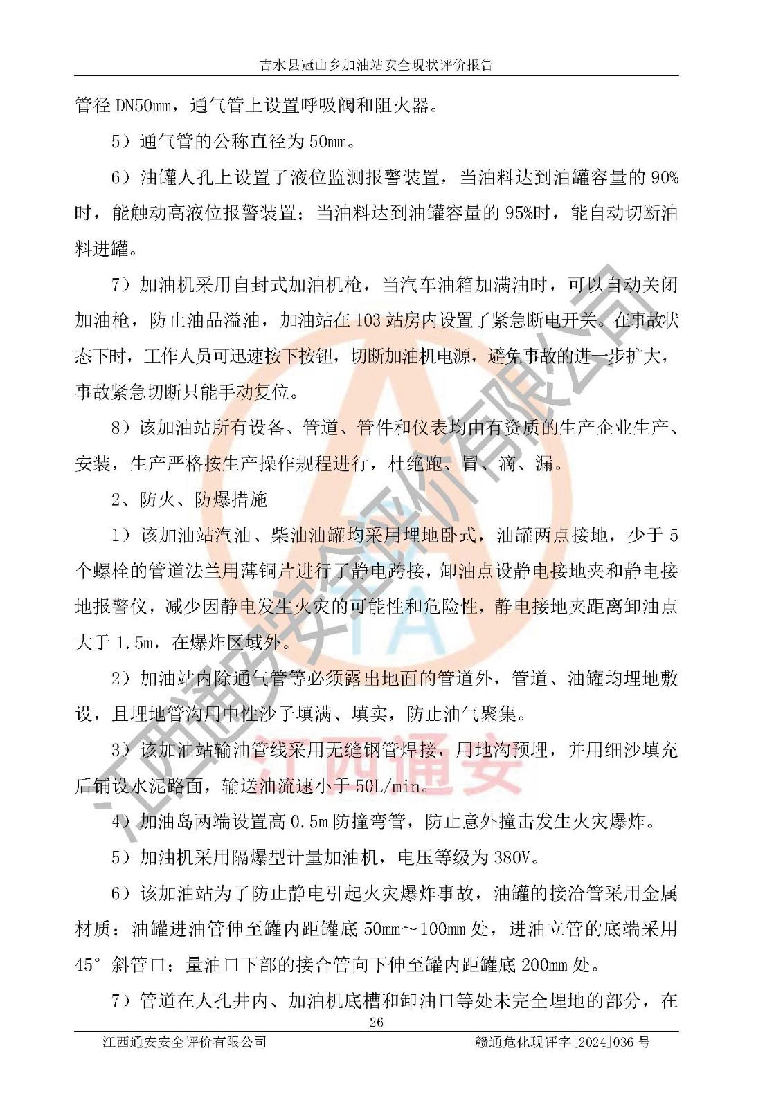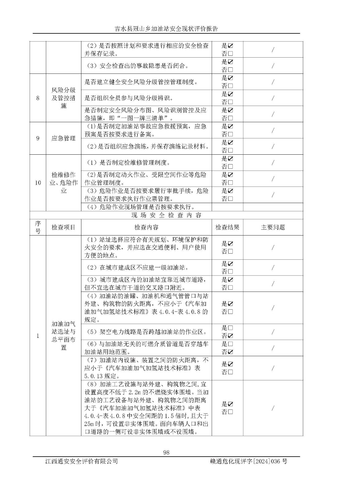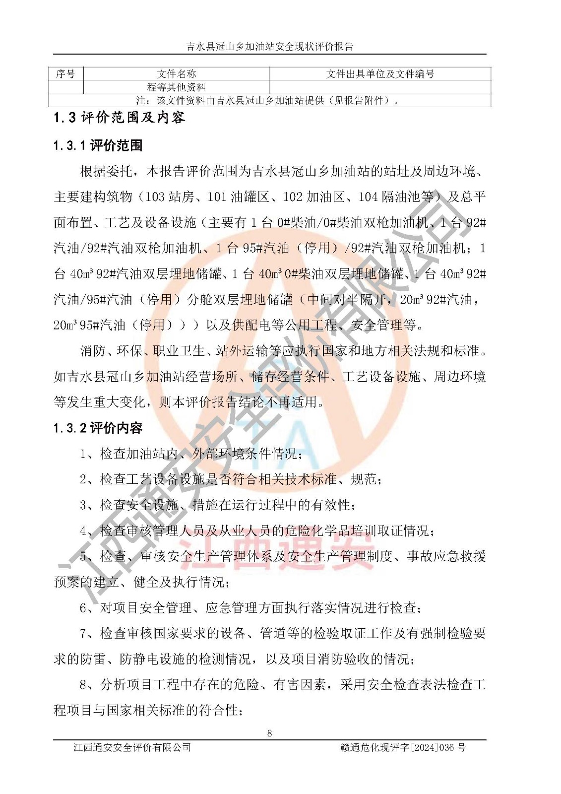 吉水县冠山乡加油站安全现状评价报告