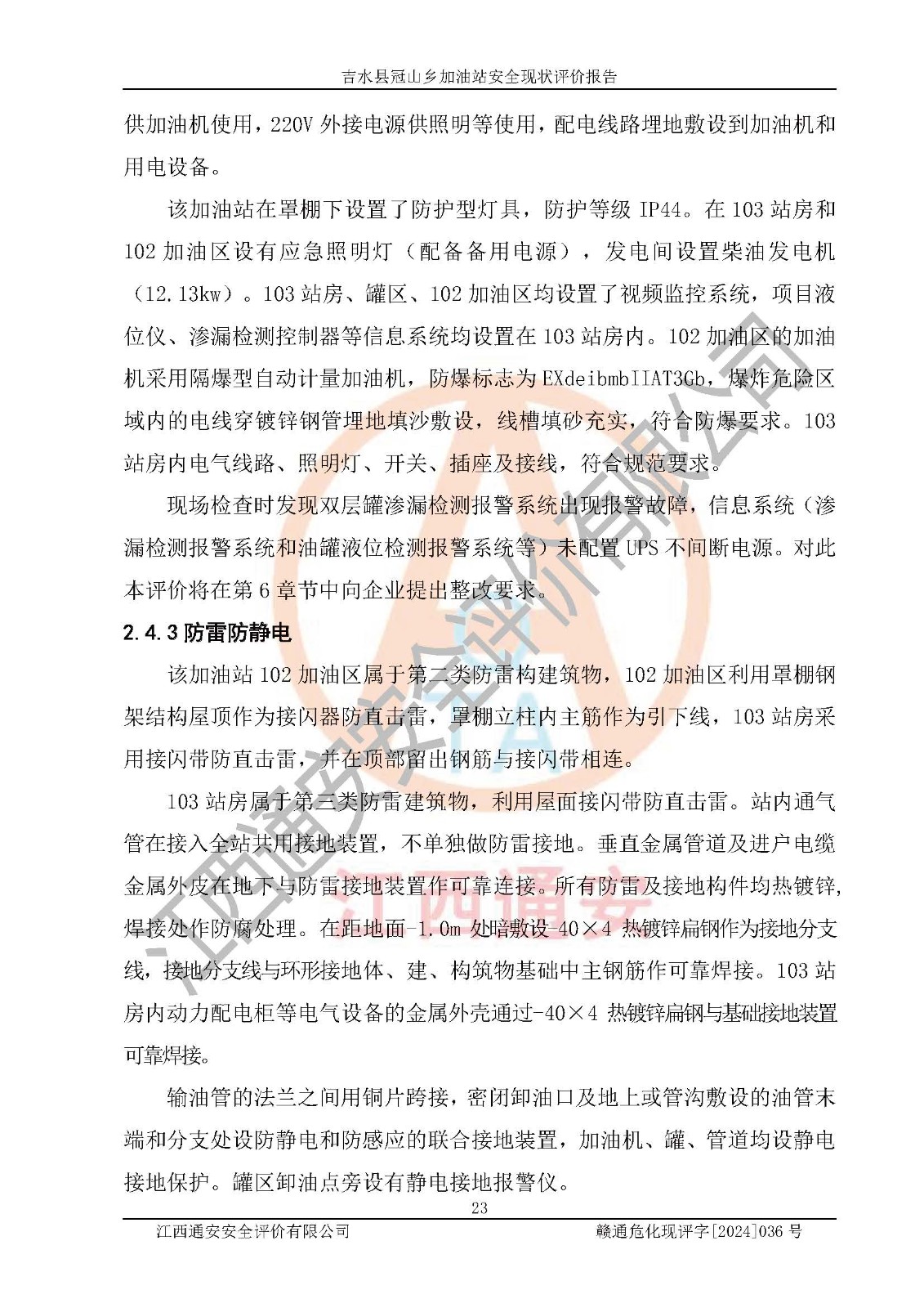 3、该项目无**明令淘汰的工艺,设备、设施与工艺条件、内部介质相适应,特种设备及设施较齐全,按规定设置防雷、防静电接地,爆炸危险环境加油机按要求采用防爆型,符合相关标准规范要求。