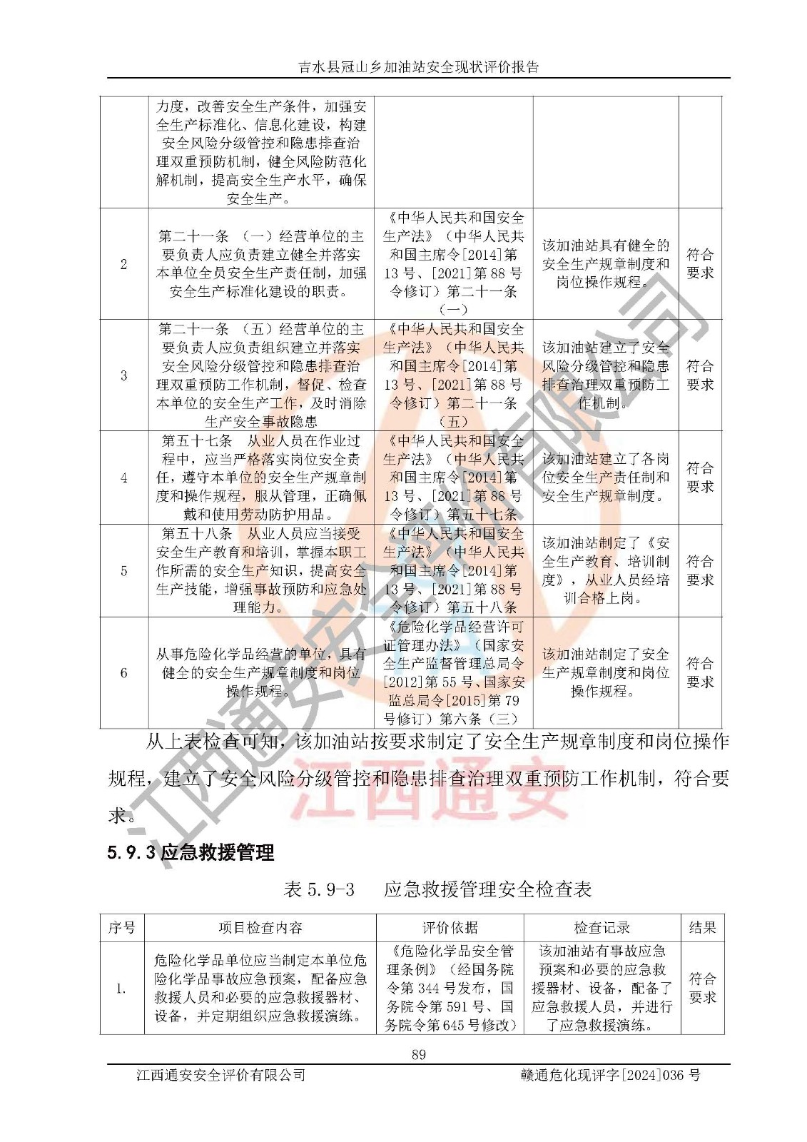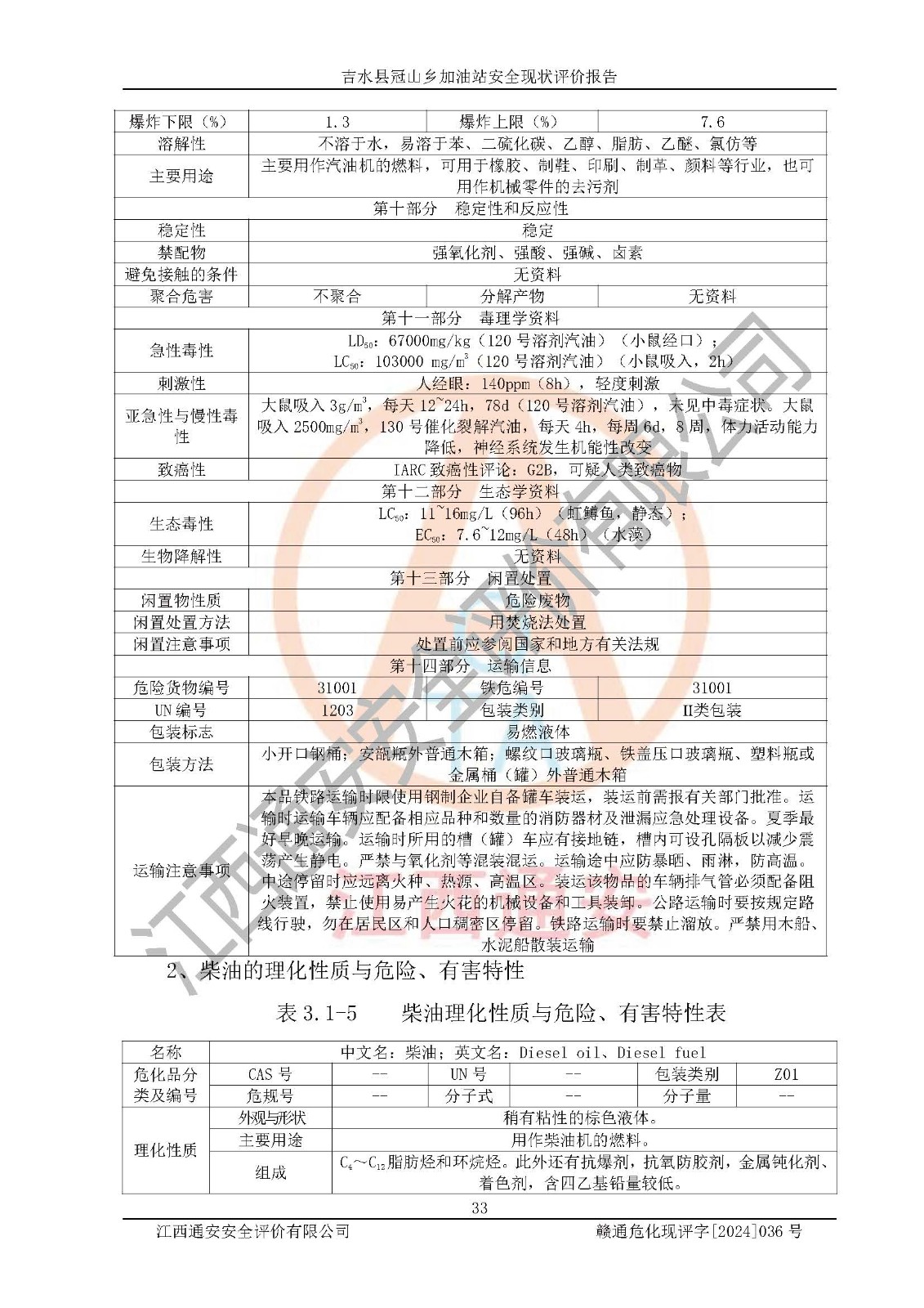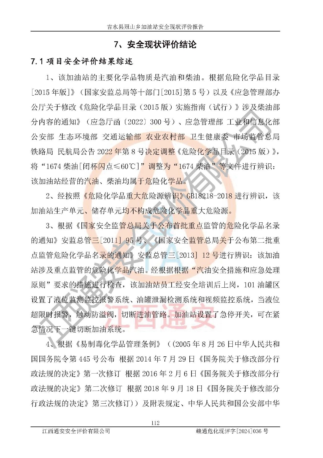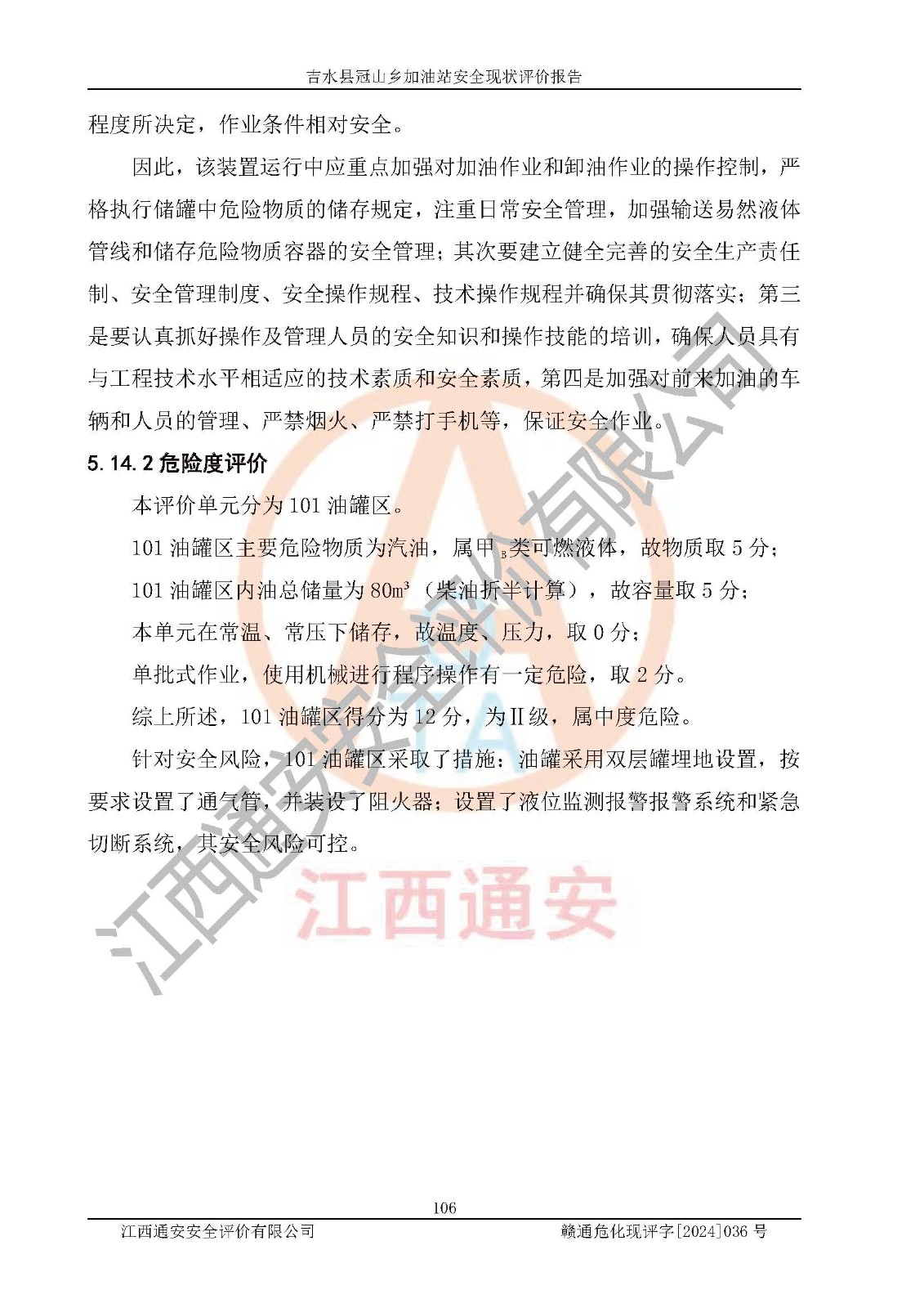 报告编号:赣通危化现评字[2024]036号