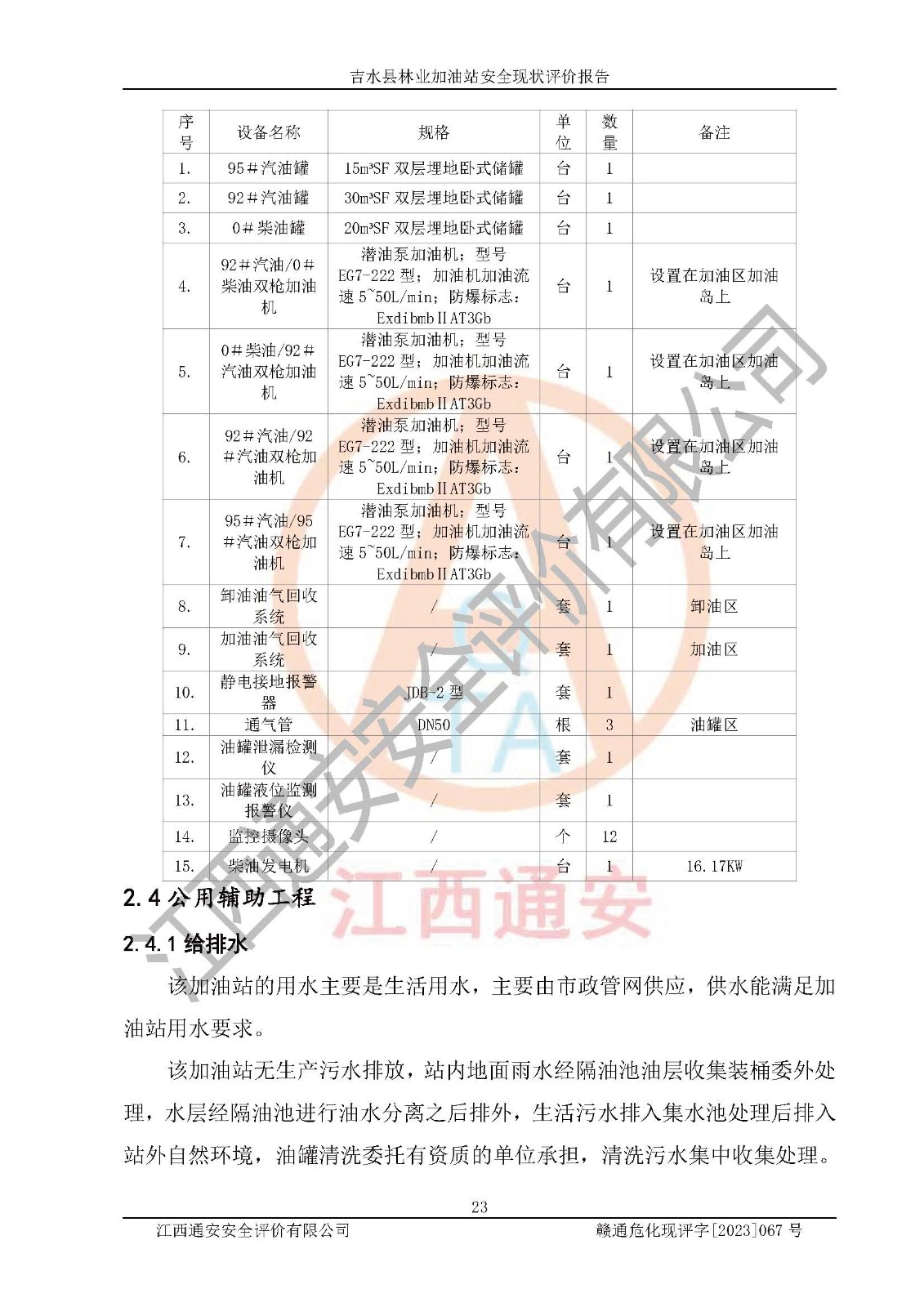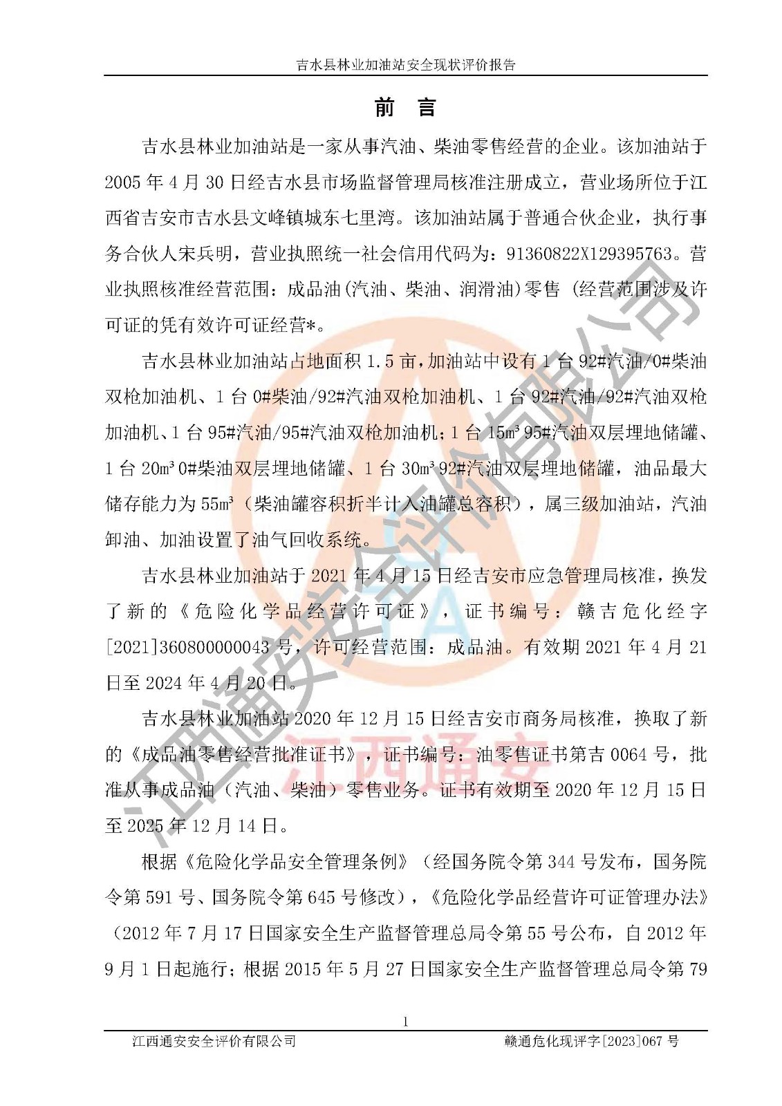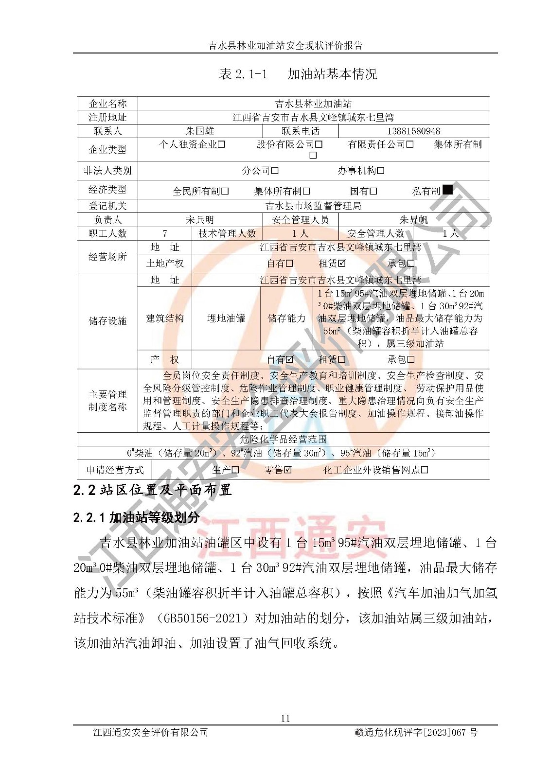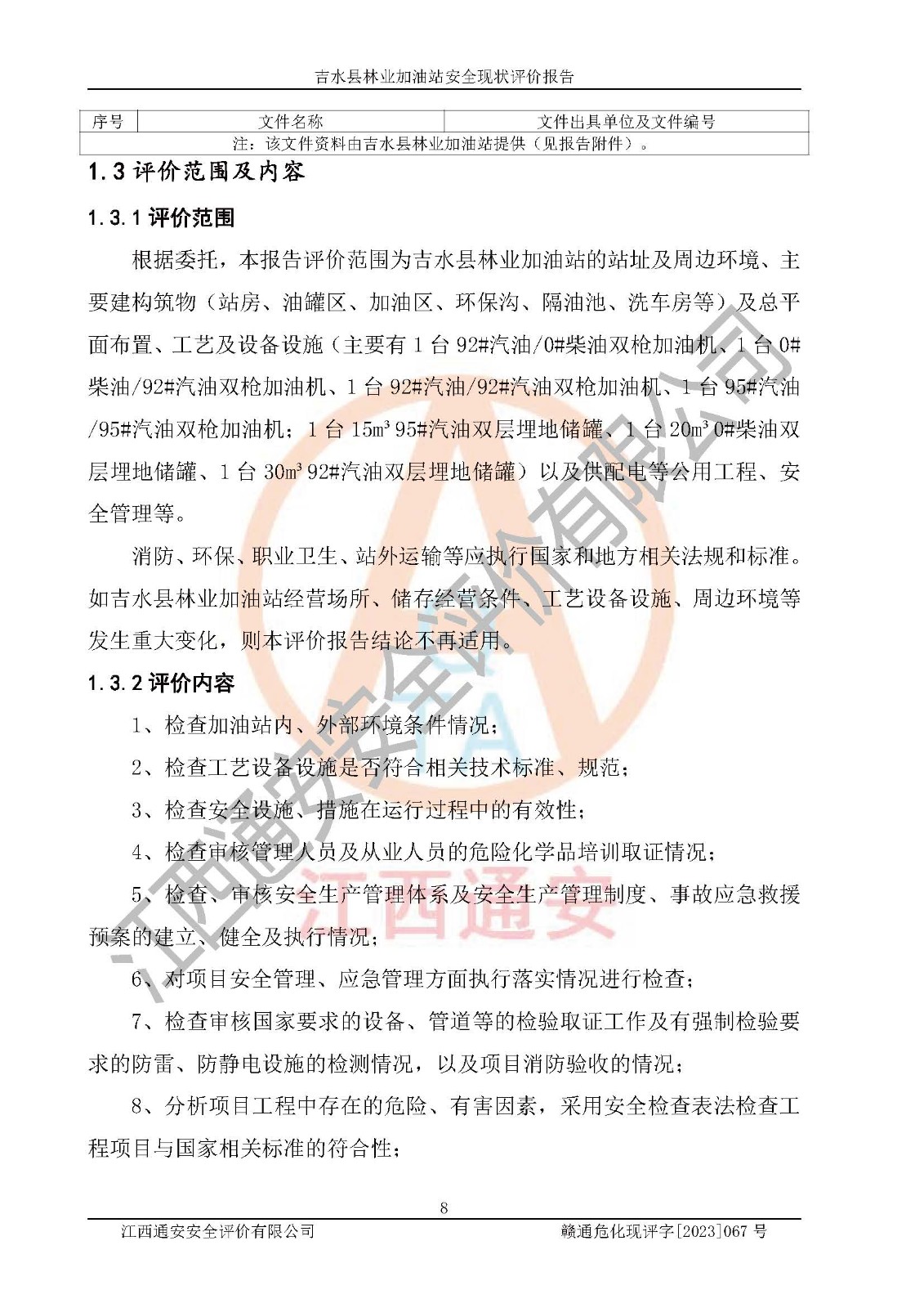 项目名称 | 吉水县林业加油站安全现状评价报告 | ||||