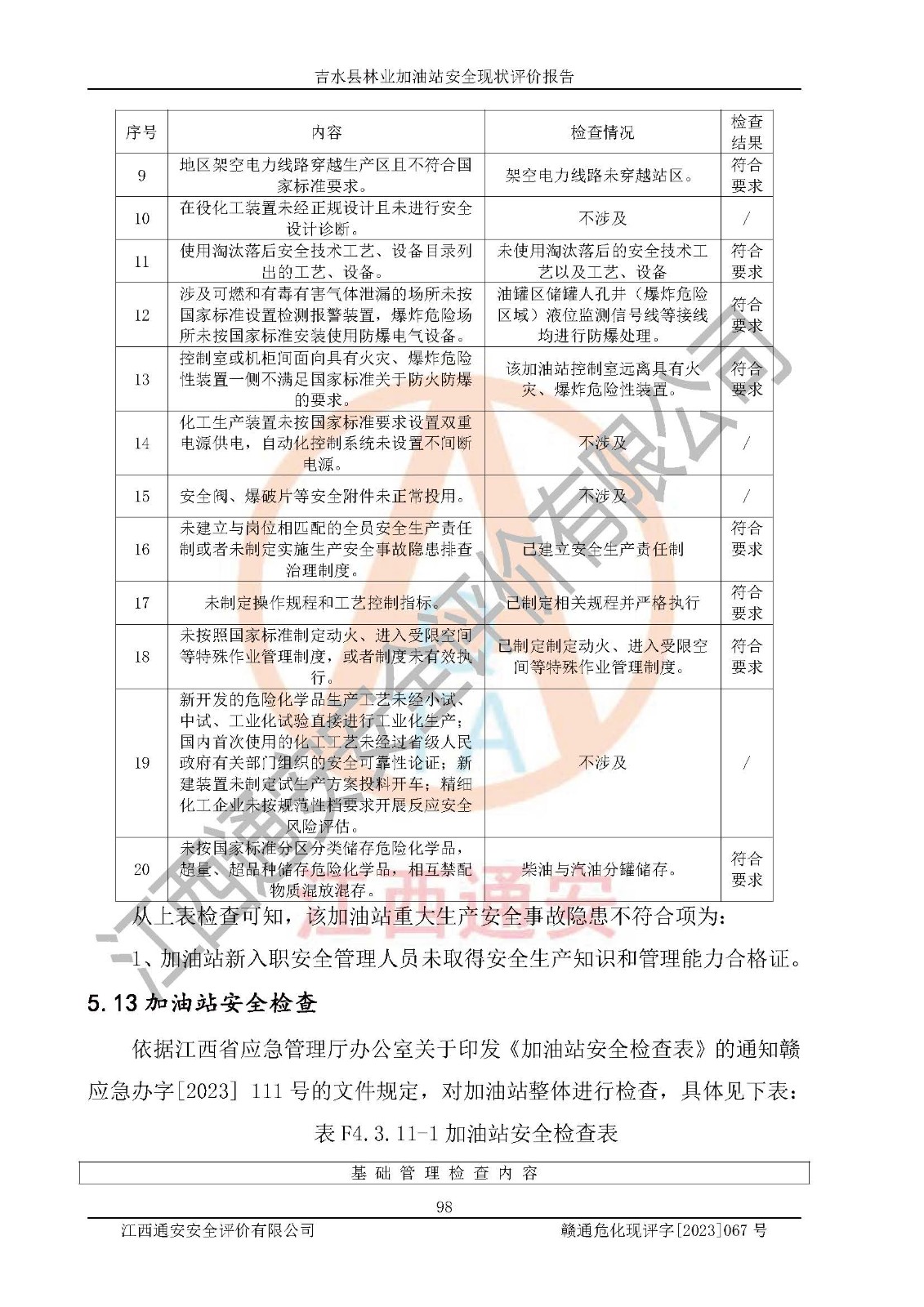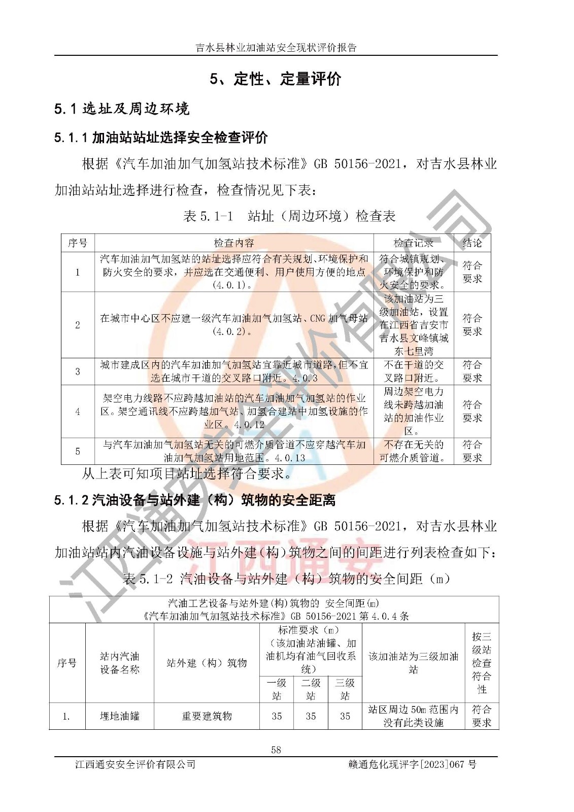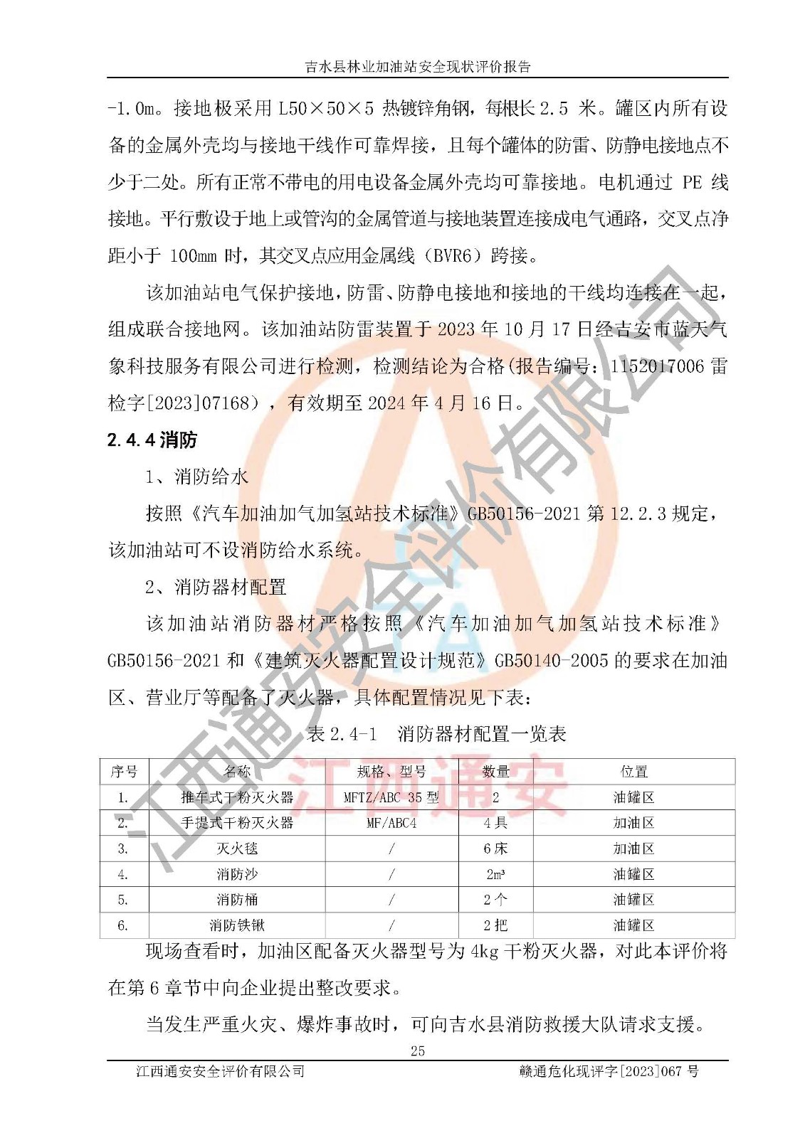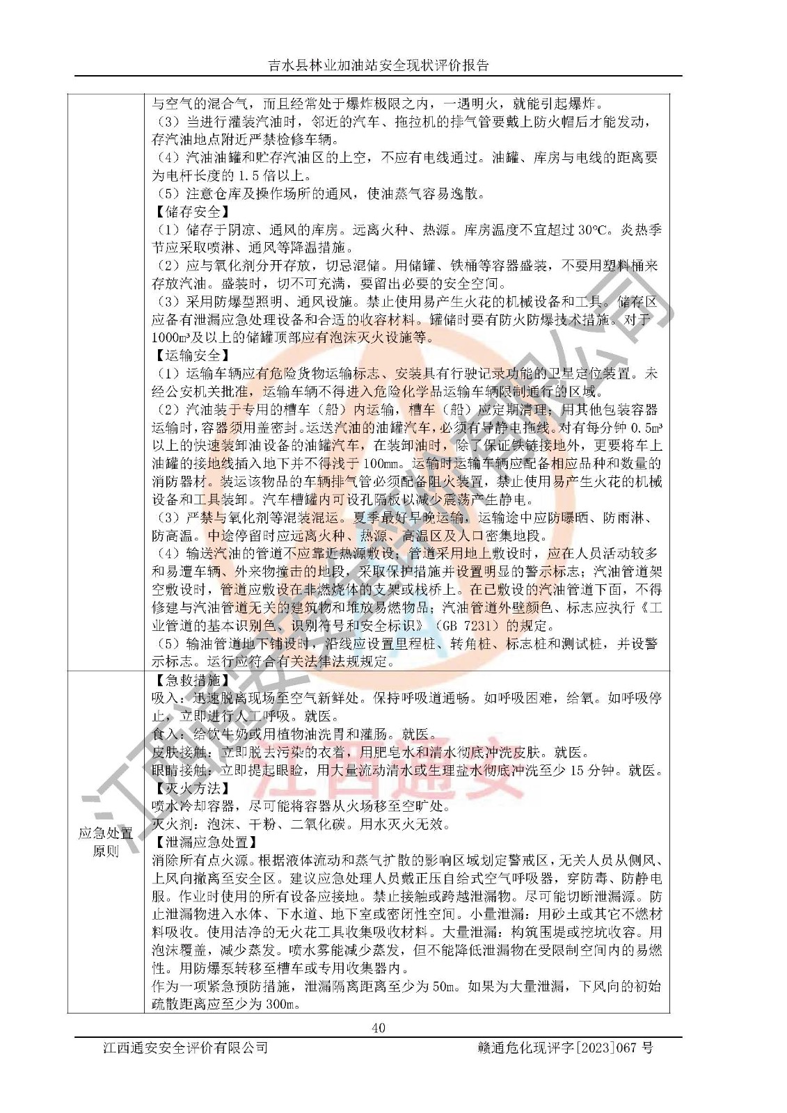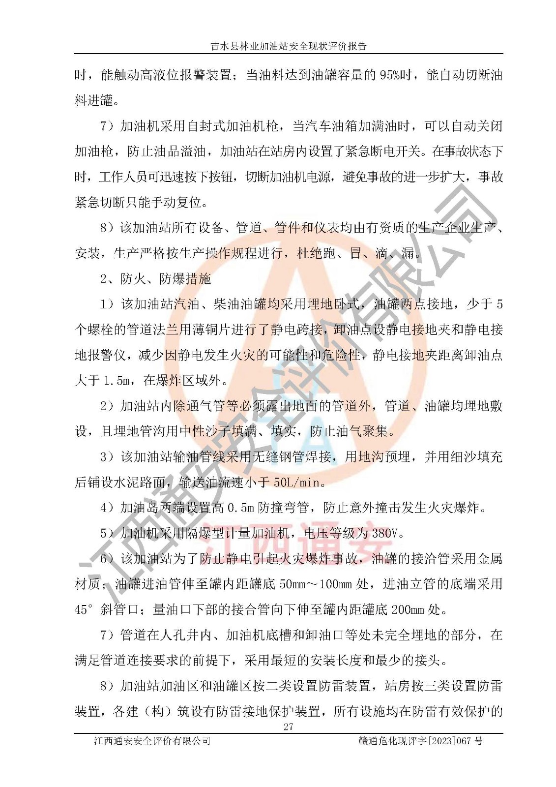 项目名称 | 吉水县林业加油站安全现状评价报告 | ||||