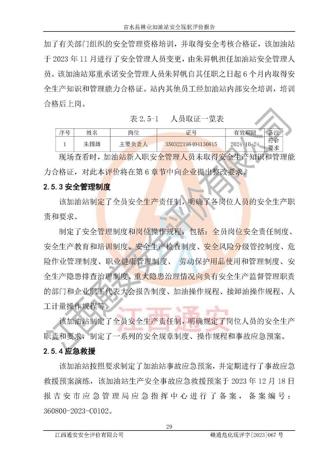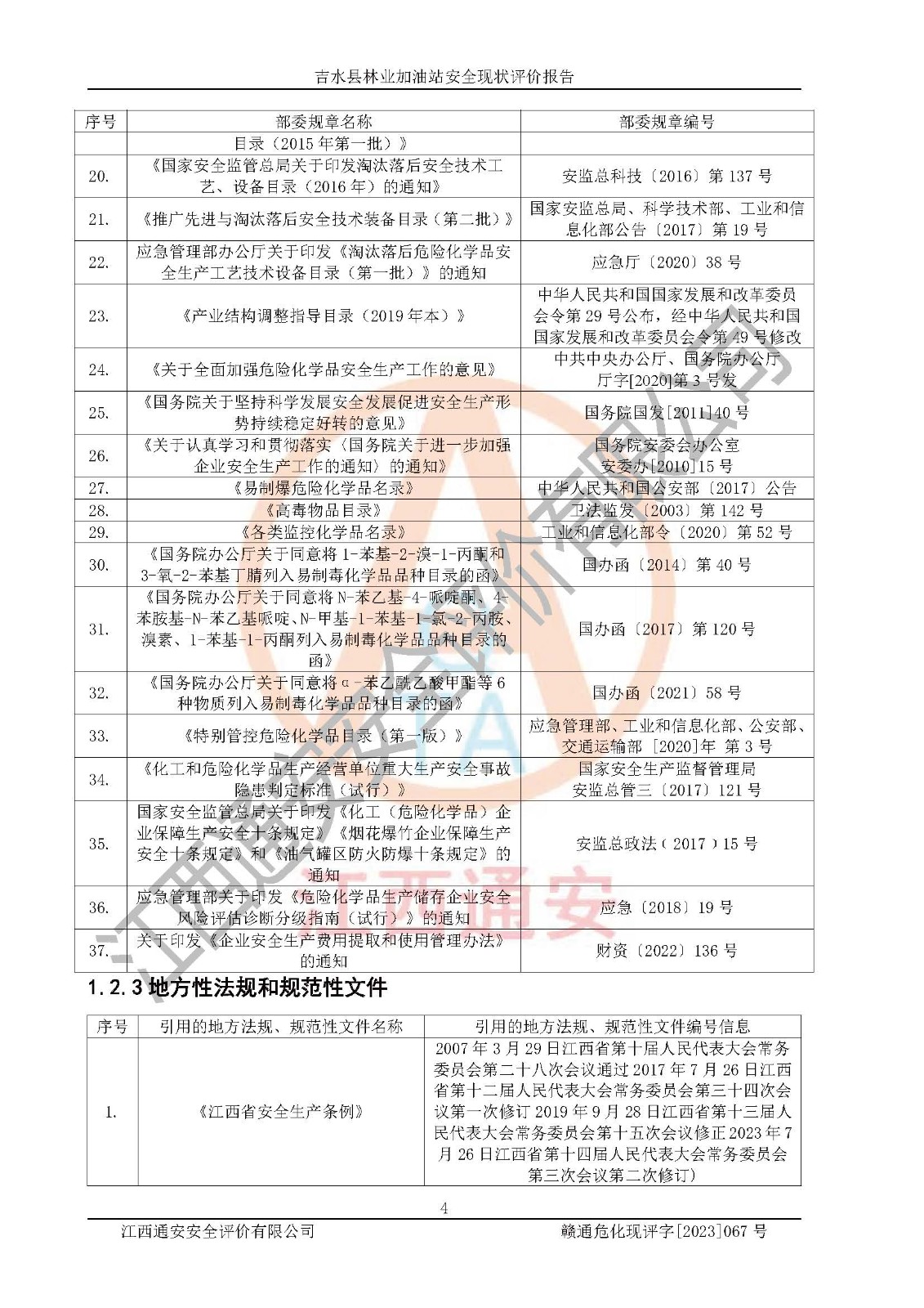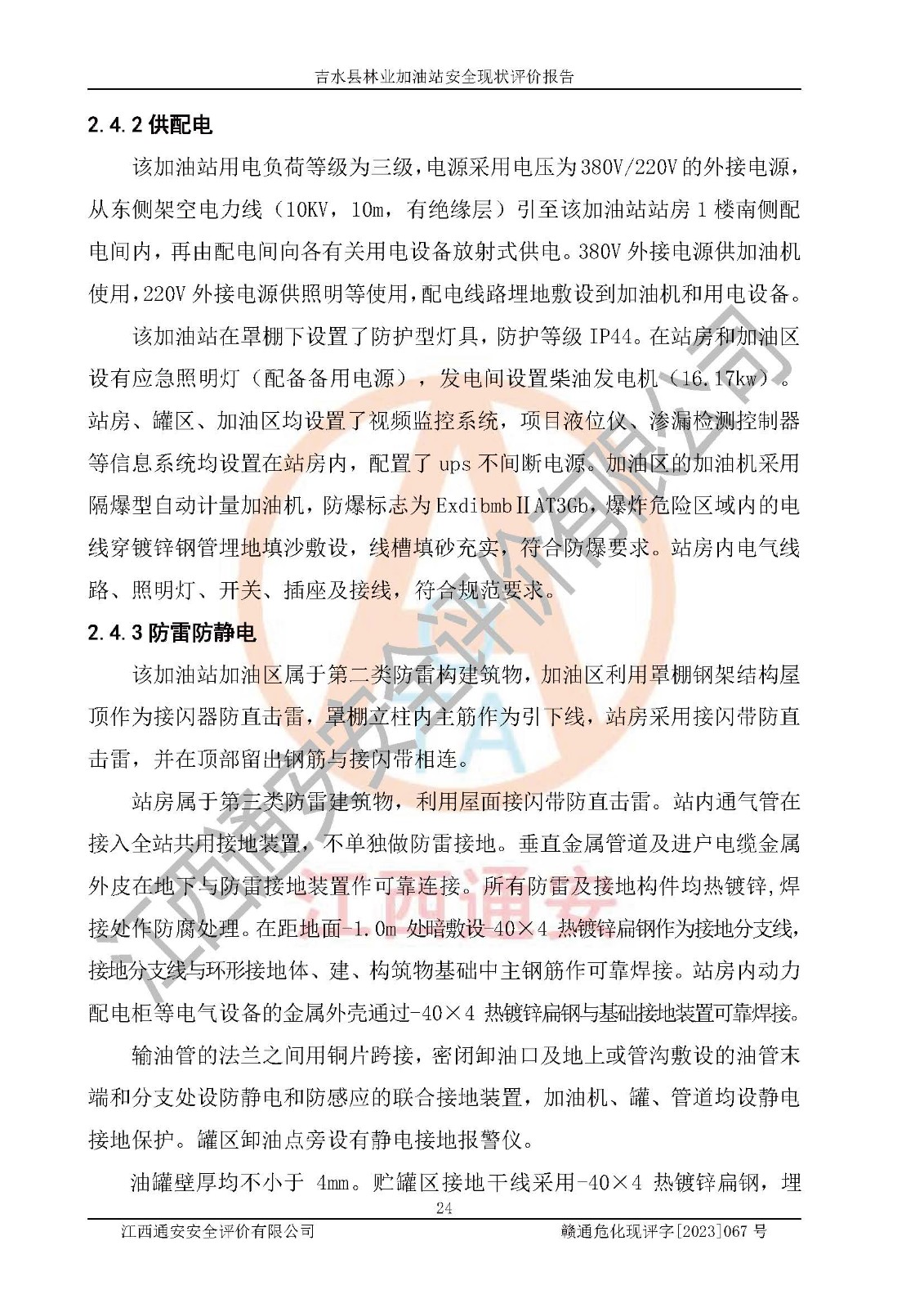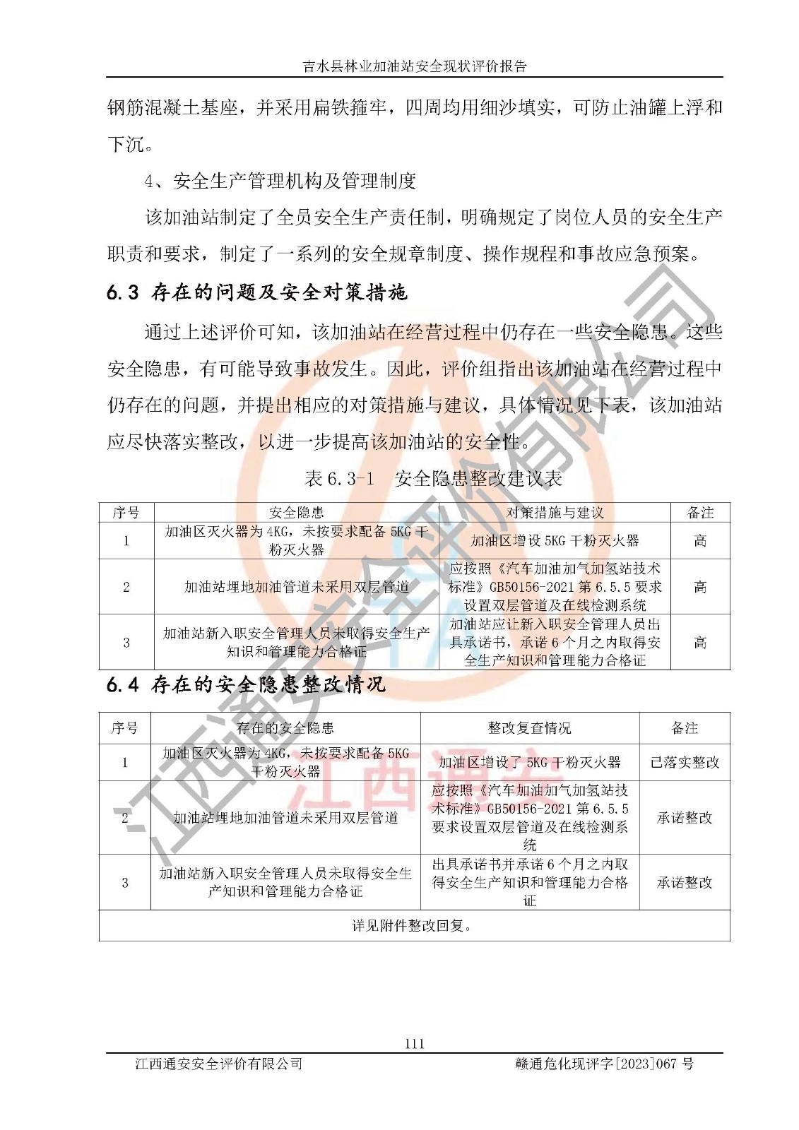 项目名称 | 吉水县林业加油站安全现状评价报告 | ||||