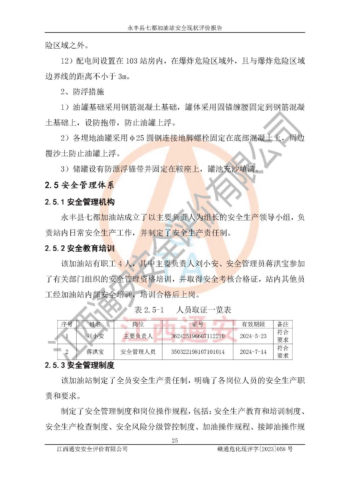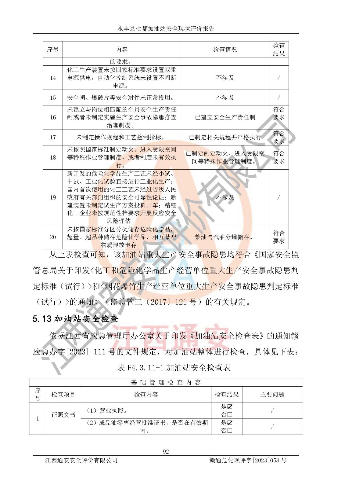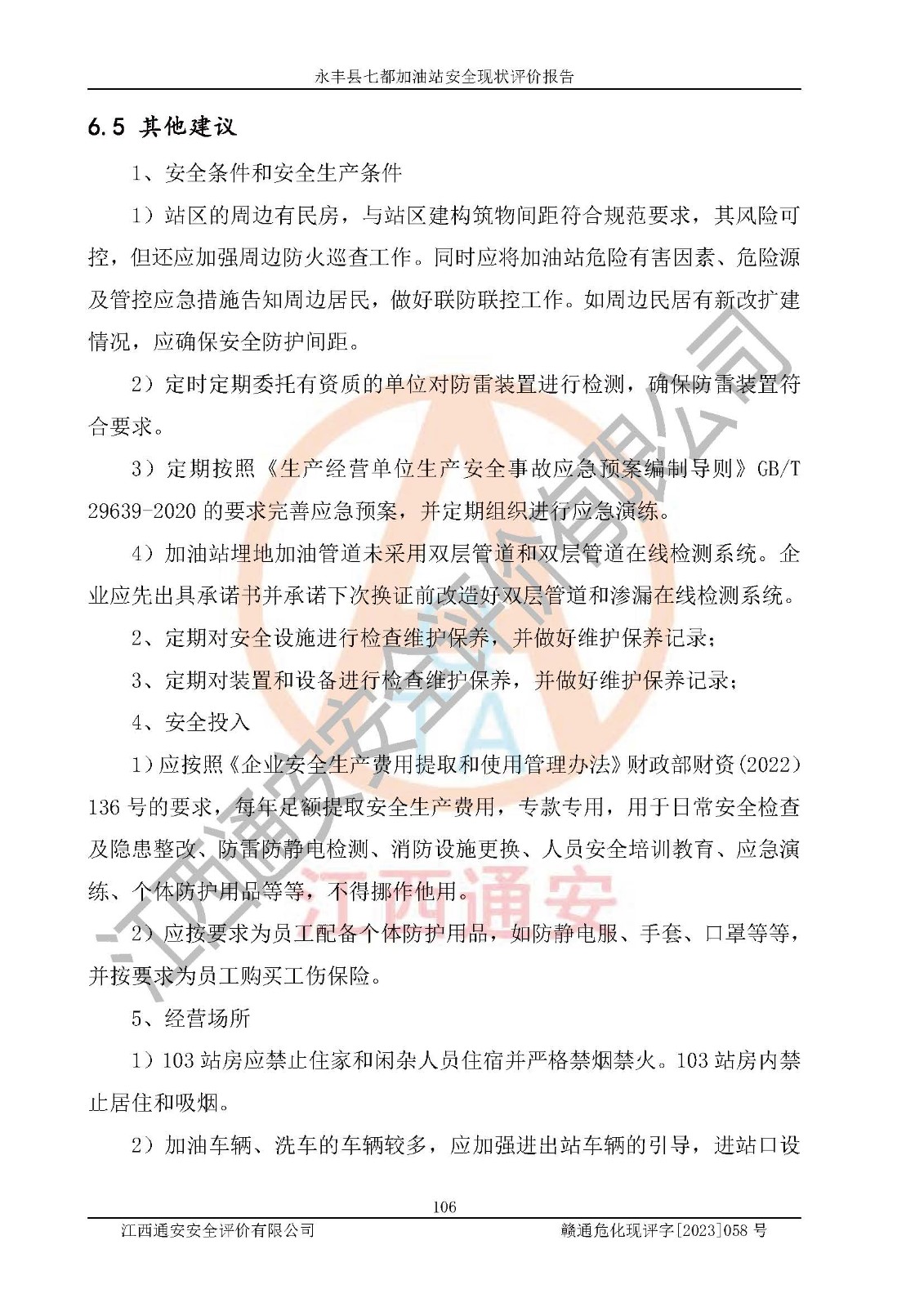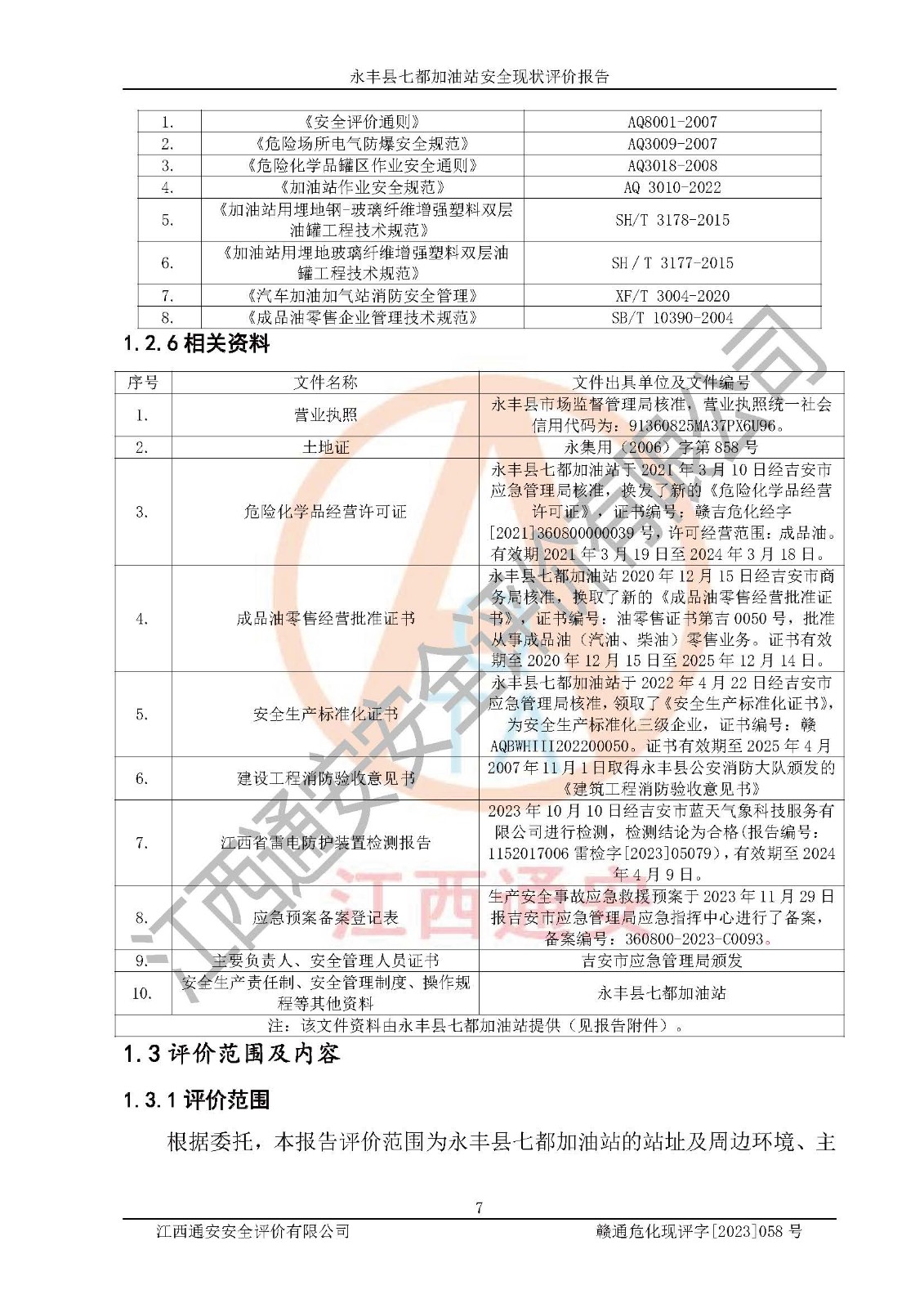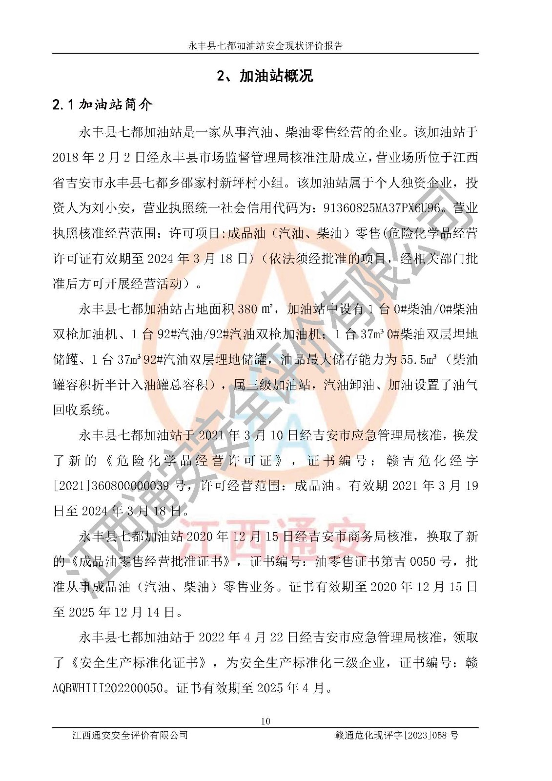 永丰县七都加油站安全现状评价报告