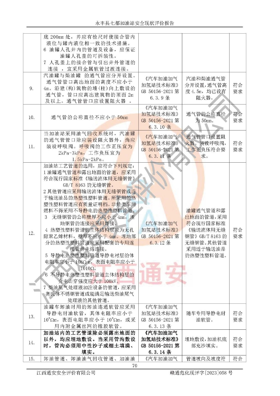 3、该项目无**明令淘汰的工艺,设备、设施与工艺条件、内部介质相适应,特种设备及设施较齐全,按规定设置防雷、防静电接地,爆炸危险环境加油机按要求采用防爆型,符合相关标准规范要求。