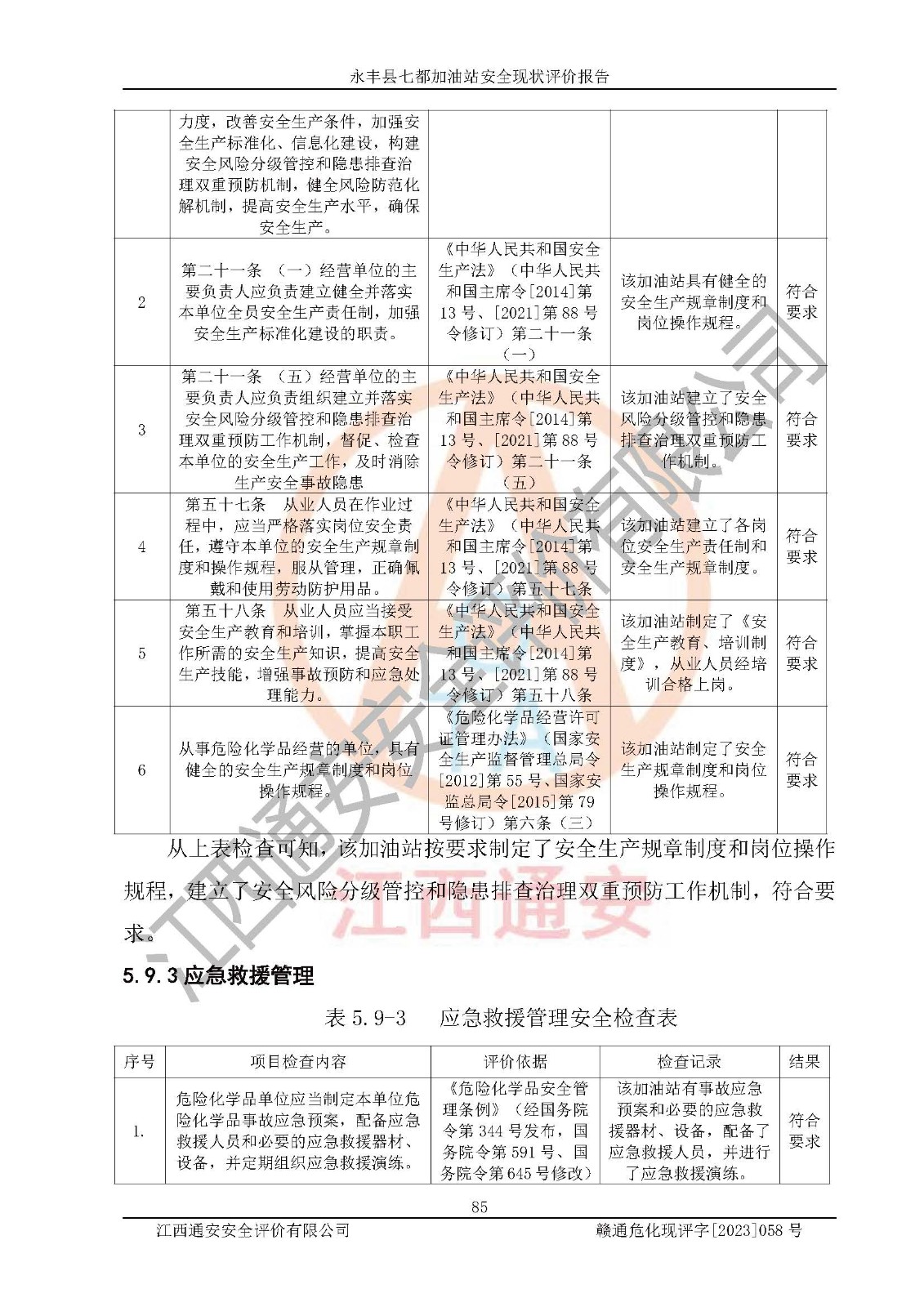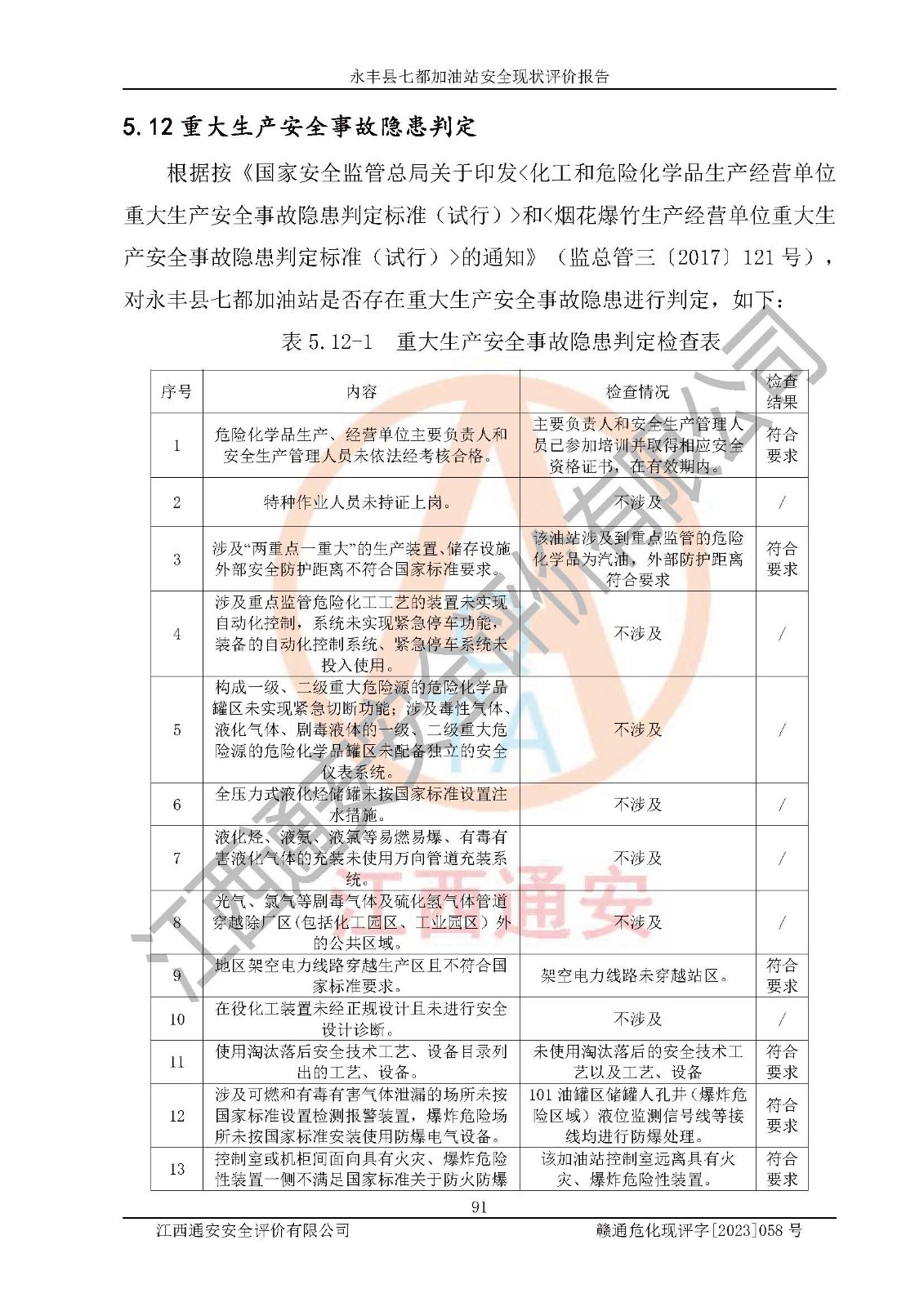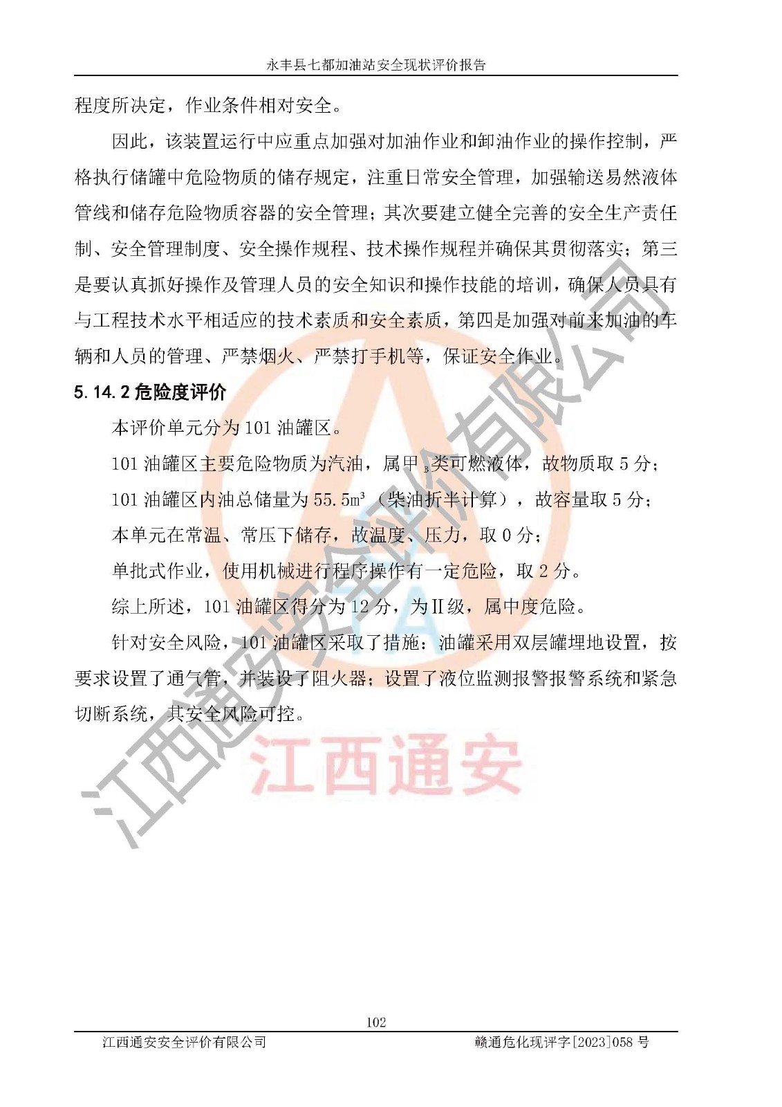 报告编号:赣通危化现评字[2023]058号