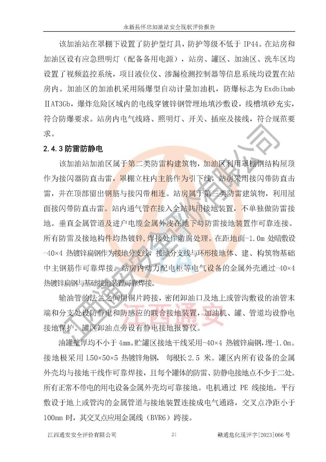 评价报告名称 | 永新县怀忠加油站 安全现状评价报告 | |||