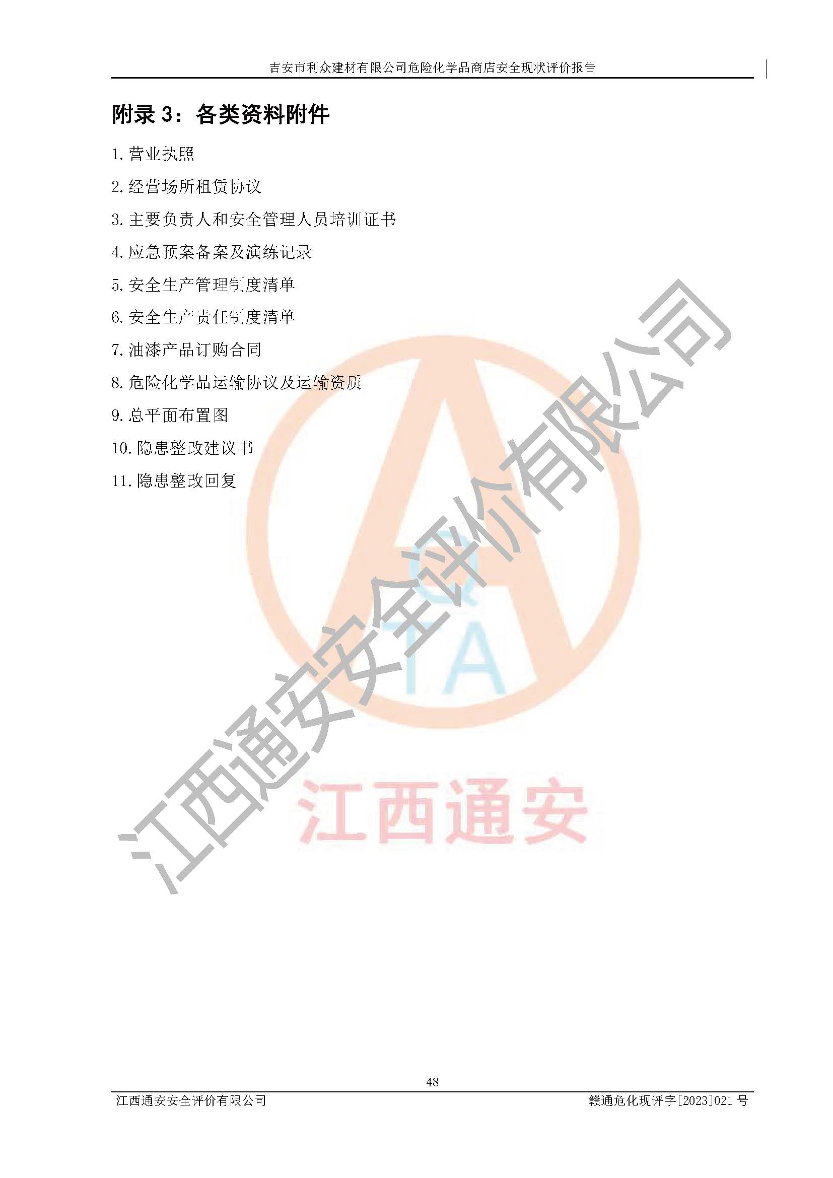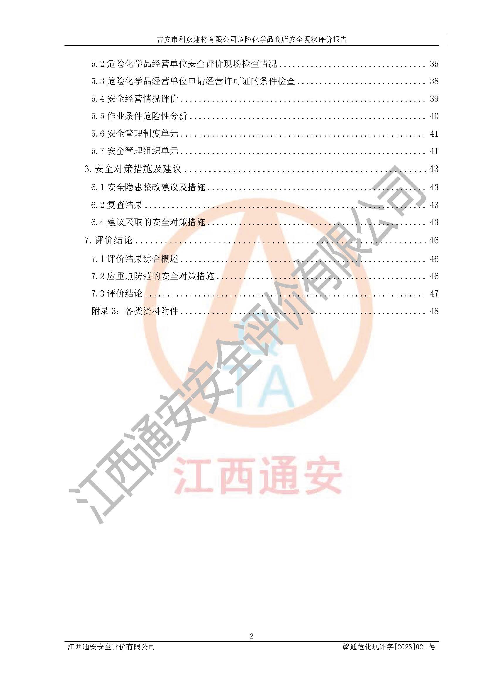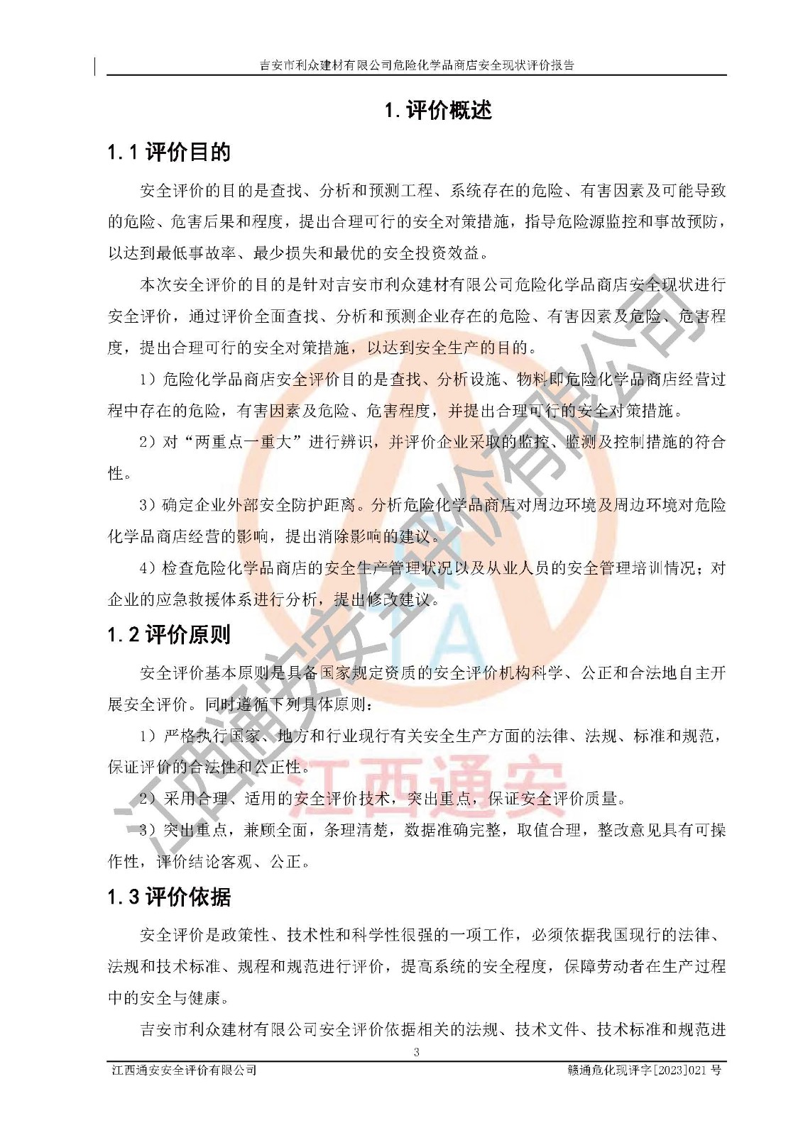 评价报告名称 | 吉安市利众建材有限公司危险化学品商店安全现状评价报告 | |||