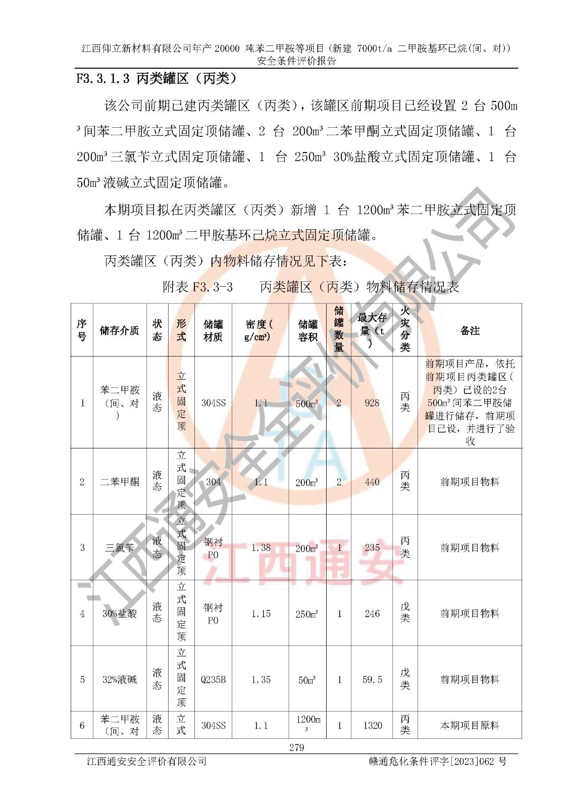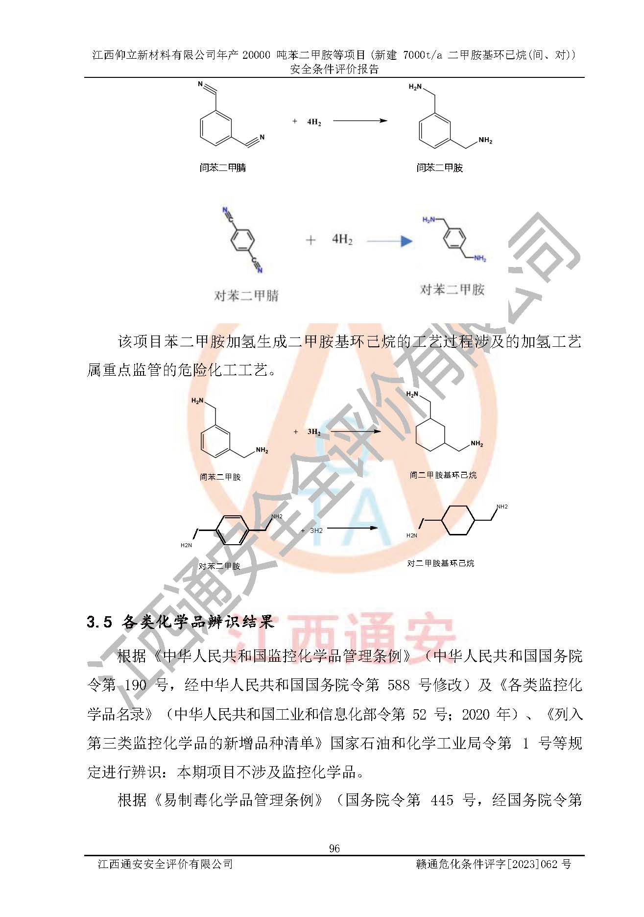 评价报告名称 | 江西仰立新材料有限公司年产20000 吨苯二甲胺等项目(新建 7000t/a 二甲胺基环已烷(间、对))安全条件评价报告 | |||