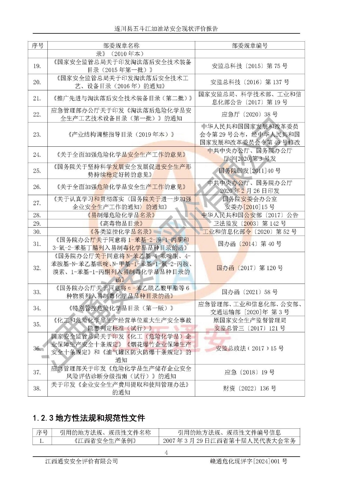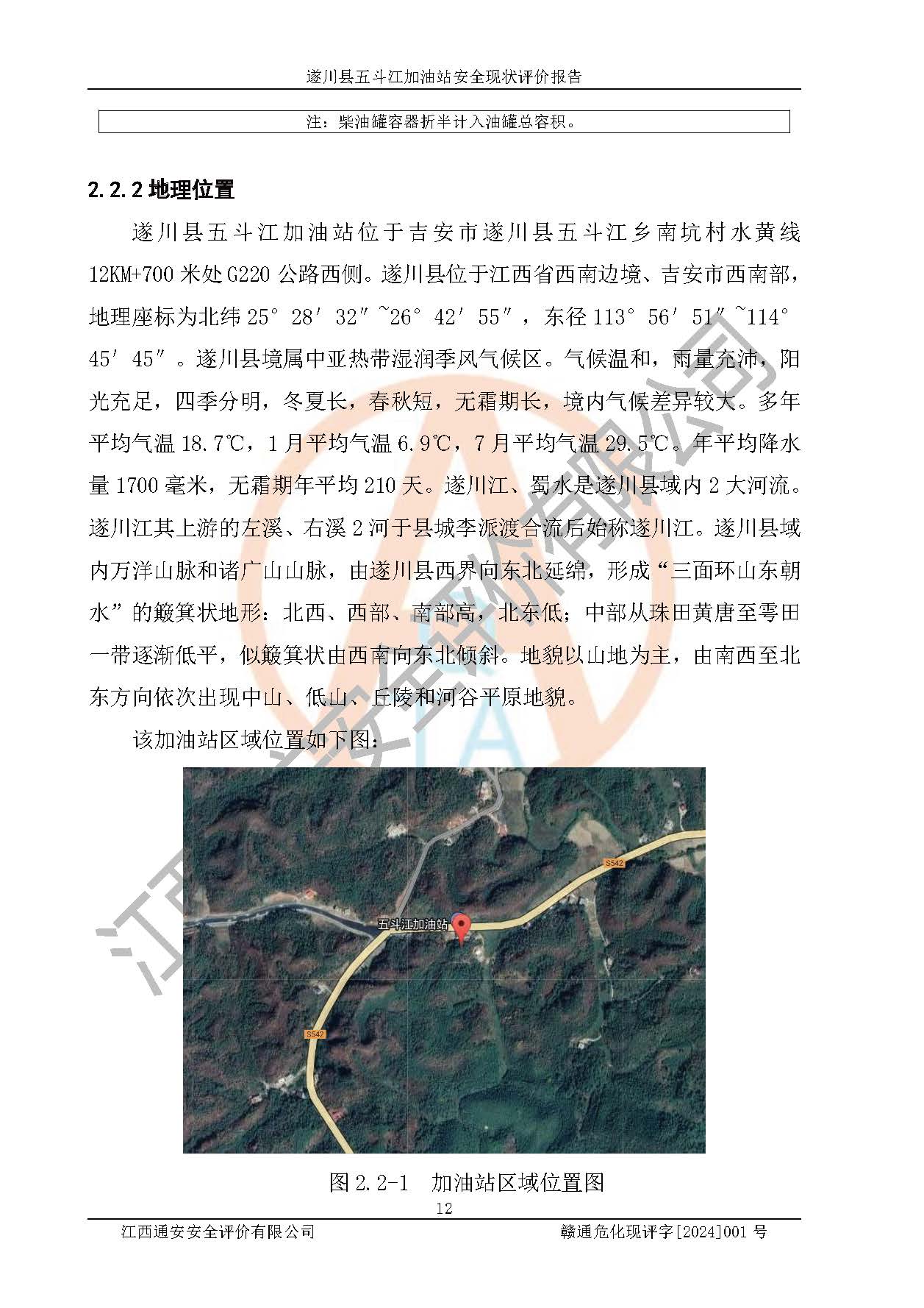评价报告名称 | 遂川县五斗江加油站在役生产装置安全现状评价报告 | |||