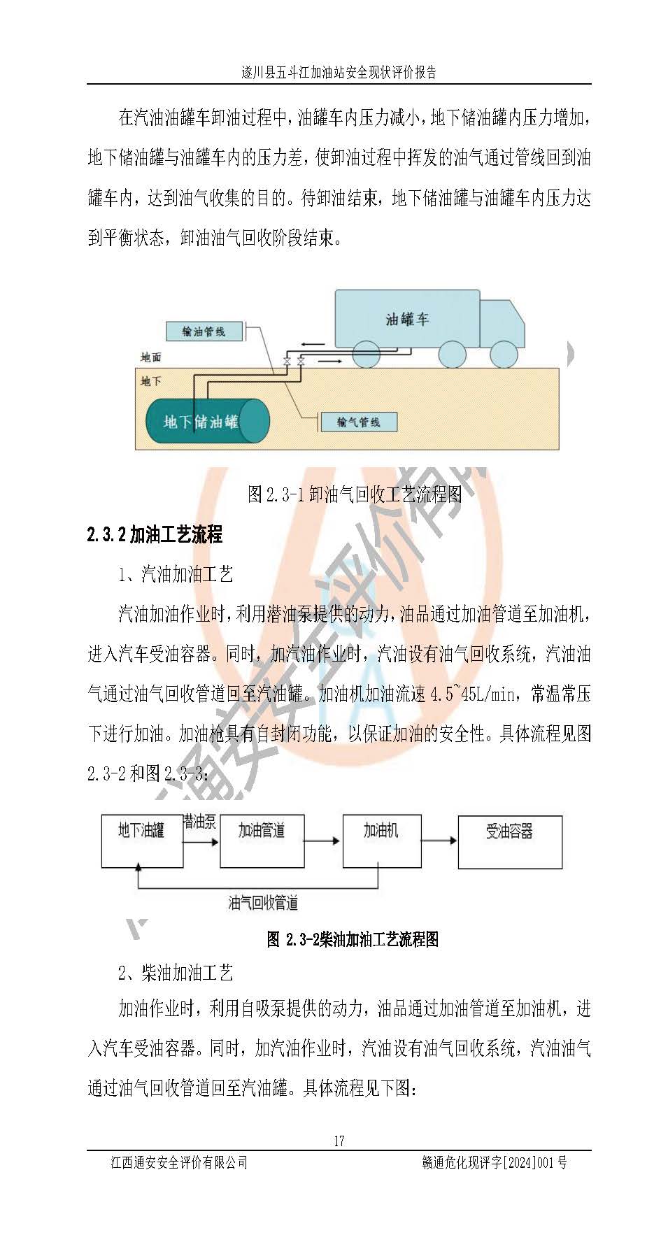 项目简介 | 遂川县五斗江加油站是一家从事成品油批发、成品油零售经营的企业。该加油站成立于2012年1月4日,并获得遂川县市场和质量监督管理局颁发的营业执照,营业执照统一社会信用代码为:91360827589209965X,加油站类型为个人独资,投资人为王春民,经营范围:润滑油,成品油零售(依法须批准的项目,经相关部门批准后方可开展经营活动)。经营场所:吉安市遂川县五斗江乡南坑村水黄线12KM+700米处。 遂川县五斗江加油站占地面积1798㎡,加油站中设有3台加油机,分别为:92#双枪加油机1台,95#单枪加油机1台,0#柴油单枪加油机1台;该站设有1个0#柴油的50m³SF双层埋地卧式储罐、1个92#汽油的50m³SF双层埋地卧式汽油罐,1个95#汽油的30m³SF双层埋地卧式汽油罐,油品折算总容量为105m³(柴油罐容积折半计入油罐总容积),属二级加油站,汽油卸油、加油设置了油气回收系统。 遂川县五斗江加油站于2021年5月31日经吉安市应急管理局核准,换发了新的《危险化学品经营许可证》,证书编号:赣吉危化经字[2021]360800000045号;许可经营范围:成品油;经营方式:零售。**期2024年5月30日。 遂川县五斗江加油站2020年11月16日经吉安市商务局核准,换取了新的《成品油零售经营批准证书》,证书编号:油零售证书第吉0012号,批准从事成品油(汽油、柴油)零售业务。证书**期至2025年11月15日。 根据《特别管控危险化学品目录(**版)》(应急管理部、工业和信息化部、公安部、交通运输部公告(2020年 第3号))进行辨识:该加油站经营的汽油属于特别管控危险化学品。 根据《**安全监管总局关于公布首批重点监管的危险化工工艺目录的通知》(安监总管三[2009] 116号)、《**安全监管总局关于公布第二批重点监管危险化工工艺目录和调整首批重点监管危险化工工艺中部分典型工艺的通知》(安监总管三[2013] 3号)的规定进行辨识:项目不涉及重点监管的危险化工工艺。 遂川县五斗江加油站自2021年5月31日换发危险化学品许可证以来,近三年时间,该加油站周边环境、工艺及设备设施等未发生变化。该加油站制定了较为完善的安全管理规章制度;各项安全生产责任制、管理制度得到了较**的落实,员工按照操作规程进行安全作业,设备设施等运行状况良好,未发生安全事故。 | |||