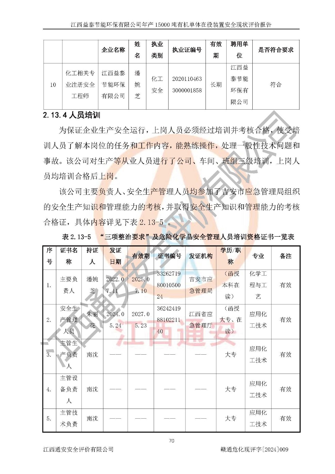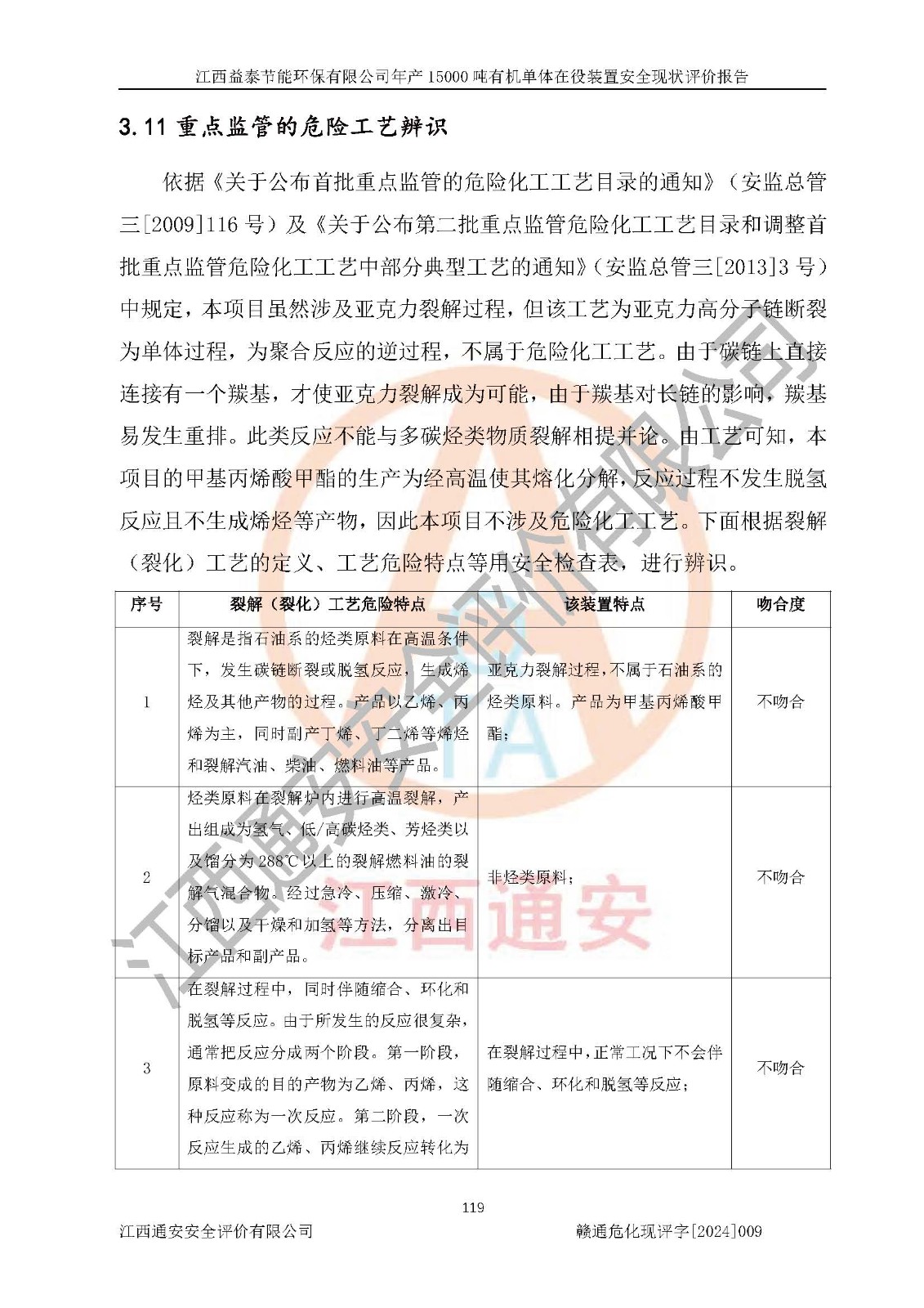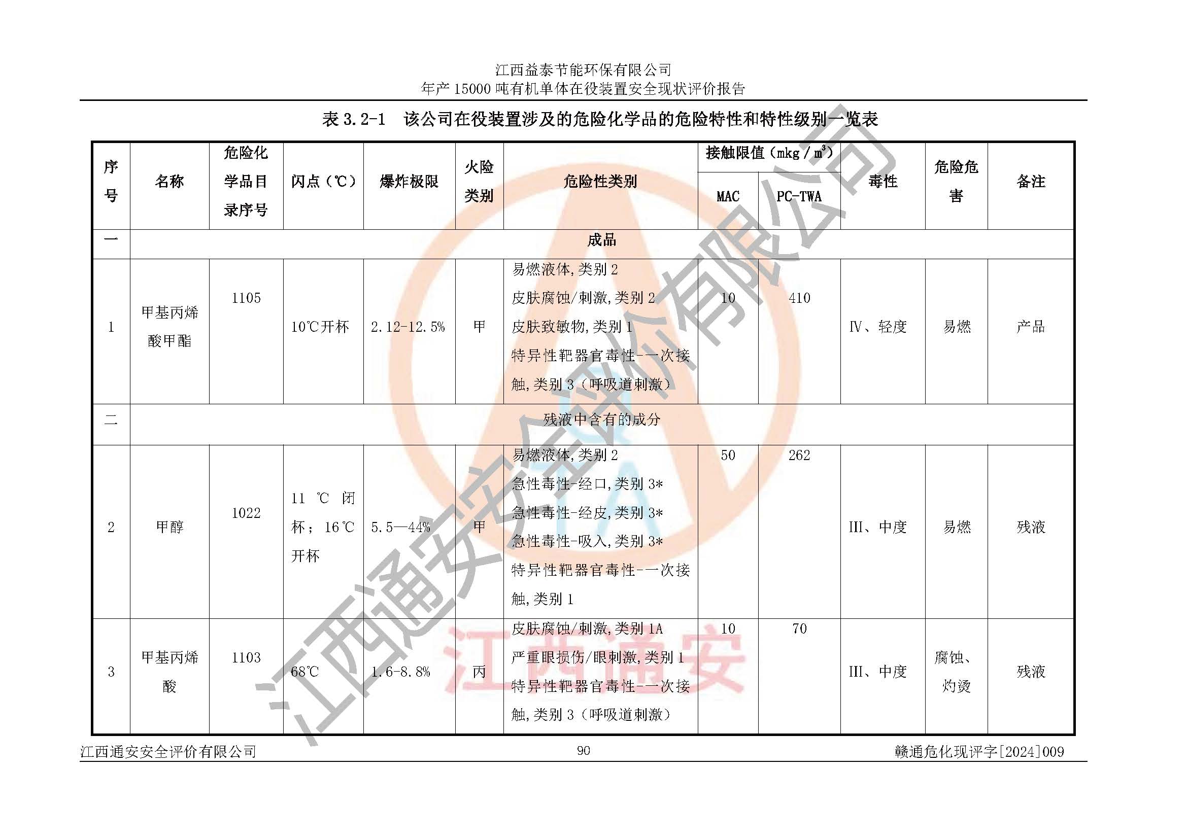评价报告名称 | 江西益泰节能**有限公司年产15000吨有机单体在役装置安全现状评价报告 | |||