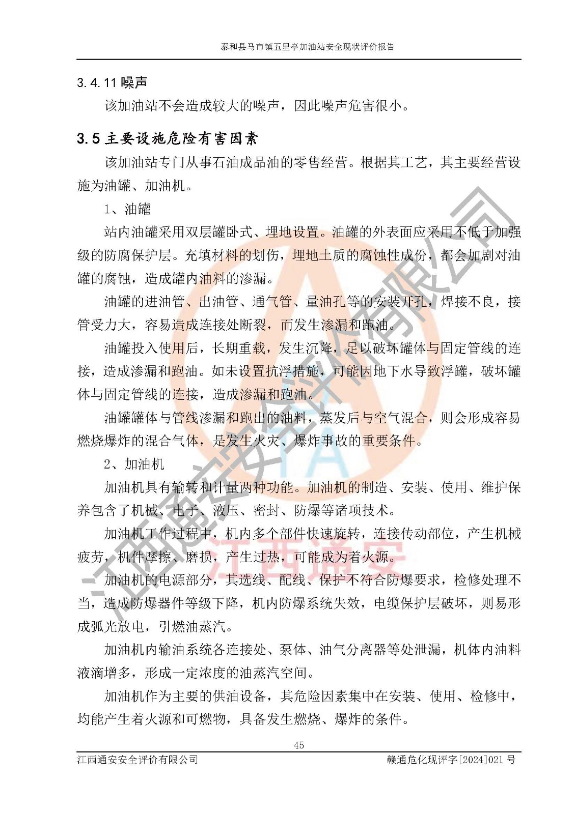 评价报告名称 | 泰和县马市镇五里亭加油站 | |||