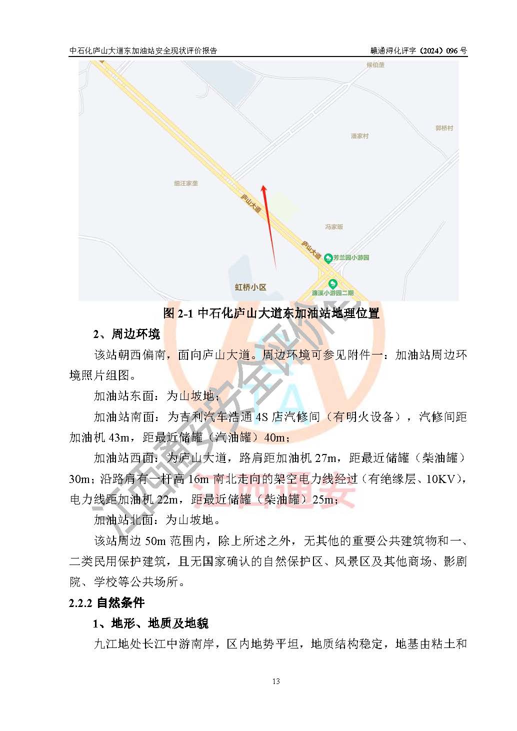 评价报告名称 | 中国石化销售股份有限公司江西九江濂溪石油分公司庐山大道东加油站安全现状评价报告 | |||