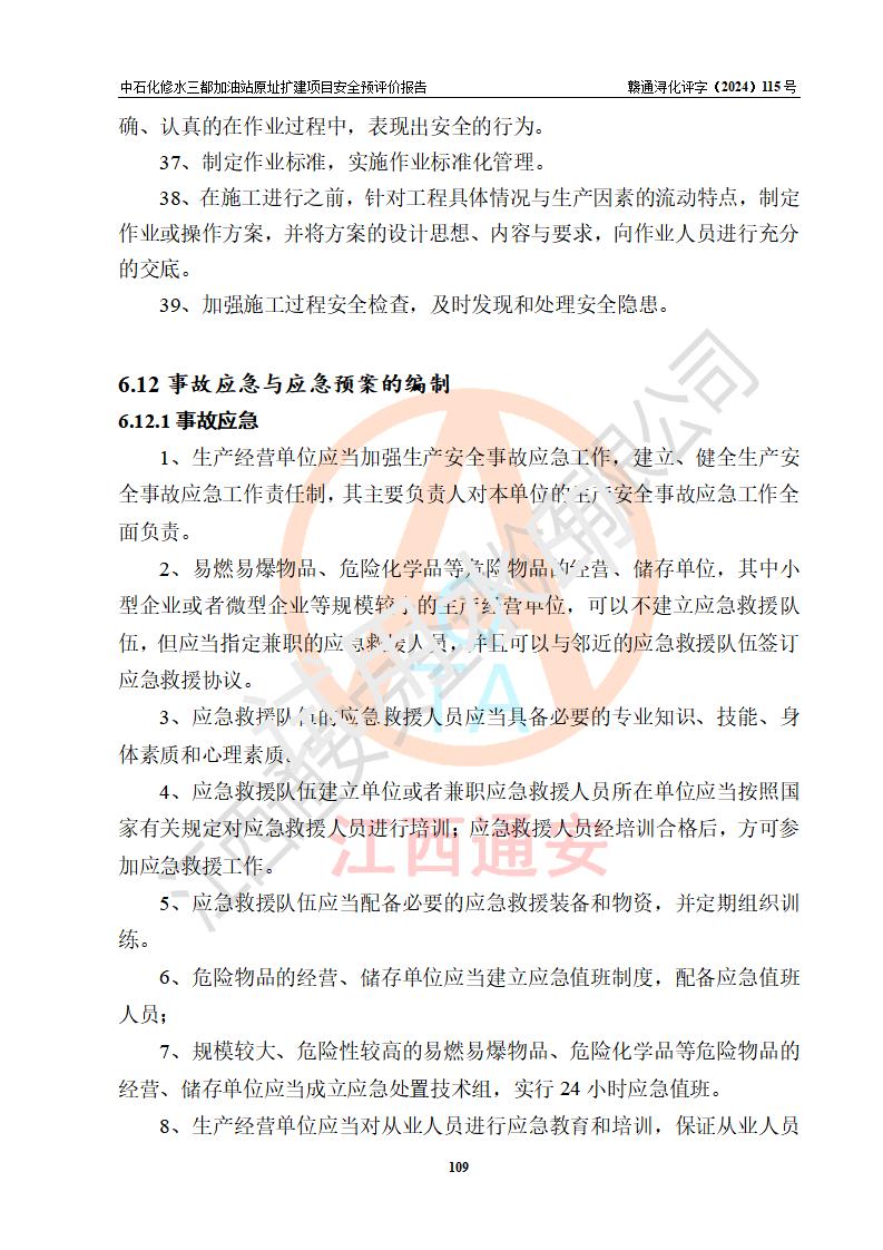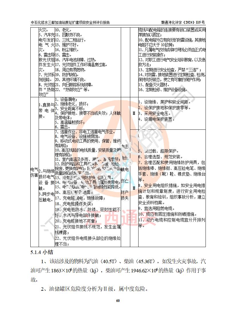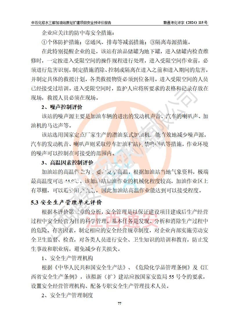 评价结论 | 中国石化销售股份有限公司江西九江修水石油分公司三都加油站原址扩建项目的选址、自然条件适宜该项目工程的建设;项目规划设计中的总体布局方案可行,符合有关法规、标准要求;项目选择的工艺过程及设备设施的安全可靠性能达到**法规、标准规定要求;项目存在的危险有害因素可控,在落实项目建设方案及评价报告提出的有关安全对策措施后,其危险有害程度能达到可以接受的程度,项目建设能够实现安全运行的目标。 | |||
