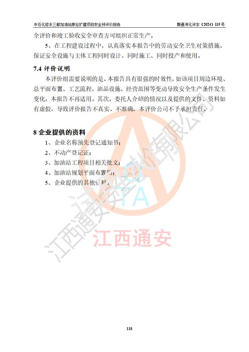 评价报告名称 | 中国石化销售股份有限公司江西九江修水石油分公司三都加油站原址扩建项目安全预评价报告 | |||