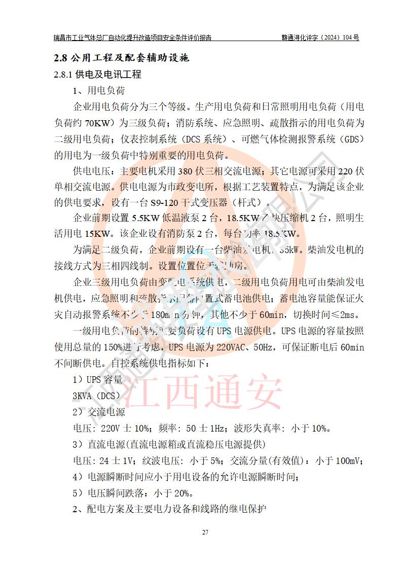 评价报告名称 | 瑞昌市工业气体总厂自动化提升改造项目安全条件评价报告 | ||||