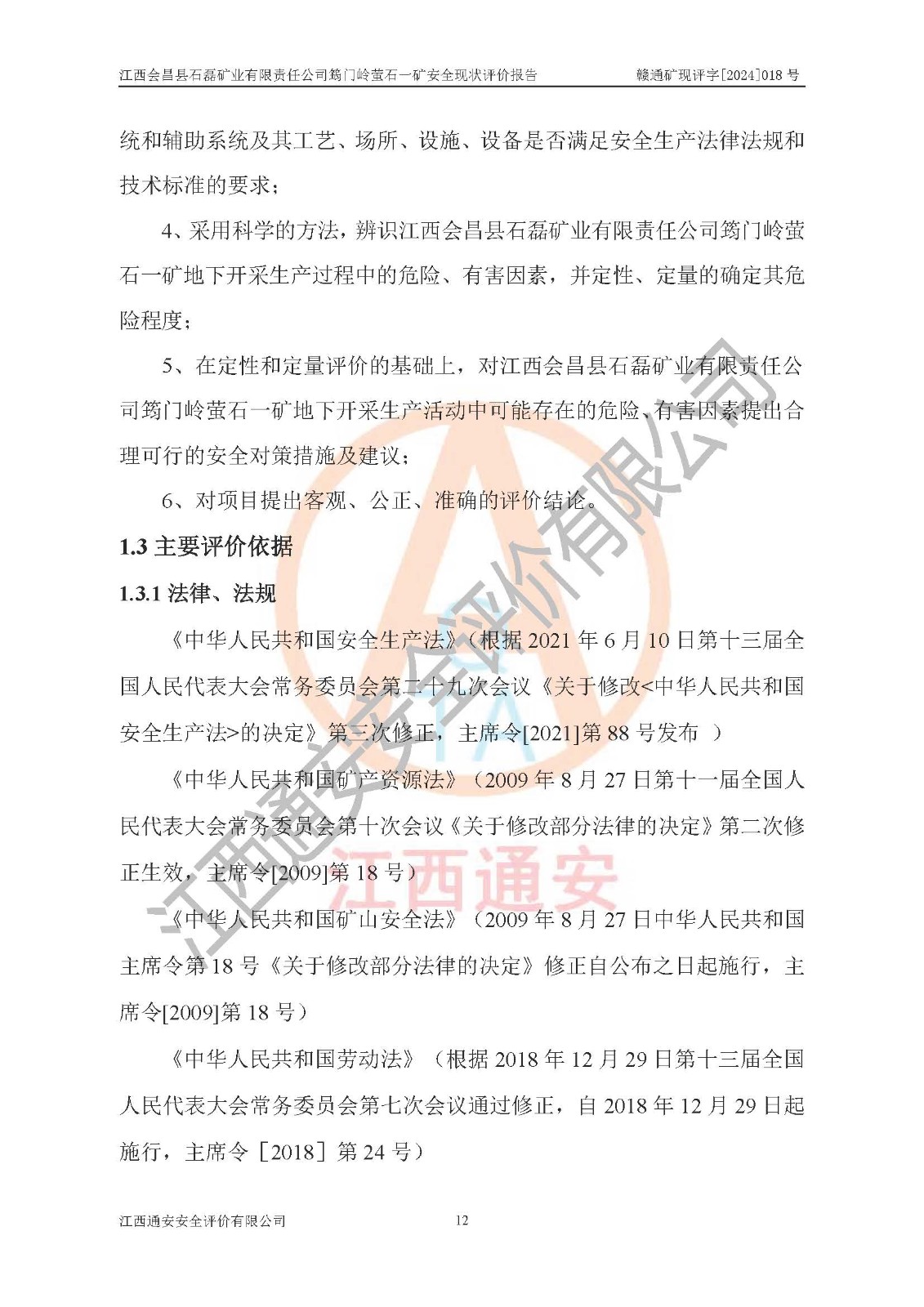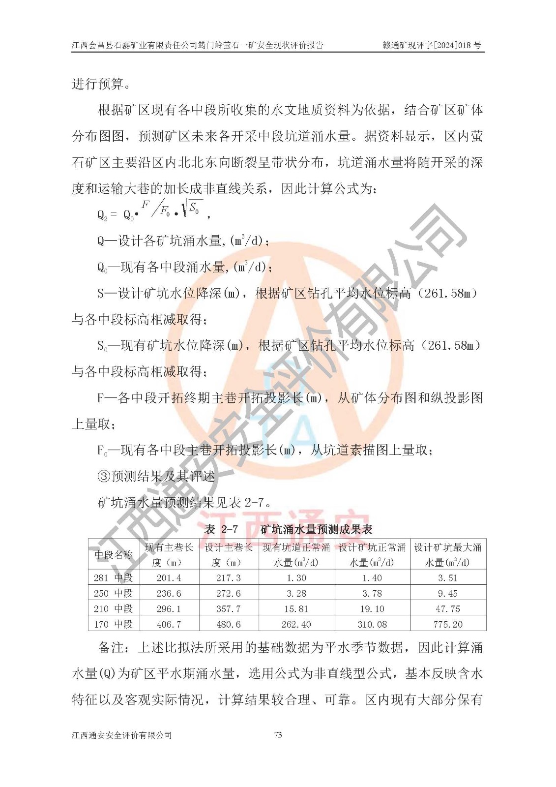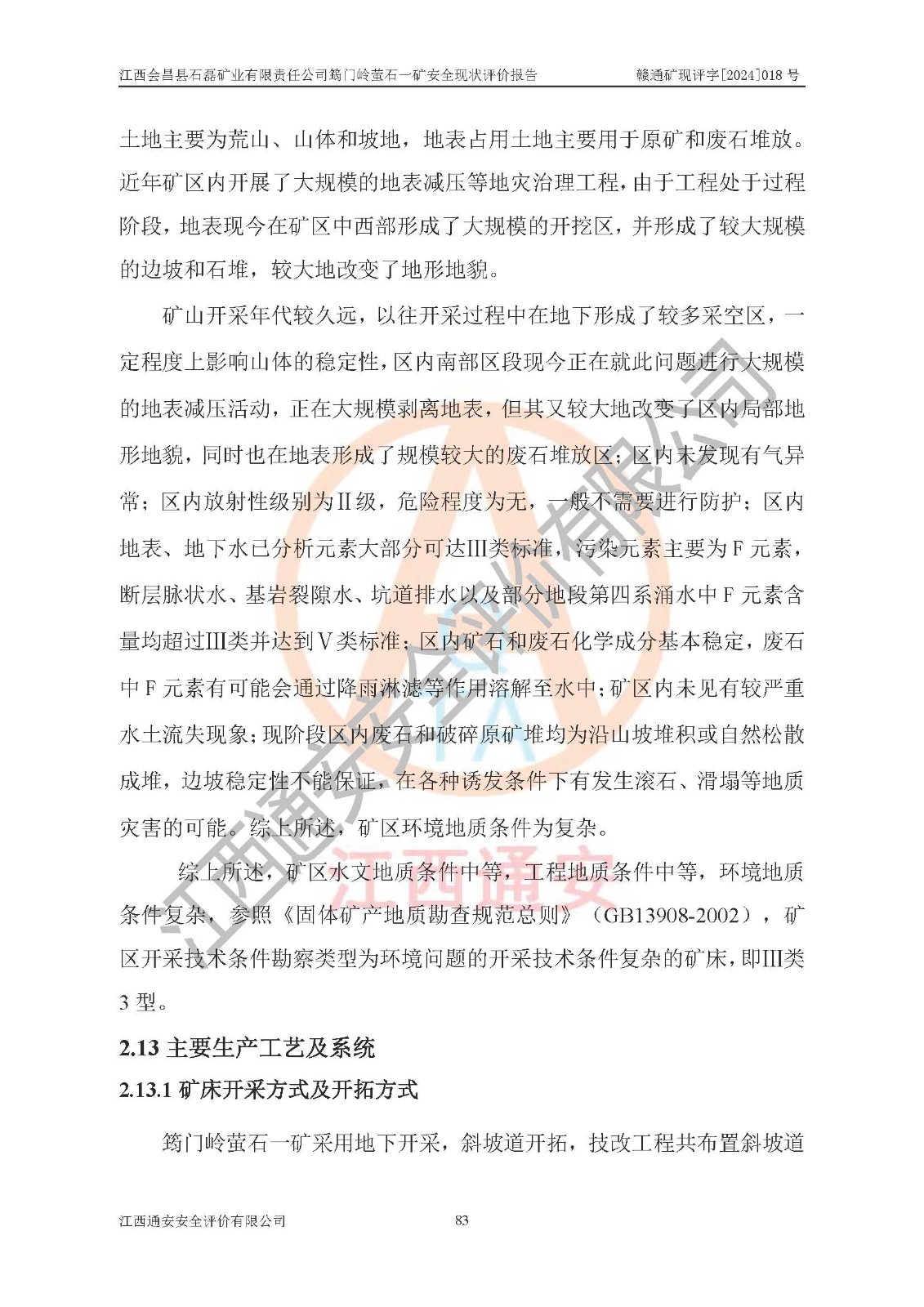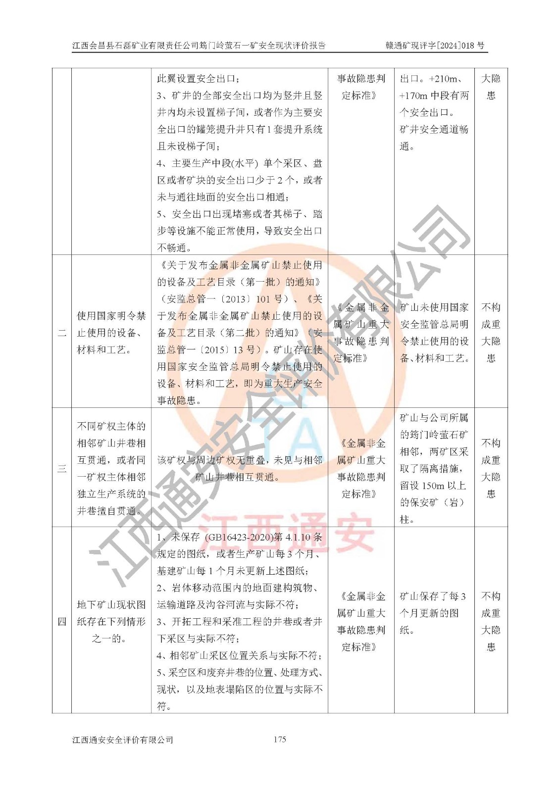项目名称 | 江西会昌县石磊矿业有限责任公司筠门岭萤石一矿安全现状评价报告 | ||||
