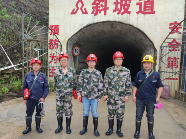 项目简介 | 江西会昌县石磊矿业有限责任公司筠门岭萤石一矿位于会昌县城南56km处,行政区域隶属会昌县筠门岭镇管辖,矿区地理位置座标:东经115°42′59″~115°43′20″,北纬25°14′16″~25°15′02″,矿区有简易公路与清筠线连接,东至筠门岭镇2.5km并与206国道相通,北东至赣龙铁路瑞金站77km,交通较为便利。 2021年12月3日矿山取得江西省应急管理厅颁发的安全生产许可证,证号(赣)FM安许证字[2005]M0091号),企业名称:江西会昌县石磊矿业有限责任公司,主要负责人:周强,单位地址:会昌县筠门岭镇,经济类型:有限责任公司,许可范围:萤石矿4万吨/年,斜坡道开拓,+210m、+170m等2个中段地下开采,**期:2021年12月03日至2024年12月02日。 江西会昌县石磊矿业有限责任公司于2022年7月20日由江西省自然资源厅延期换发了《采矿许可证》,证号为:C3607002010026120056649,采矿权人:江西会昌县石磊矿业有限责任公司,企业类型:有限责任公司;矿山名称为江西会昌县石磊矿业有限责任公司筠门岭萤石一矿;**期限为2021年12月1日至2025年8月1日,生产规模4.0万吨/年,矿区面积0.4251平方**,开采深度+440m~+100m标高,矿区范围由7个拐点圈定。 矿山设计范围与2011年编制的《会昌县筠门岭萤石一矿地下开采扩建工程初步设计和安全专篇》一致,即设计平面范围矿区范围内0线至9线,垂直范围为+281m至+170m标高间的萤石矿体。斜坡道开拓+250m、+210m、170m中段,设计矿山生产能力为: 4万t/a,采用无底柱浅孔留矿法采矿,通风方式为单翼对角抽出式机械通风,风机型号为FKZ-****1的主扇,功率45kw,建设规模1.5万吨/年,服务年限11.7年。 矿山现采用斜坡道开拓,斜坡道作为矿石、废石、人员上下的主要通道,原SJ317竖井提升绞车已拆除,竖井口周围已砌筑围墙,目前作为管缆井及进风井,不再进行矿、废石、人员提升。斜坡道共开拓了+250m、+210m、+170m等三个中段,其中+210m中段、+170m中段为主要生产中段,采用UQ-12型地下自卸车运输。目前,+210m中段3至7线之间V2-1、V2-2、V5-1、V5-2、V6-1等5个采场已回采结束,采空区已进行封闭处理,V2-3采场正在回采作业,V6-2、V6-3等2个采场正在进行采准切割作业,+170m中段3至7线之间V2矿体南翼布置穿、沿脉探矿掘进作业面2个,已掘进80m。 | ||||