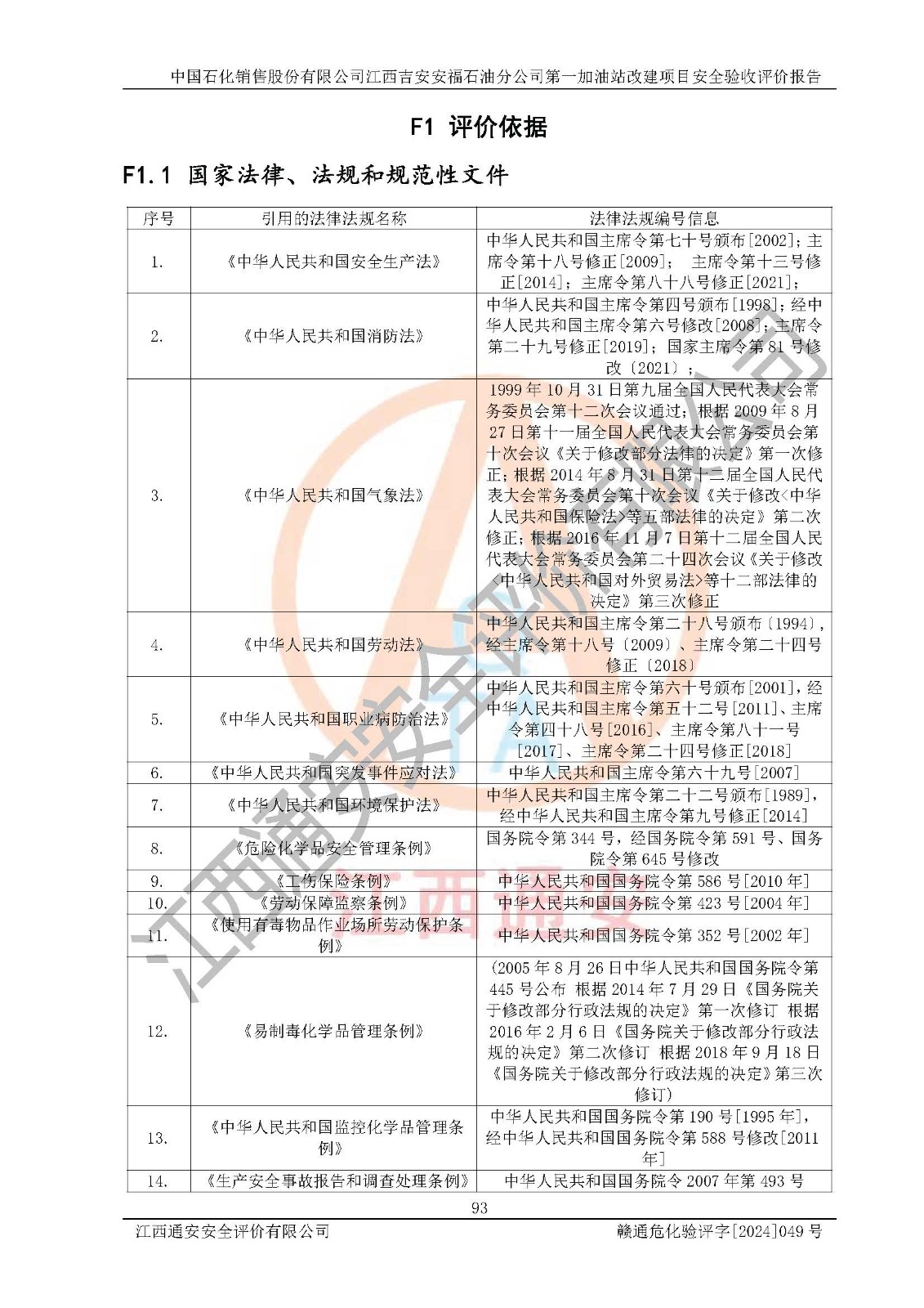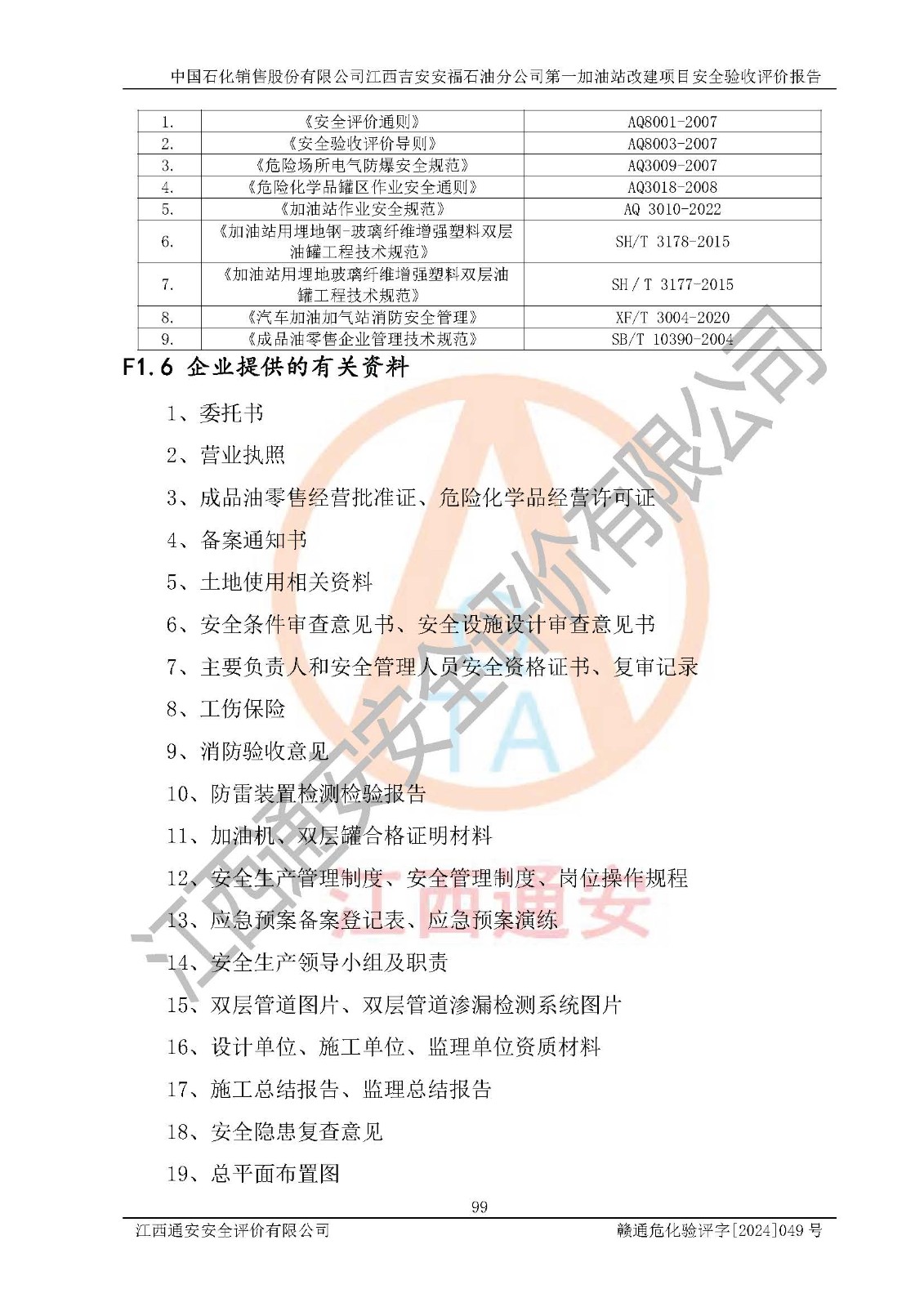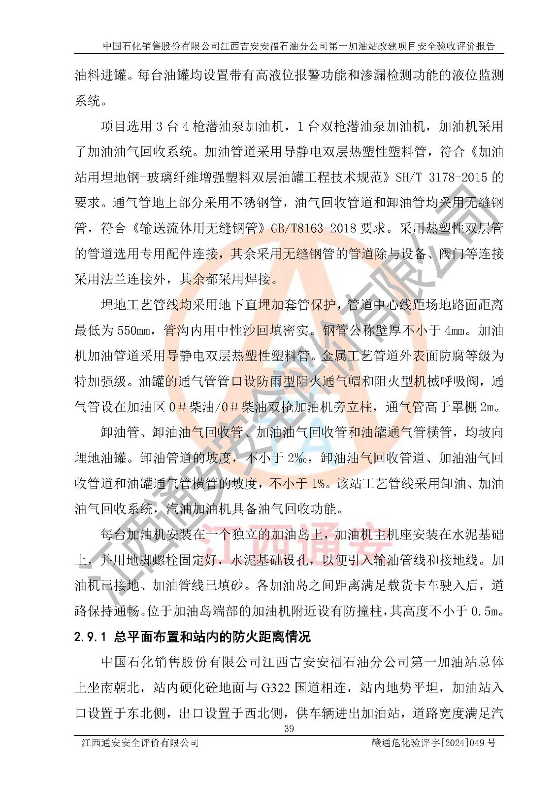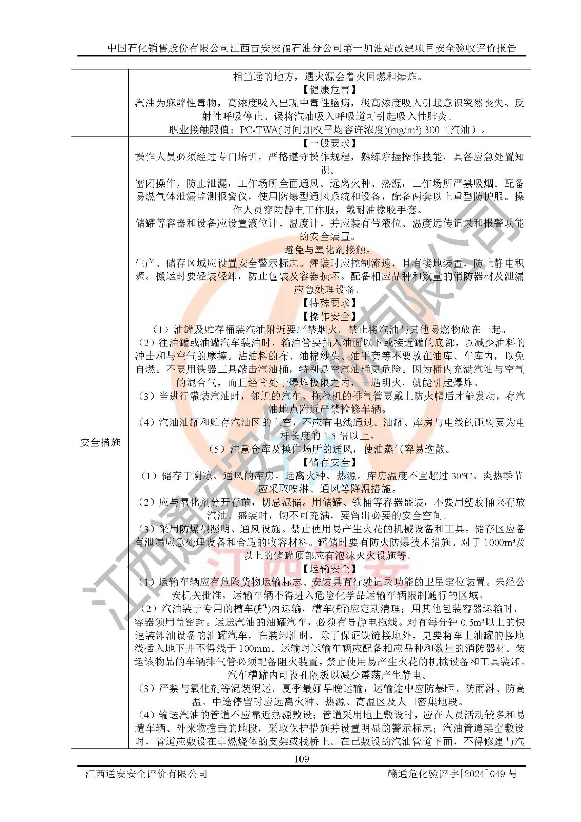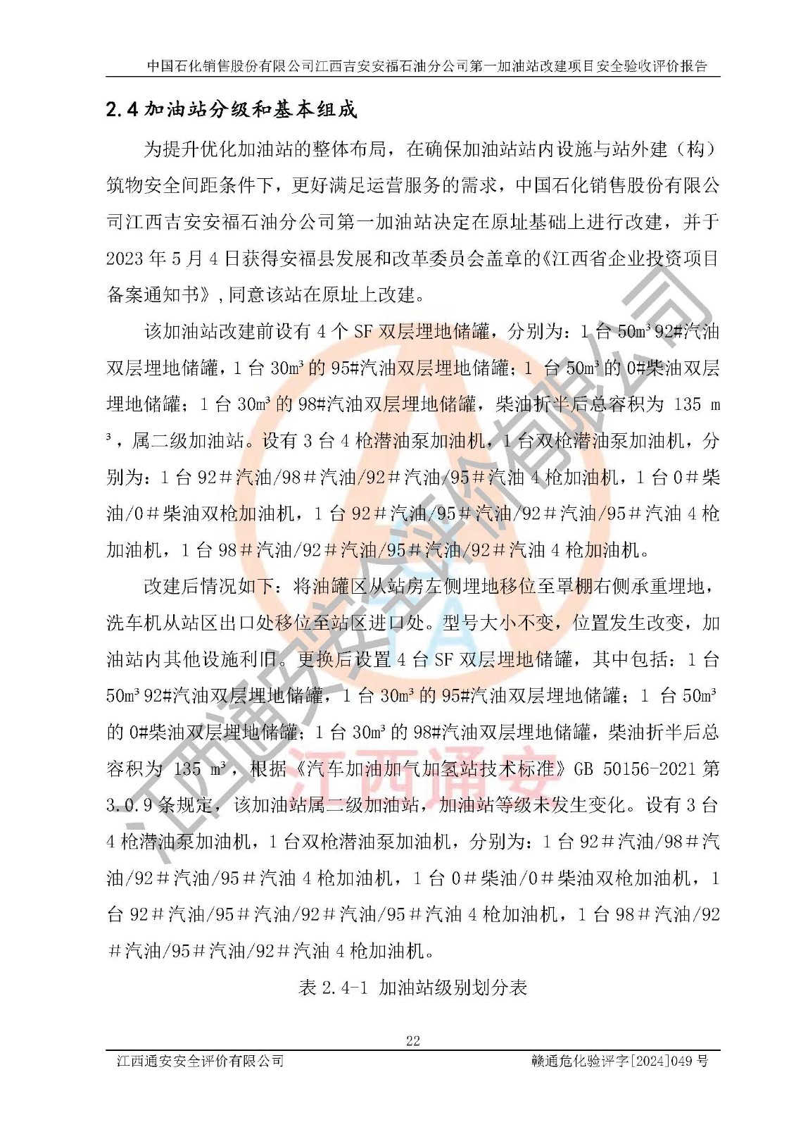 项目名称 | 中国石化销售股份有限公司江西吉安安福石油分公司 **加油站改建项目安全验收评价报告 | ||||