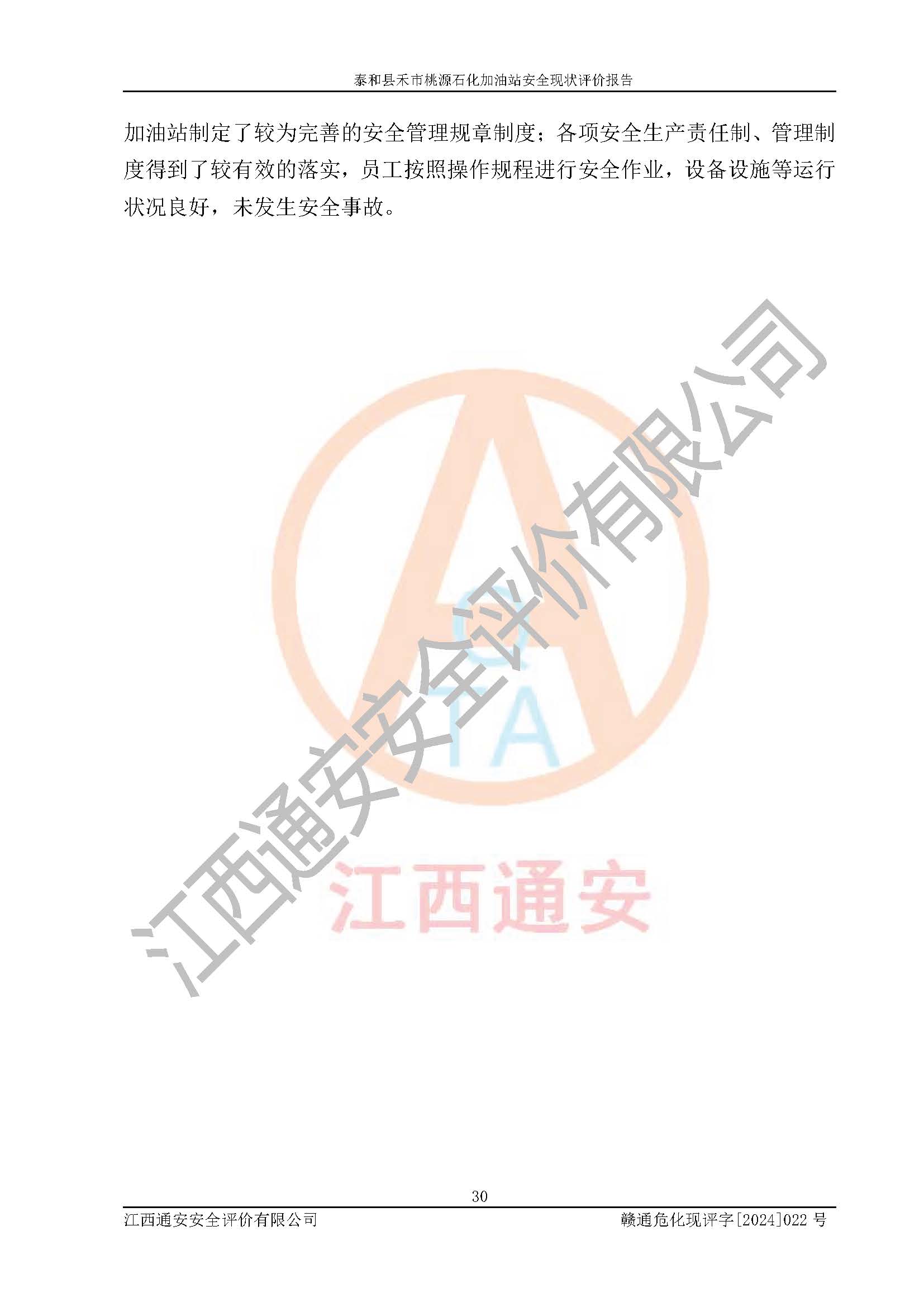 评价报告名称 | 泰和县禾市桃源石化加油站 | |||