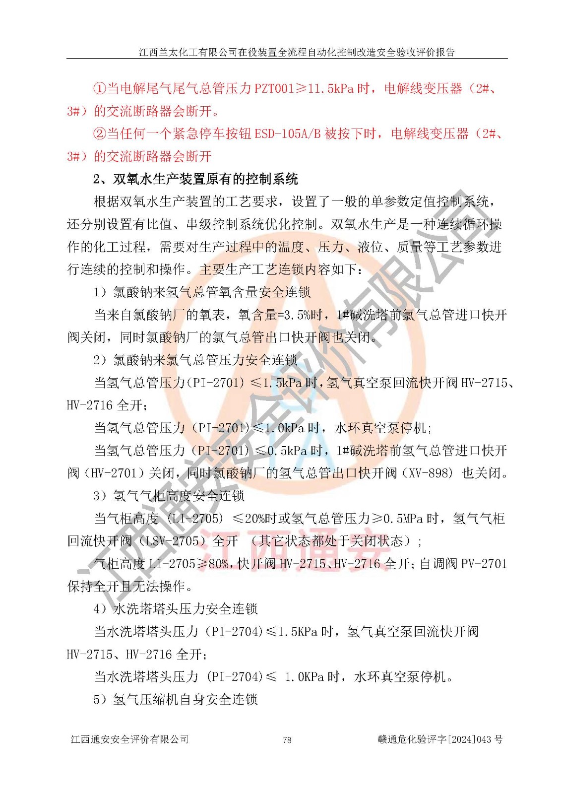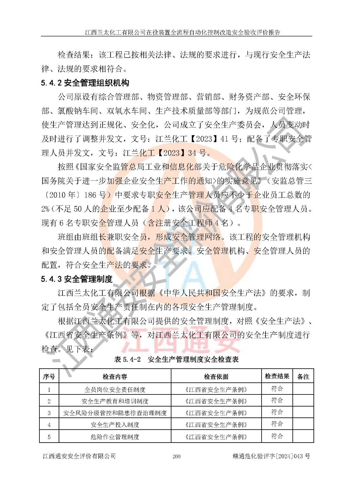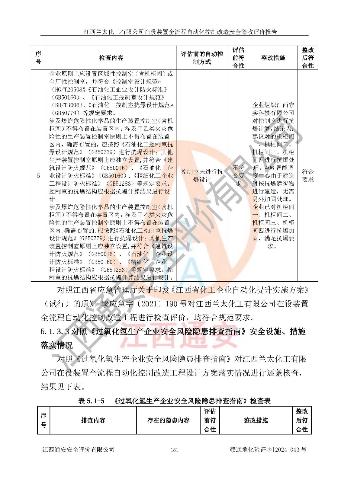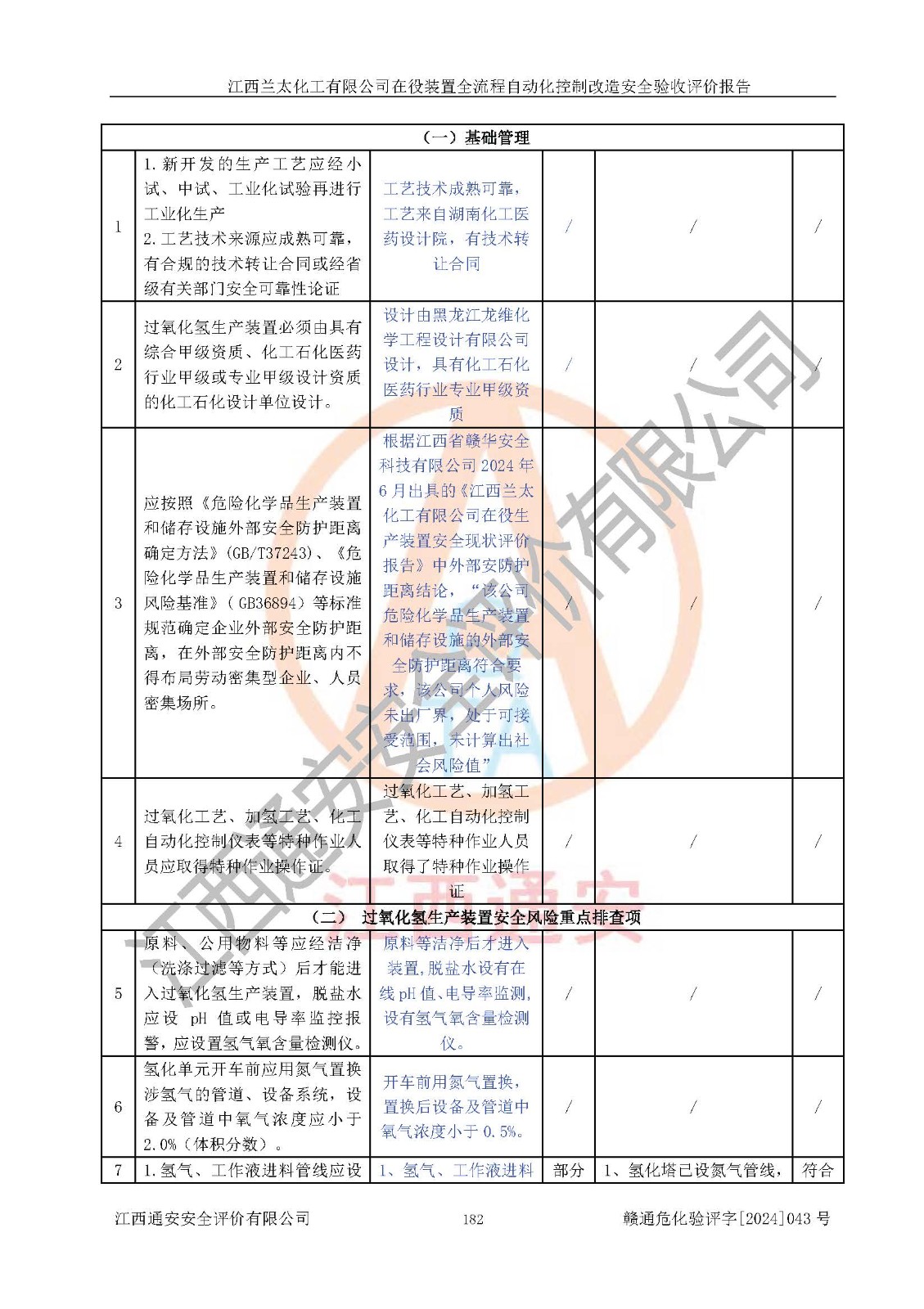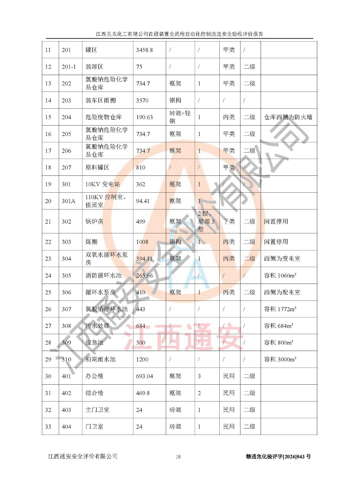 江西兰太化工有限公司于2008年5月成立,公司位于江西省吉安市新干县盐化工业城北区,公司法人**:李威。公司类型:有限责任公司(自然人投资或控股)。江西兰太化工有限公司是一家氯酸钠、双氧水产品的生产、销售(凭许可证**期限经营);化工产品(不含化学危险品及易制毒化学品)批发及零售;进出口经营权。(依法须经批准的项目经相关部门批准后方可开展经营活动)的有限责任公司。 江西兰太化工有限公司现有安全生产许可证**期至2024年8月30日,证书编号:(赣) WH 安许证字【2012】 0714 号,许可范围:氯酸钠 (50kt/a ) 、双氧水 (27.5%、 35% 、50% ,折合 27.5% 、150kt/a )。 项目生产过程中涉及的物料和成品中属于危险化学品的有:氯酸钠、双氧水、氯化氢、氢气、次氯酸钠、重铬酸钠、氯气(尾气产生微量)、氢氧化钠、盐酸、磷酸、氮气[压缩的]、芳烃(以**苯为主)、柴油(柴油发电机使用)等。项目涉及的盐酸属于第三类易制毒化学品。不涉及的重点监管的危险化学品。该工程涉及的氯气(尾气产生微量)属于剧毒化学品。该工程涉及的氯气(尾气产生微量)、重铬酸钠属于高毒物品。该工程涉及的重铬酸钠、氯酸钠、双氧水属于易制爆化学品。项目氯酸钠生产过程中的电解反应和双氧水生产过程的氢化反应、过氧化反应均为重点监管的危险化工工艺。公司201罐区构成三级危险化学品重大危险源,202氯酸钠危险化学品仓库、205氯酸钠危险化学品仓库、206氯酸钠危险化学品仓库分别构成四级危险化学品重大危险源。 |