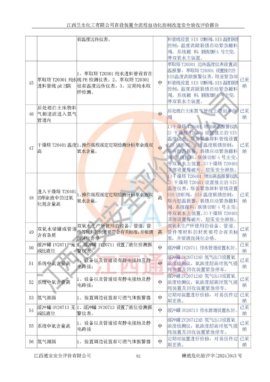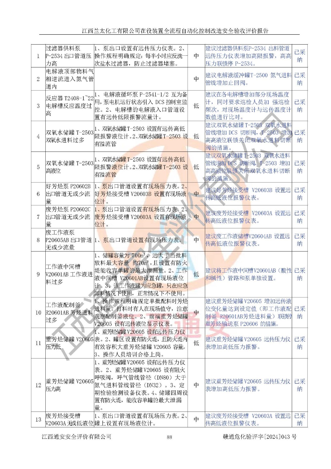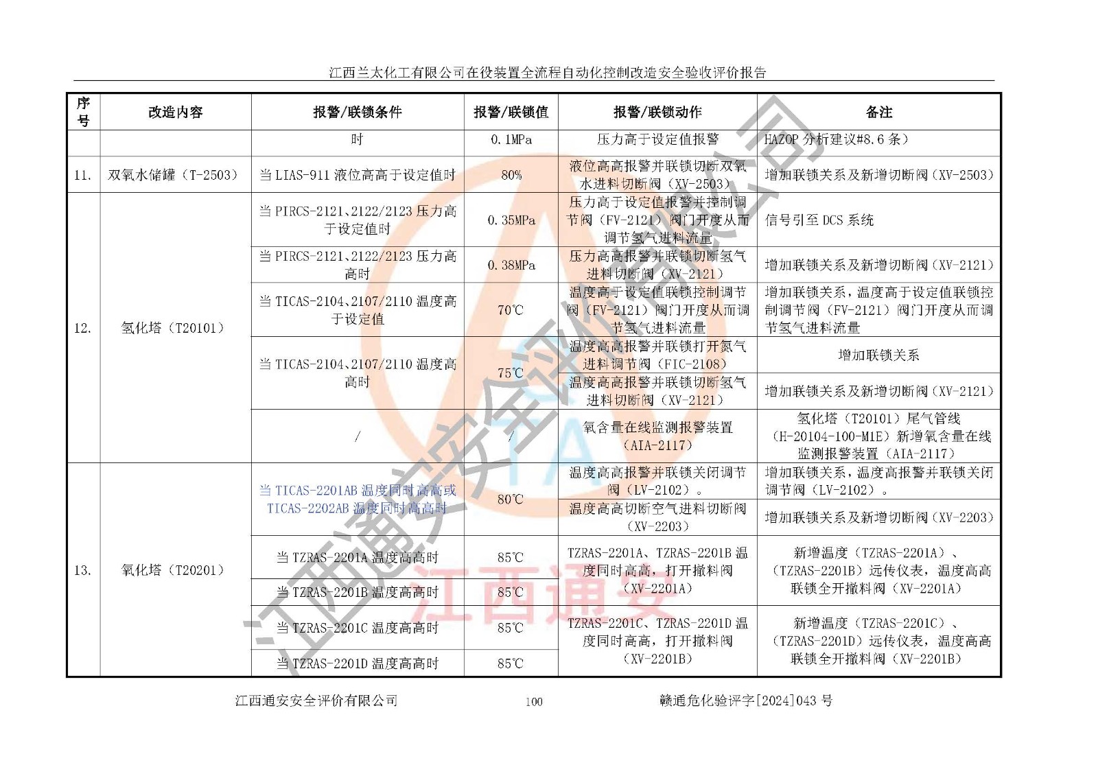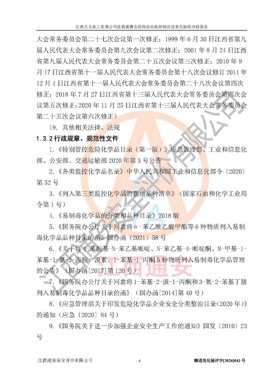 江西兰太化工有限公司于2008年5月成立,公司位于江西省吉安市新干县盐化工业城北区,公司法人**:李威。公司类型:有限责任公司(自然人投资或控股)。江西兰太化工有限公司是一家氯酸钠、双氧水产品的生产、销售(凭许可证**期限经营);化工产品(不含化学危险品及易制毒化学品)批发及零售;进出口经营权。(依法须经批准的项目经相关部门批准后方可开展经营活动)的有限责任公司。 江西兰太化工有限公司现有安全生产许可证**期至2024年8月30日,证书编号:(赣) WH 安许证字【2012】 0714 号,许可范围:氯酸钠 (50kt/a ) 、双氧水 (27.5%、 35% 、50% ,折合 27.5% 、150kt/a )。 项目生产过程中涉及的物料和成品中属于危险化学品的有:氯酸钠、双氧水、氯化氢、氢气、次氯酸钠、重铬酸钠、氯气(尾气产生微量)、氢氧化钠、盐酸、磷酸、氮气[压缩的]、芳烃(以**苯为主)、柴油(柴油发电机使用)等。项目涉及的盐酸属于第三类易制毒化学品。不涉及的重点监管的危险化学品。该工程涉及的氯气(尾气产生微量)属于剧毒化学品。该工程涉及的氯气(尾气产生微量)、重铬酸钠属于高毒物品。该工程涉及的重铬酸钠、氯酸钠、双氧水属于易制爆化学品。项目氯酸钠生产过程中的电解反应和双氧水生产过程的氢化反应、过氧化反应均为重点监管的危险化工工艺。公司201罐区构成三级危险化学品重大危险源,202氯酸钠危险化学品仓库、205氯酸钠危险化学品仓库、206氯酸钠危险化学品仓库分别构成四级危险化学品重大危险源。 |