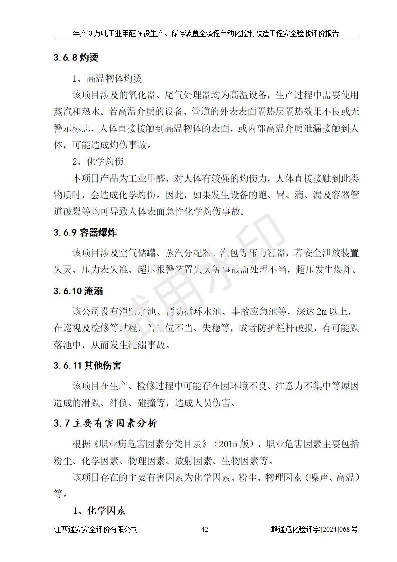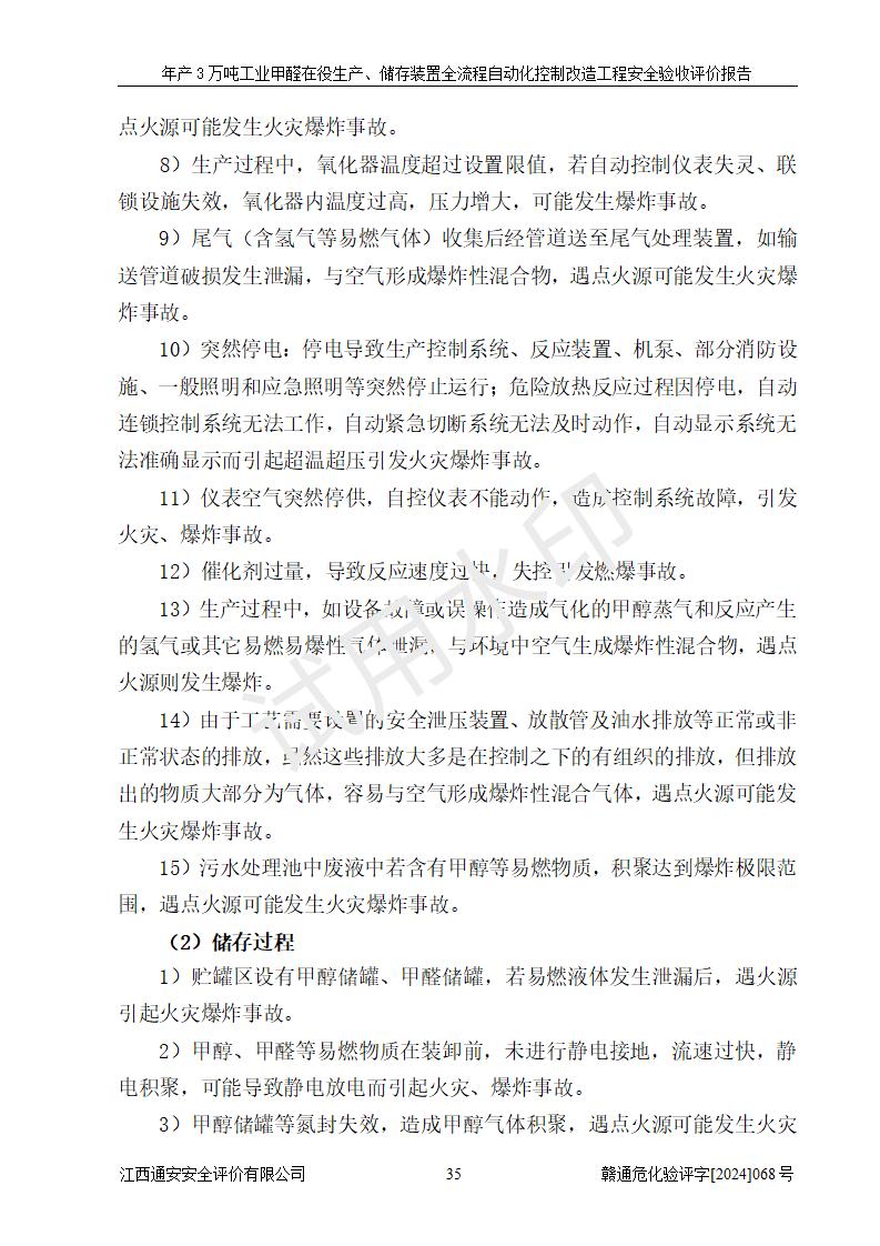 评价报告名称 | 信丰县东新合成材料有限公司年产3万吨工业甲醛在役生产、储存装置全流程自动化控制改造工程安全验收评价报告 | ||||||