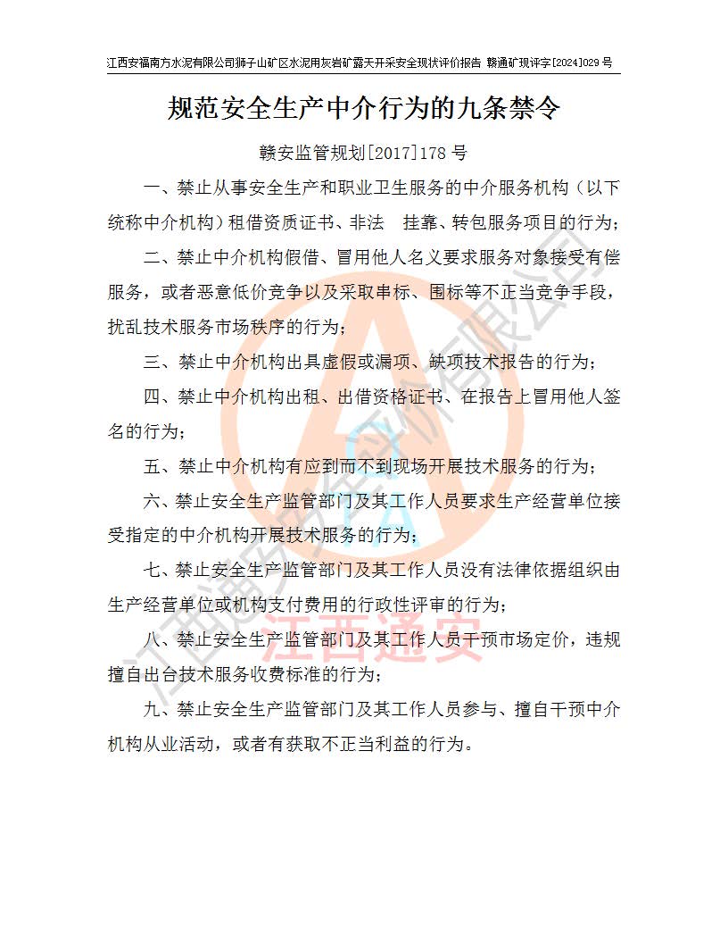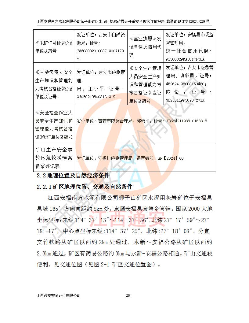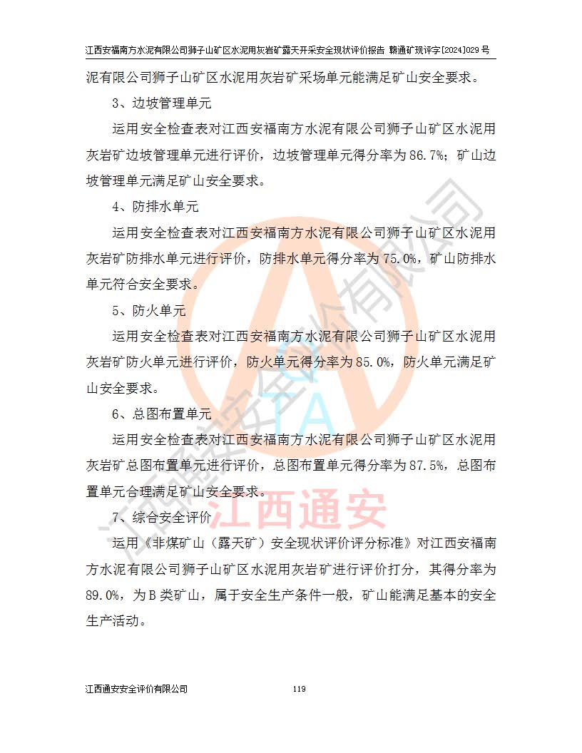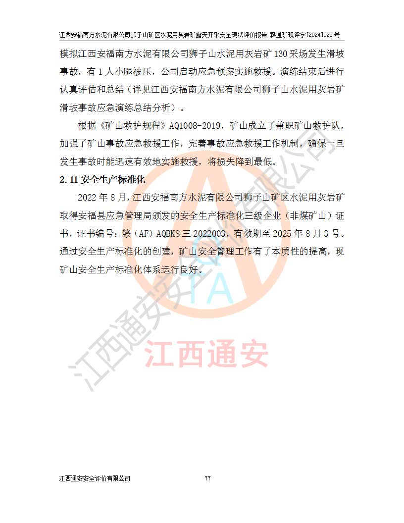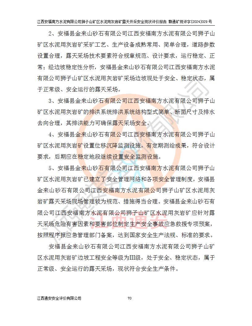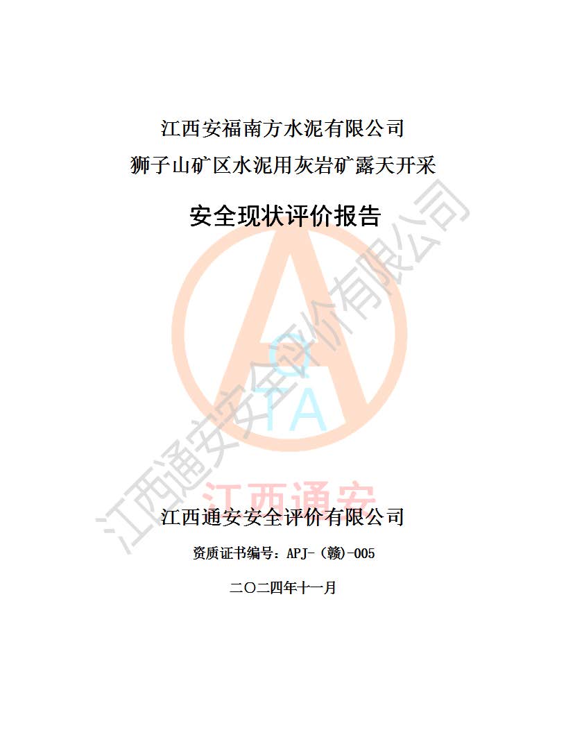 评价报告名称 | 江西安福南方水泥有限公司狮子山矿区水泥用灰岩矿露天开采安全现状评价报告 | |||