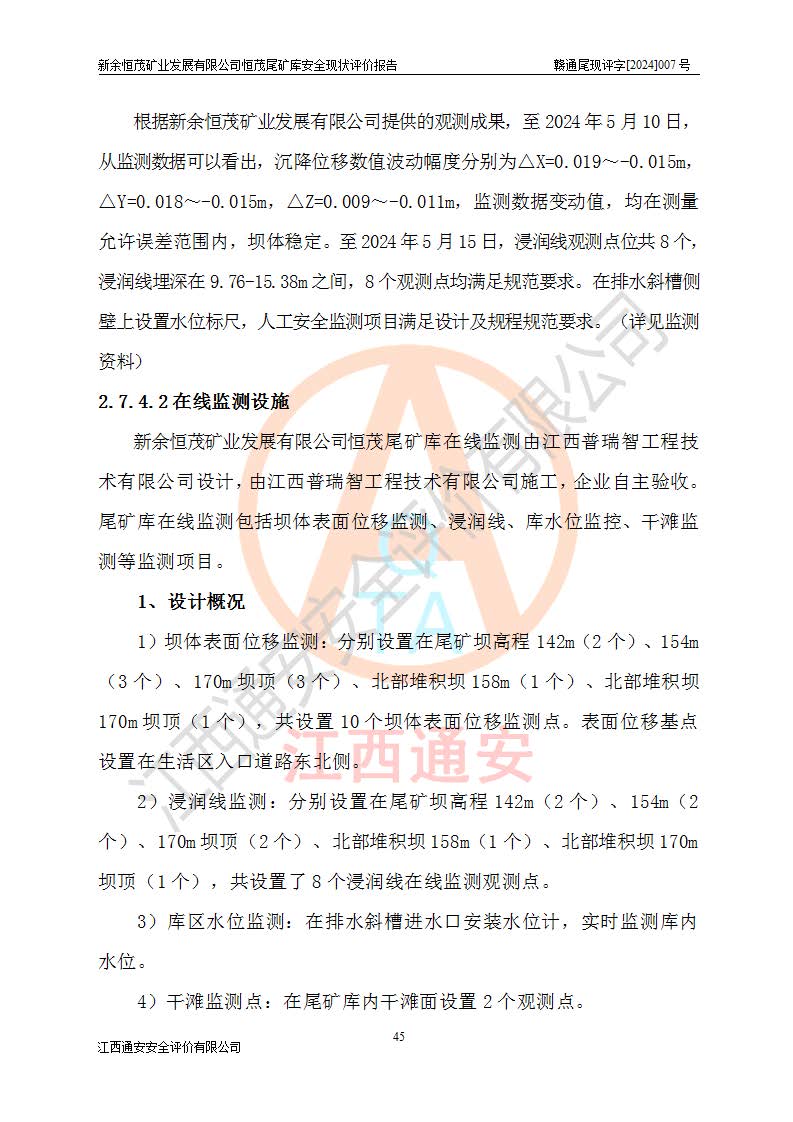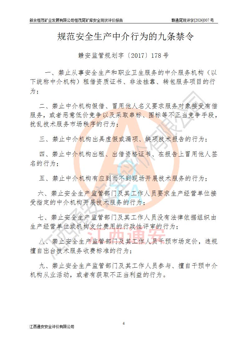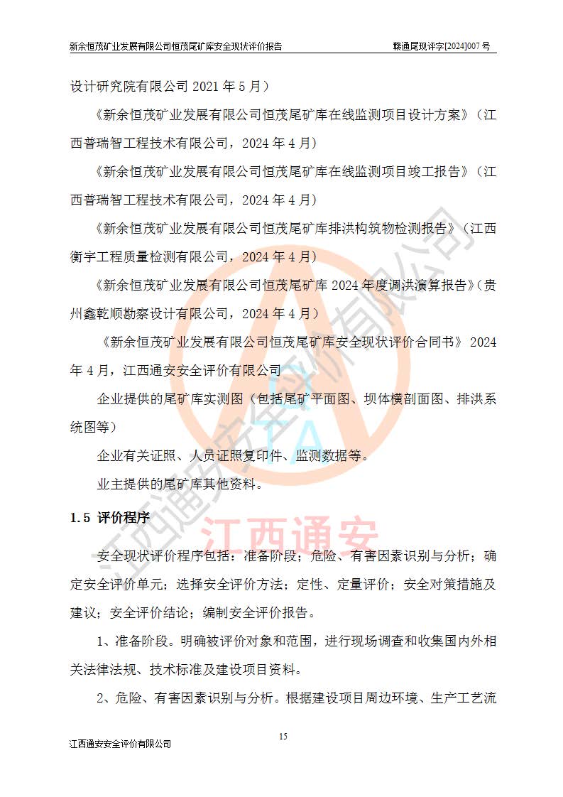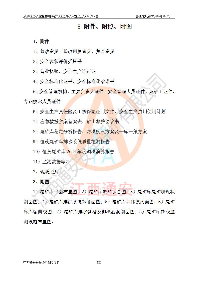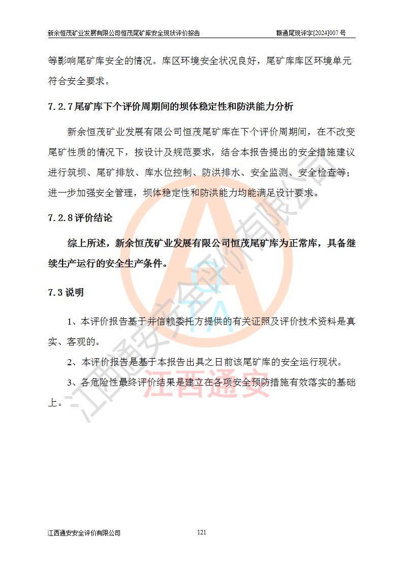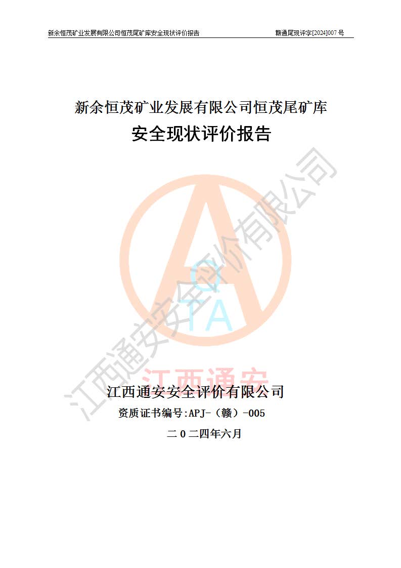 评价结论 | 新余恒茂矿业发展有限公司恒茂尾矿库为正常库,具备继续生产运行的安全生产条件。 | |||