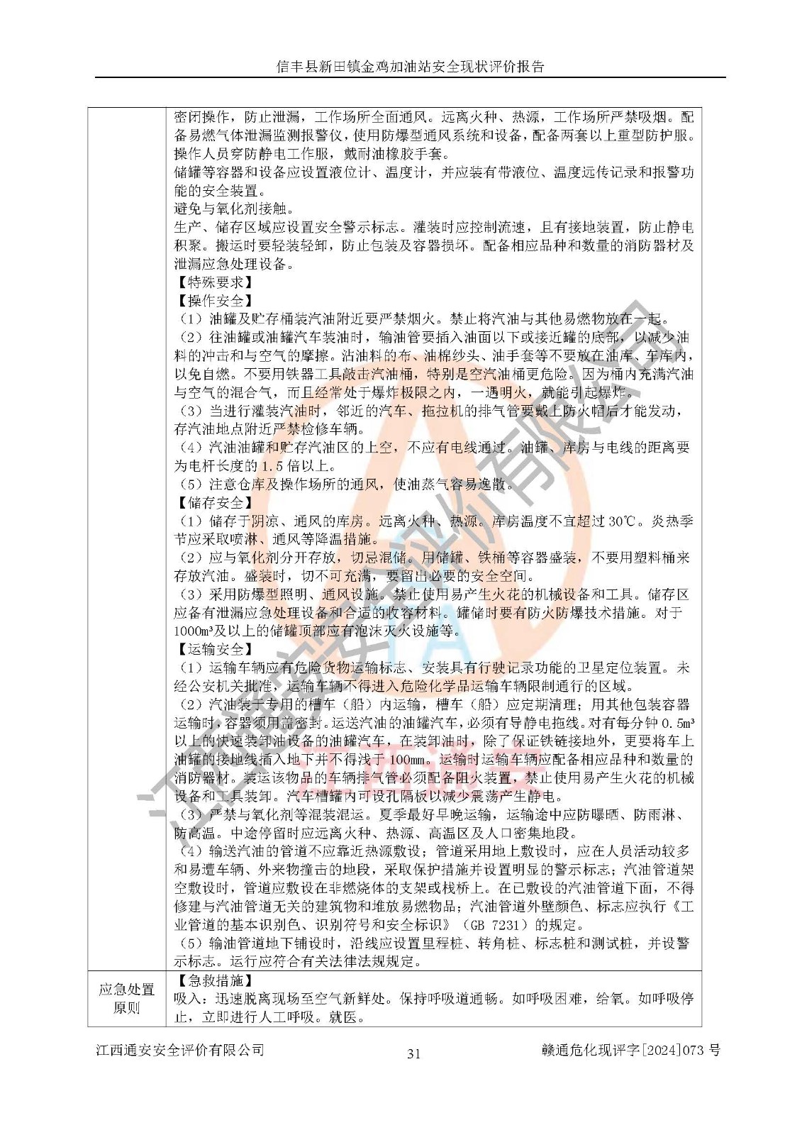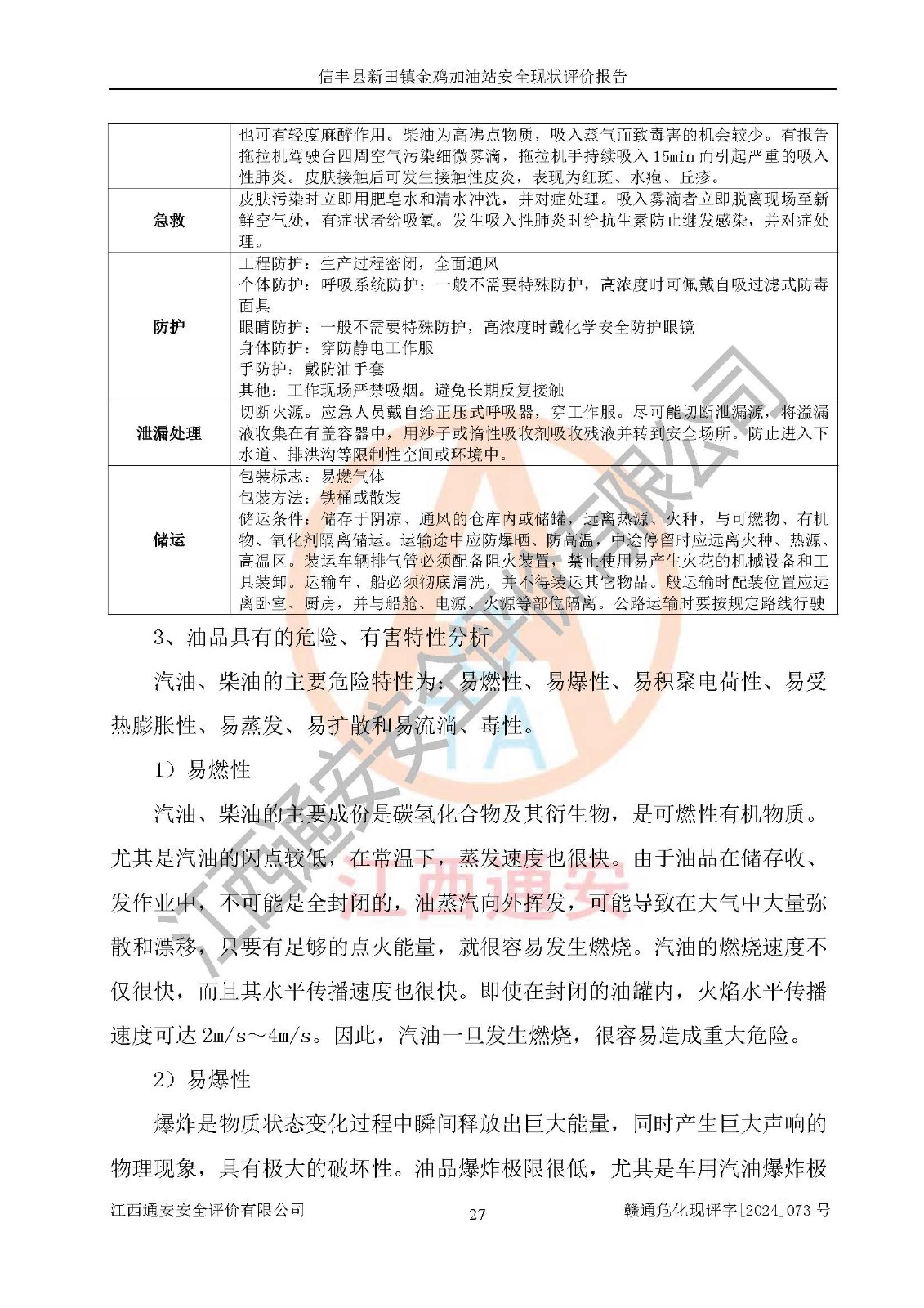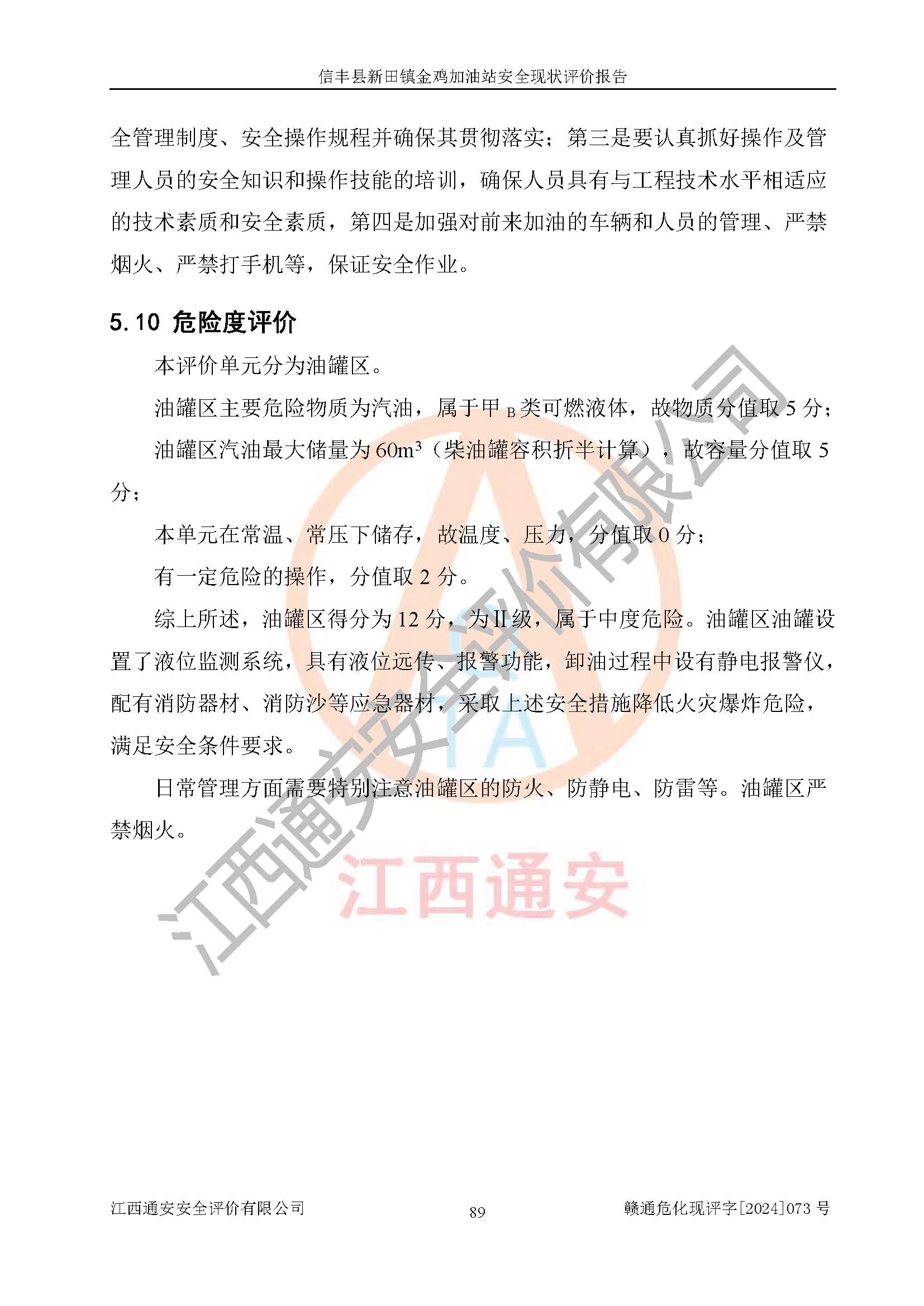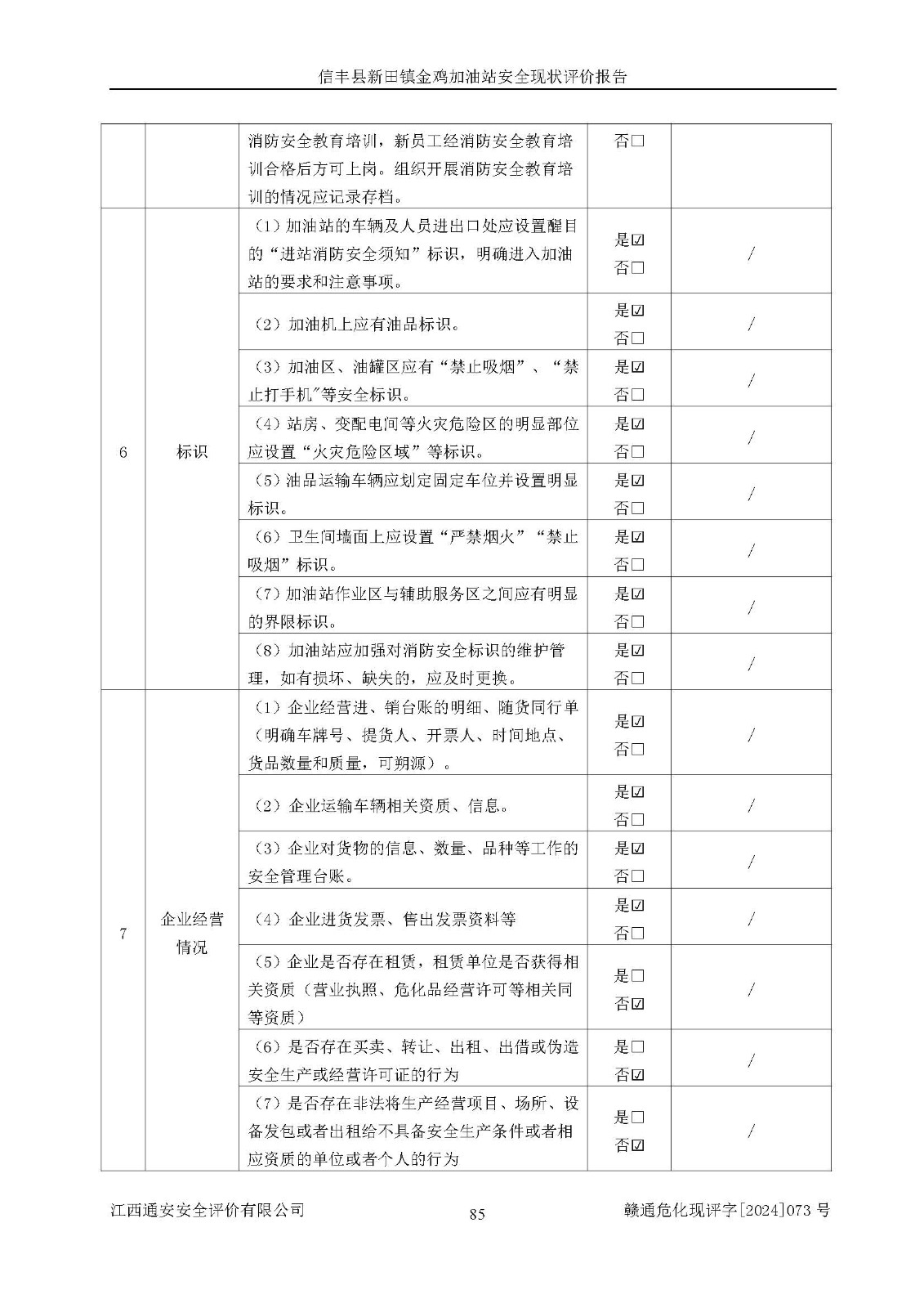 评价结论 | 信丰县新田镇金鸡加油站安全现状符合危险化学品经营安全条件。 | |||