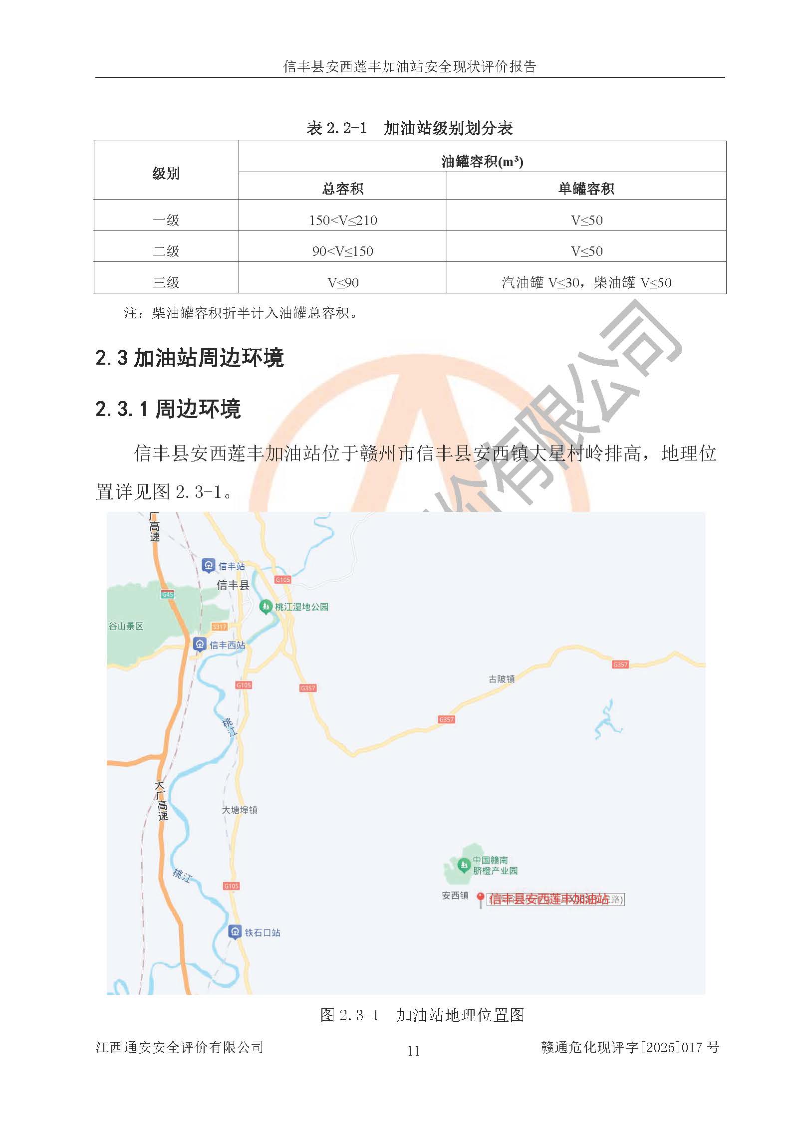 评价报告名称 | 信丰县安西莲丰加油站安全现状评价报告 | |||
