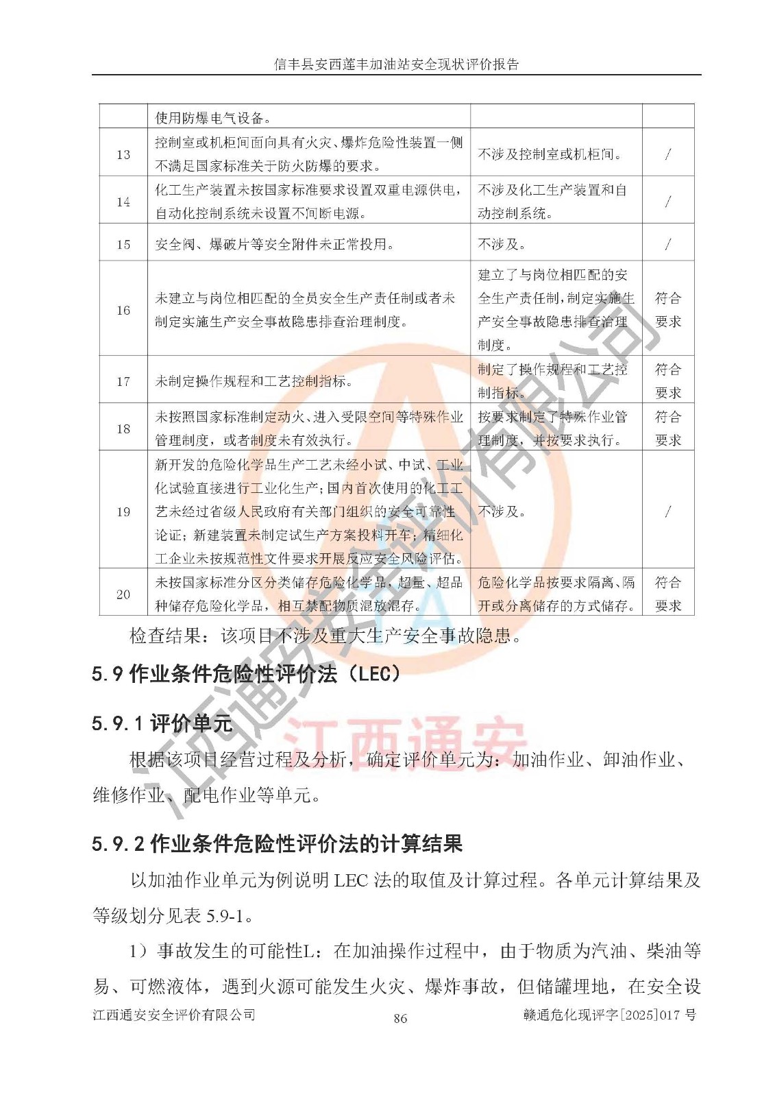 评价结论 | 信丰县安西莲丰加油站安全现状符合危险化学品经营安全条件。 | |||