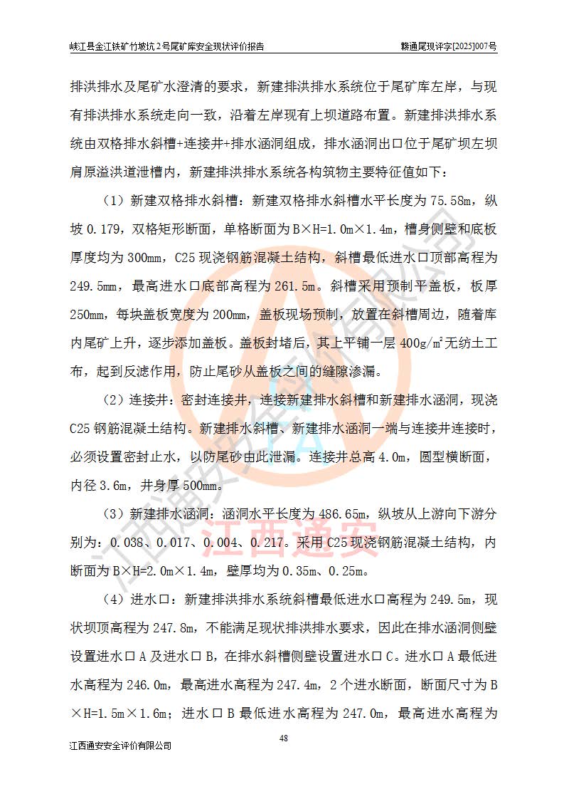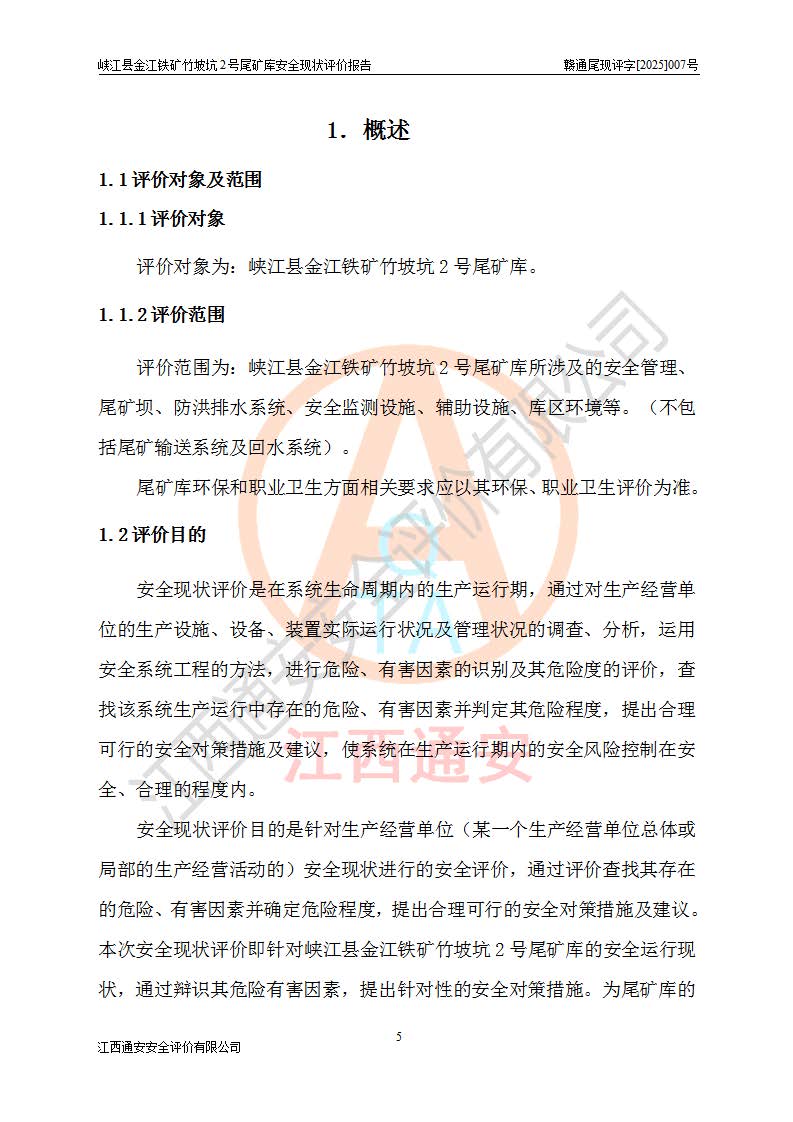 评价报告名称 | 峡江县金江铁矿竹坡坑2号尾矿库安全现状评价报告 | |||