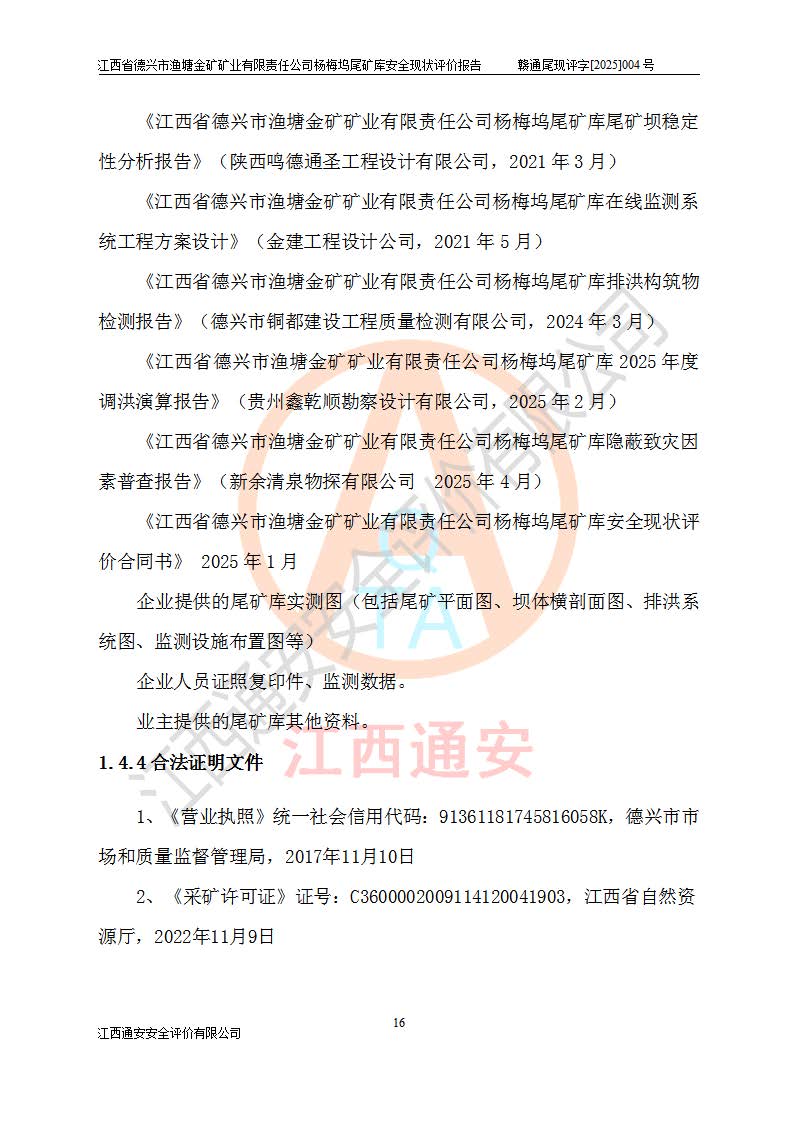 评价报告名称 | 江西省德兴市渔塘金矿矿业有限责任公司杨梅坞尾矿库安全现状评价报告 | |||