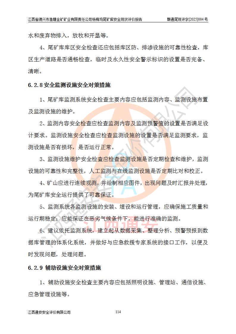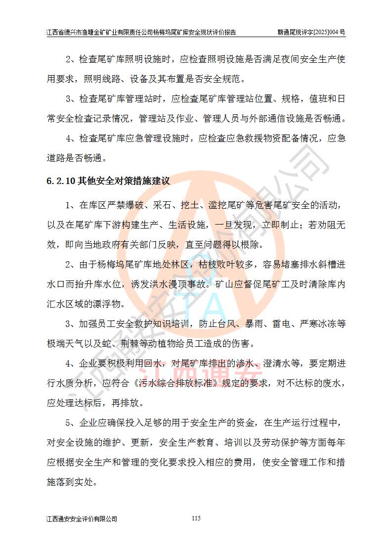 评价结论 | 江西省德兴市渔塘金矿矿业有限责任公司杨梅坞尾矿库安全设施符合设计要求,为正常库,具备《非煤矿山企业安全生产许可证实施办法》要求的安全生产条件。 | |||