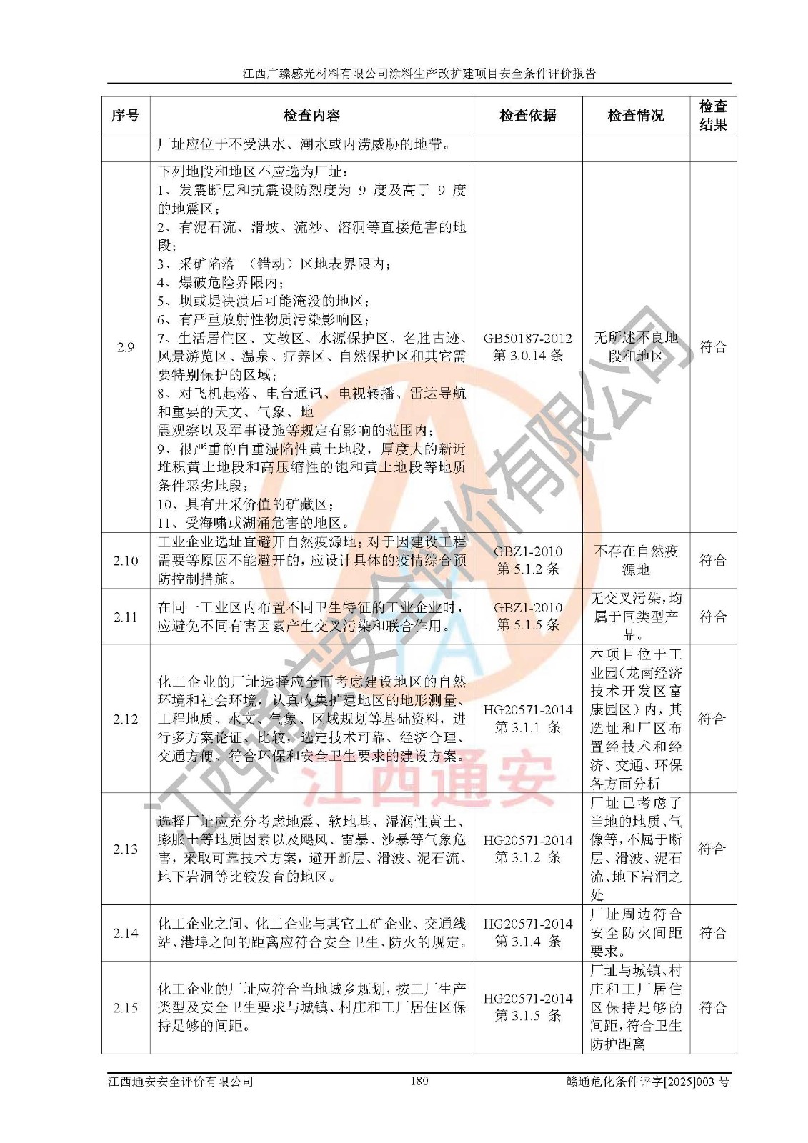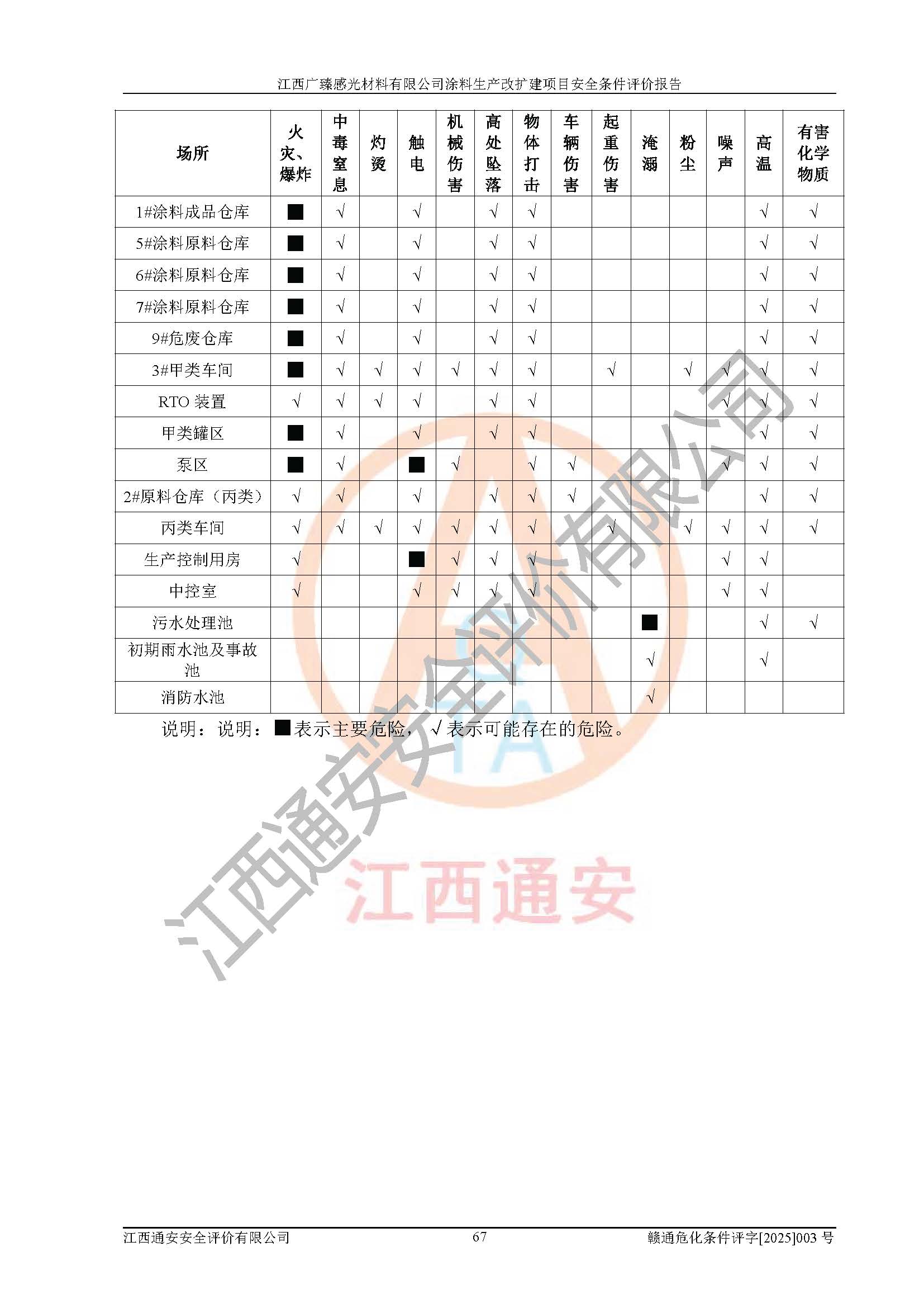 1)本项目取得了龙南市行政审批局下发的《江西省工业企业技术改造项目备案通知书》(项目统一代码为:2408-360727-07-02-3253323)、《建设用地规划许可证》、龙南市自然资源局出具对《关于为江西广臻年产2万吨涂料技改项目出具用地证明的函》的复函,符合地方产业发展规划的要求。 2)根据《危险化学品目录》(2015年版,十部委公告2022年第8号修订),本项目原辅料蜡浆、色浆、助剂、二甲苯、正丁醇、乙二醇丁醚、乙二醇乙醚醋酸酯、S100溶剂油、氮气[压缩的]及产品溶剂型涂料(色漆)属于危险化学品。本项目不涉及监控化学品、剧毒化学品、易制爆化学品、易制毒化学品、重点监管的危险化学品、特别管控危险化学品、高毒物品。本项目不涉及重点监管的危险化工工艺。 3)根据《危险化学品重大危险源辨识》(GB18218-2018),该项目未构成危险化学品重大危险源。 4)项目存在的主要危险因素有:火灾爆炸、容器爆炸、中毒窒息、灼烫、触电、**伤害、机械伤害、高处坠落、物体打击、淹溺等,存在的主要危害因素有:噪声与振动、高温、有害化学物质等;引起事故的原因有人的不安全行为、物的不安全状态、管理缺陷和环境不良。其中*主要的危险有害因素是火灾爆炸。 5)采用预先危险性分析法评价,结果为: (1)通过预先危险(PHA)分析可知,项目厂址及总体布局单元存在周边环境相互影响,发生异常情况,可对周边企业生产经营活动、人员活动产生影响;存在自然条件影响,可因雷击、暴雨等引起事故;存在**伤害、建筑物危害,其固有的危险性等级为Ⅱ级,属于“临界的”,应予以排除、采取控制措施因素。 (2)生产作业存在的危险因素包括火灾爆炸、触电、灼烫、中毒窒息固有的危险等级为Ⅲ级,属于“危险的”,可能导致人员伤亡和系统损坏的因素,需要采取防范和对策措施的因素;其它危险因素固有的危险等级为Ⅱ级,属于“临界的”,应予以排除、采取控制措施因素。 (3)生产作业存在的噪声、粉尘、高温、有害化学物质的危险有害因素等级为Ⅱ级,属于“临界的”,应予以排除、采取控制措施因素。 6)危险度评价分析,结果为: 生产装置危险度评价分析:3#甲类车间为中度危险(Ⅱ级)。 储存单元危险度评价分析:1#涂料成品仓库为**危险(Ⅰ级)、5#涂料原料仓库为**危险(Ⅰ级)、6#涂料原料仓库为中度危险(Ⅱ级)、7#涂料原料仓库为中度危险(Ⅱ级)、9#危废仓库为中度危险(Ⅱ级)、2#丙类原料仓库为中度危险(Ⅱ级)、甲类罐区为**危险(Ⅰ级)。 7)作业条件危险性评价结果:在选定的评价单元中,其危险分值均在70以下,危险程度基本属于“可能危险”、“稍有危险”范围,作业条件相对安全。企业经营过程中首先应重点加强对甲类生产车间、甲类仓库、储罐区的危险因素的严格控制,注重日常安全管理;其次要建立健全完善的安全生产责任制、安全管理制度、安全技术操作规程并**其贯彻落实;第三要认真抓好操作人员、管理人员的安全知识和操作技能的培训,**人员具有与工程技术水平相适应的技术素质和安全素质,**安全作业。 8)项目建设场地符合当地规划要求,建设场地通过合理规划,其选址、周边环境、总平面布置、交通运输等能符合《中华人民共和国安全生产法》《危险化学品安全管理条例》《建筑设计防火规范》《精细化工企业工程设计防火标准》等法规、标准、规范要求。 厂址地区地震活动相对较弱,灾害性天气出现频率稍高,自然灾害对项目建设具有**影响,通过采取相应的防护措施,自然条件适宜建设。 9)建设项目符合**产业政策的要求;选择工艺为现行成熟工艺,其安全可靠性可得到**。 10)本报告已根据有关安全生产法律、法规、规章和**标准、行业标准,并严格执行省委办公厅省**办公厅《关于全面加强危险化学品安全生产工作的实施意见》(赣办发[2020]32号)及鄱阳湖生态经济区、长江经济带、“五河一湖”相关政策规定,客观、公正、科学地进行安全评价,项目符合《江西省应急管理厅关于印发《江西省危险化学品建设项目安全监督管理实施细则》(试行)的通知》(赣应急字[2021]100号)的要求。 11)本报告结合工艺特征,提出应采取的对应的自动化控制系统及自动化实施方案,满足《江西省应急管理厅关于印发《江西省化工企业自动化提升实施方案》(试行)的通知》(赣应急字[2021]190号)的要求。 综上所述:江西广臻感光材料有限公司涂料生产改扩建项目的产业政策、安全条件、厂址、总体布局、主要技术和工艺、装置、设施、配套和辅助工程、安全管理等均满足安全生产相关法律法规、标准规范的要求,该建设项目的危险、有害因素可得到**控制,风险在可接受范围内,具有**的本质安全水平。企业应认真落实本报告提出的安全对策与建议,在下一步设计、建设施工过程中严把质量关、严格施工安全管理和检查,使各项安全措施落实到实处,且严格执行建设项目安全设施“三同时”的规定,建立**的事故应急体系和措施。 |