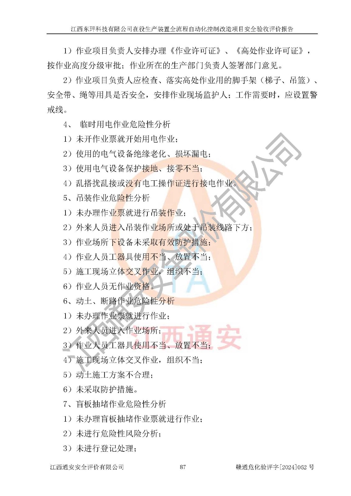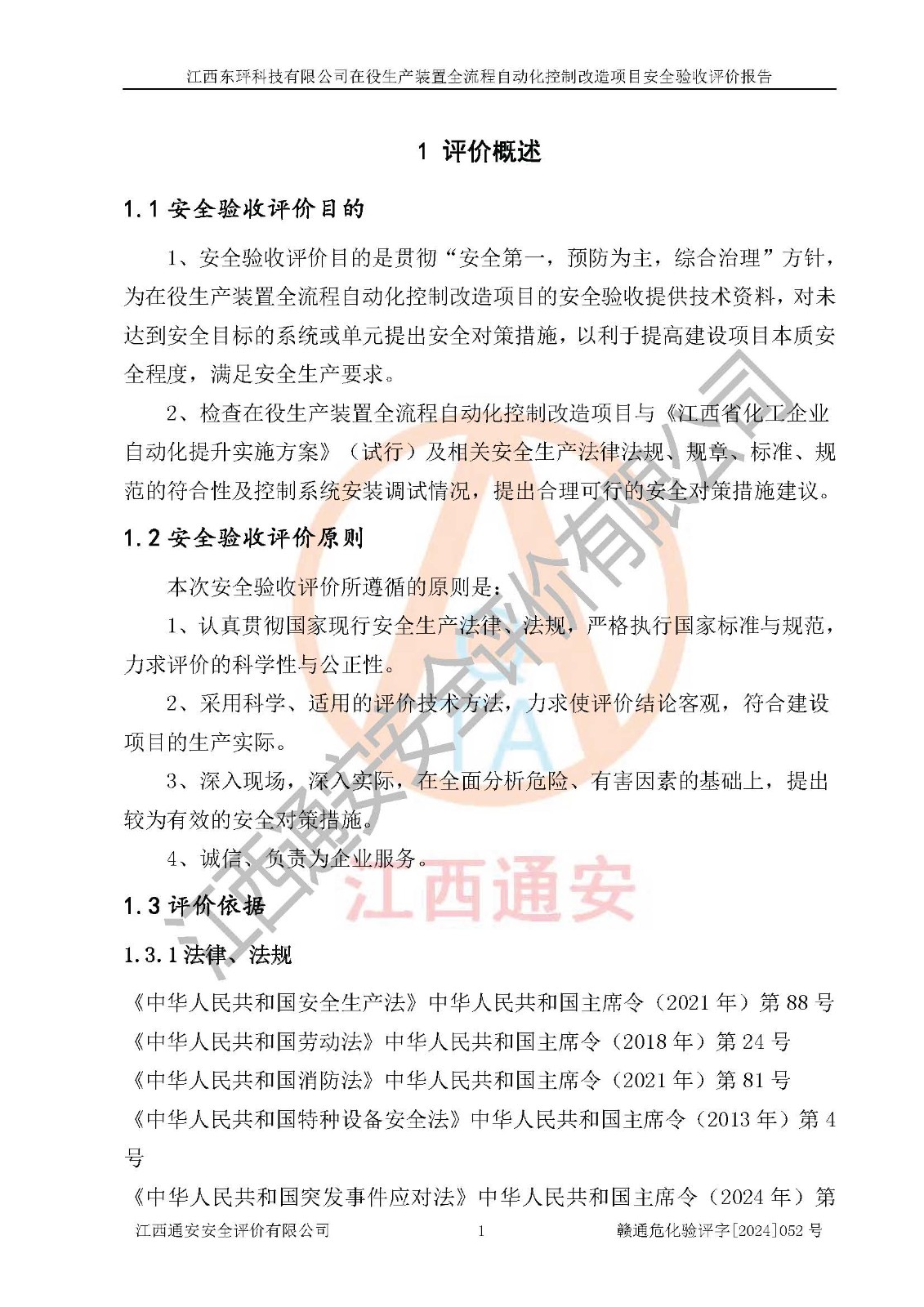 评价报告名称 | 江西东玶科技有限公司在役生产装置全流程自动化控制改造项目安全验收评价报告 | ||||||